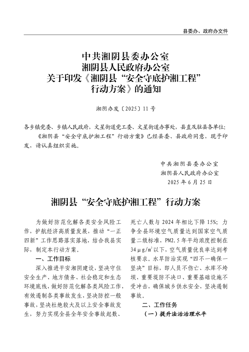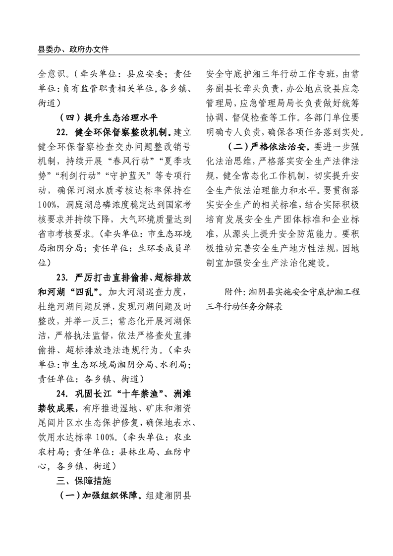 关于印发《湘阴县“安全守底护湘工程”行动方案》的通知