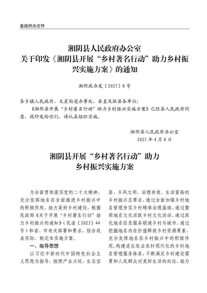 关于印发《湘阴县开展“乡村著名行动”助力乡村振兴实施方案》的通知