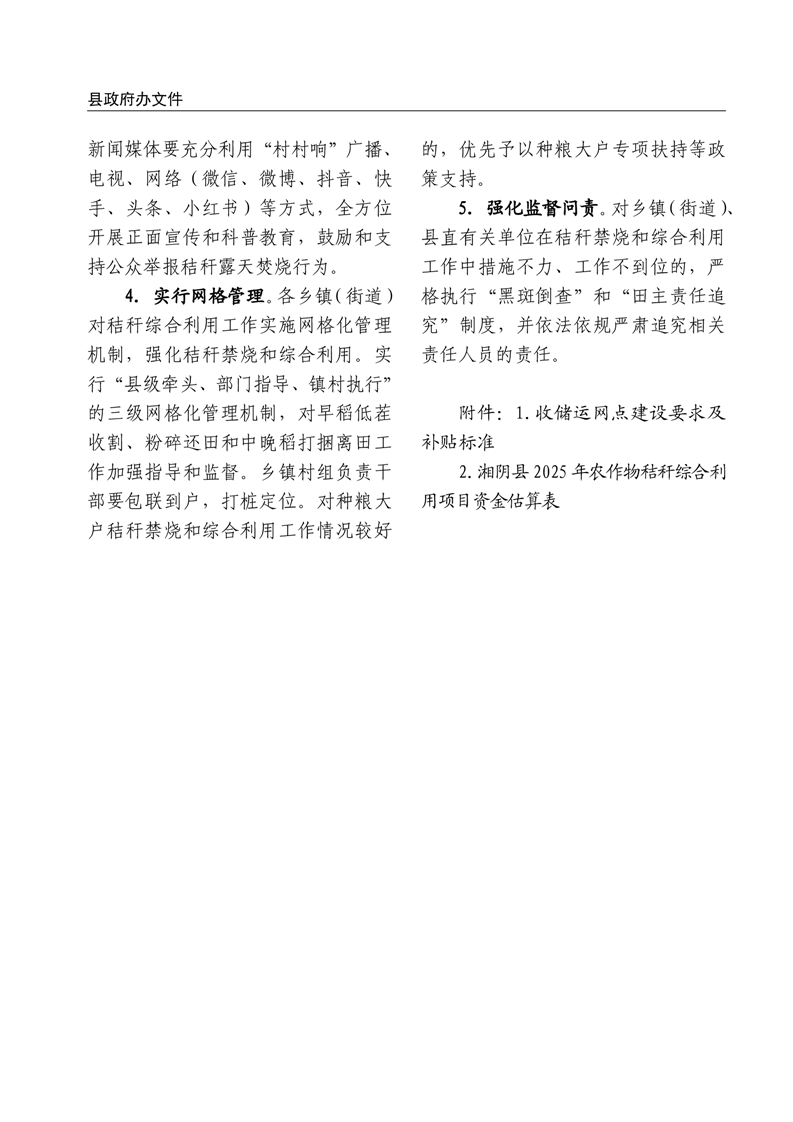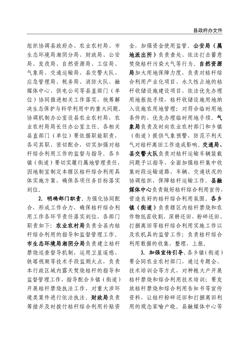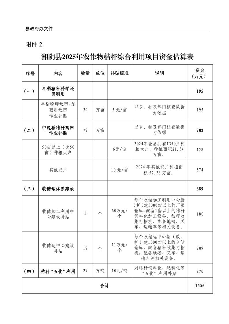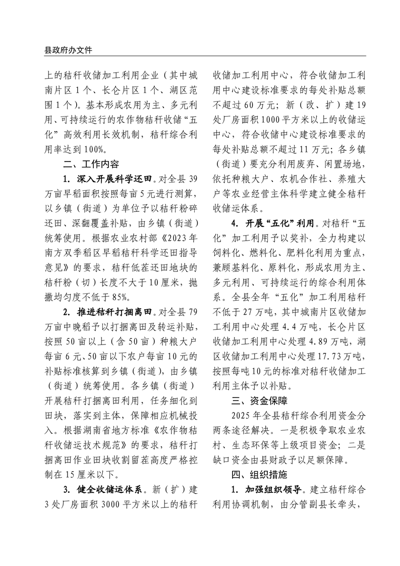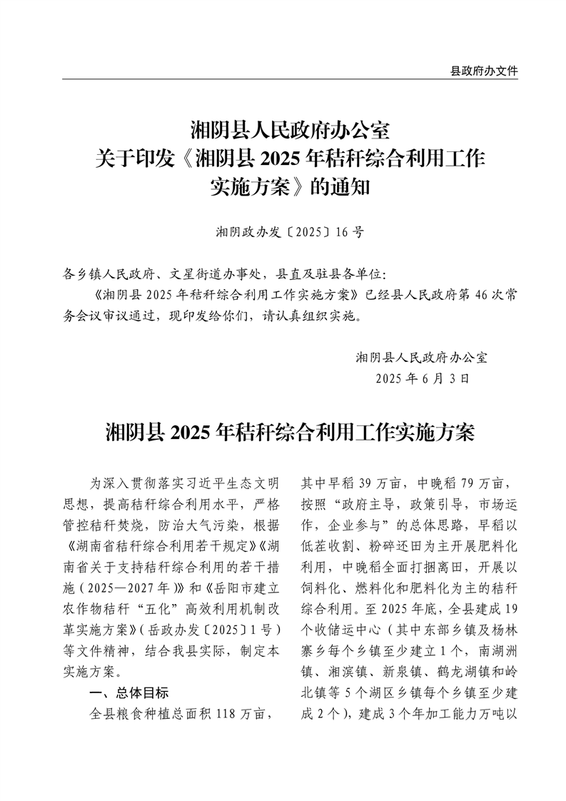 关于印发《湘阴县2025年秸秆综合利用工作实施方案》的通知