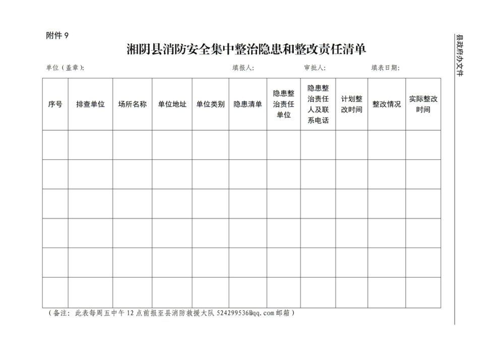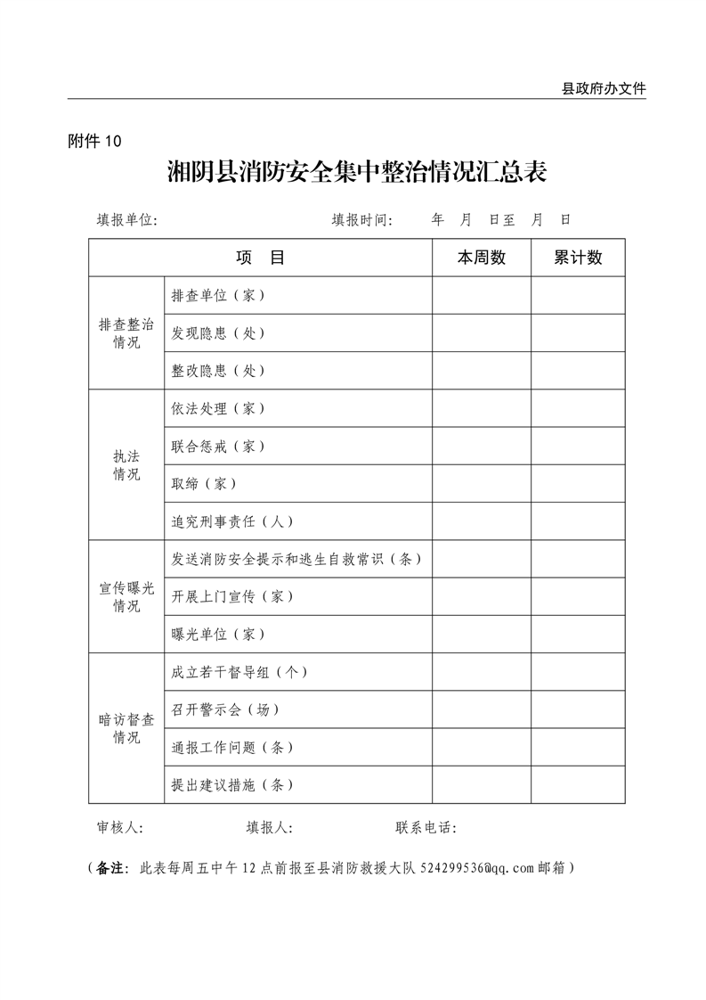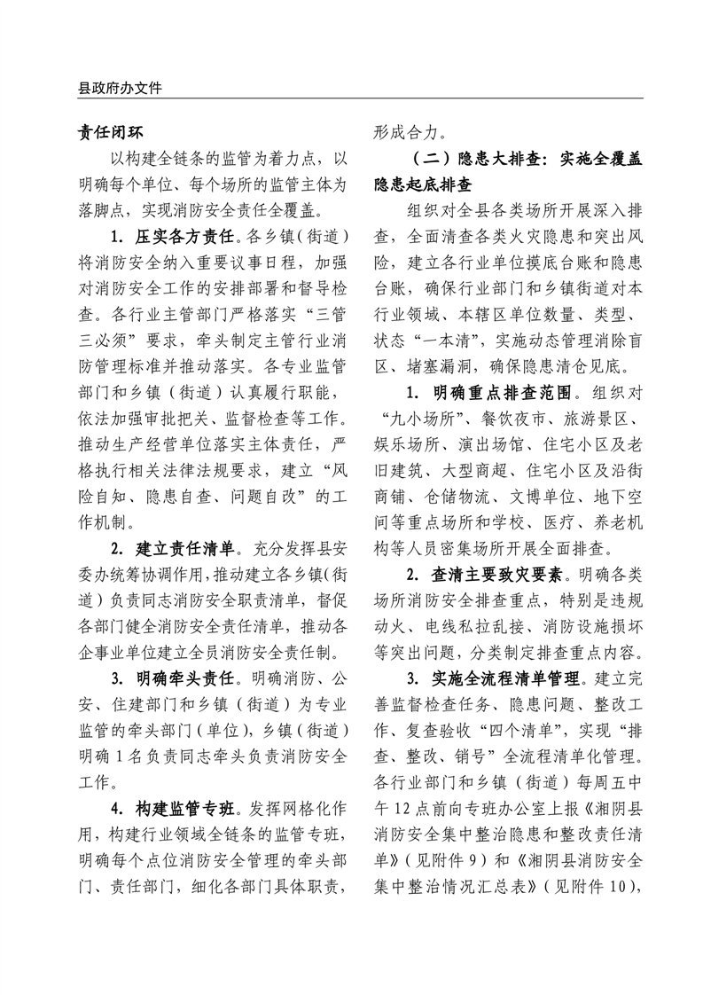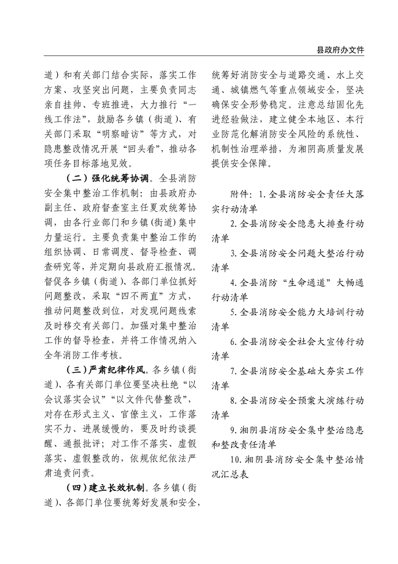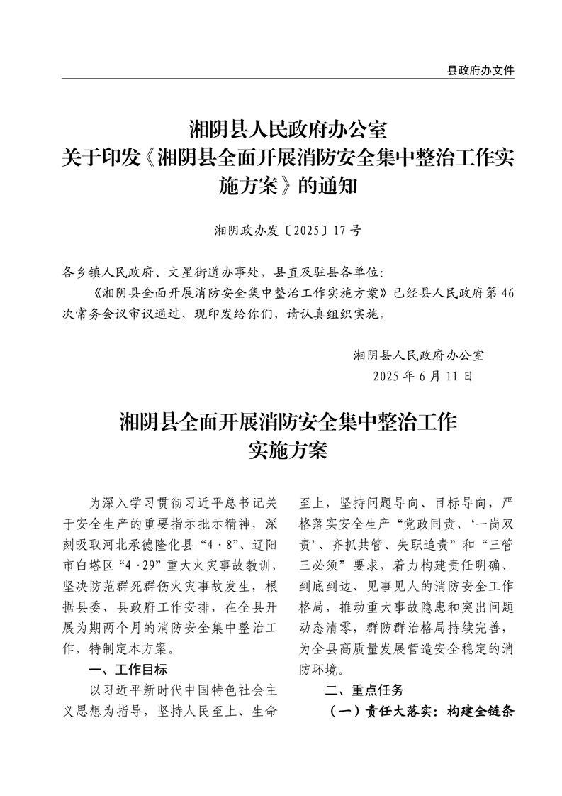 关于印发《湘阴县全面开展消防安全集中整治工作实施方案》的通知