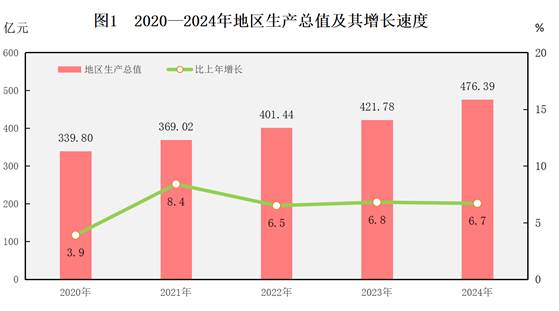 初步核算,全年地区生产总值[2]476.39亿元,比上年增长6.7%。其中,第一产业增加值78.04亿元,比上年增长3.0%;第二产业增加值179.88亿元,增长9.4%;第三产业增加值218.47亿元,增长6.5%。三次产业结构为16.4:37.8:45.9。第一、二、三产业对经济增长的贡献率分别为7.3%、49.7%、43%。其中,工业对经济增长的贡献率为47.9%。