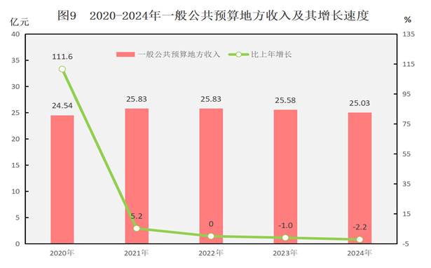 全年一般公共预算收入31.72亿元,比上年下降6.9%。一般公共预算地方收入25.03亿元,下降2.2%;其中税收收入11.64亿元,下降1.0%。一般公共预算支出57.79亿元,下降1.3%。