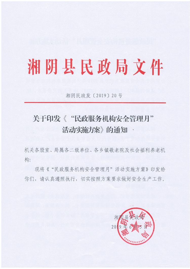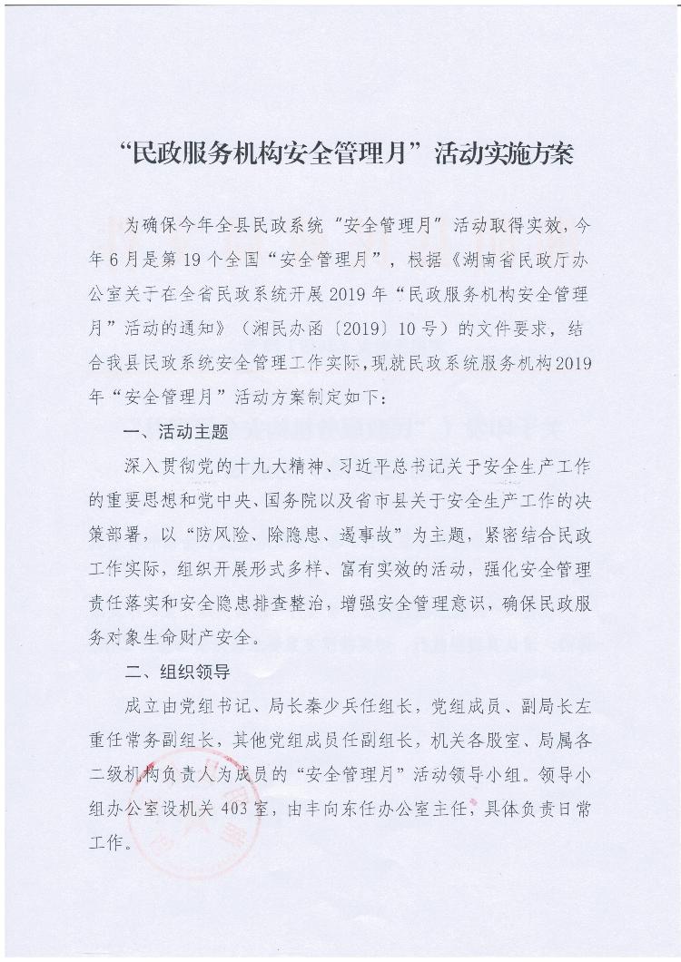 关于印发“民政服务机构安全管理月”活动实施方案的通知