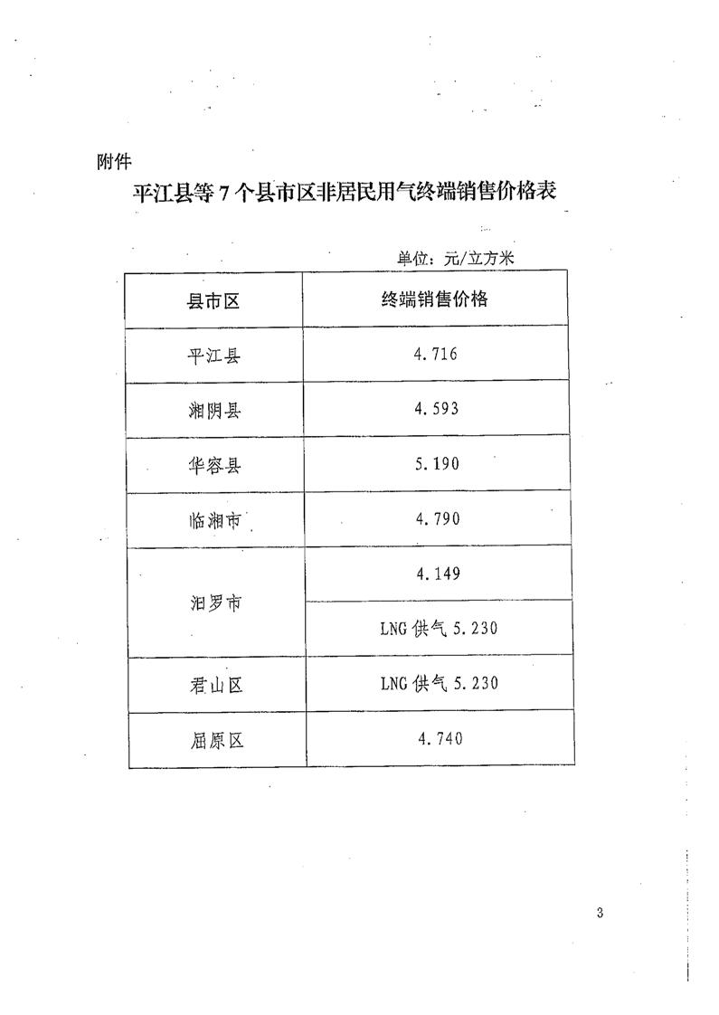 岳阳市发展和改革委员会 《关于启动非居民用气价格联动机制调整终端销售价格的通知》 岳发改商价〔2024〕419号 》