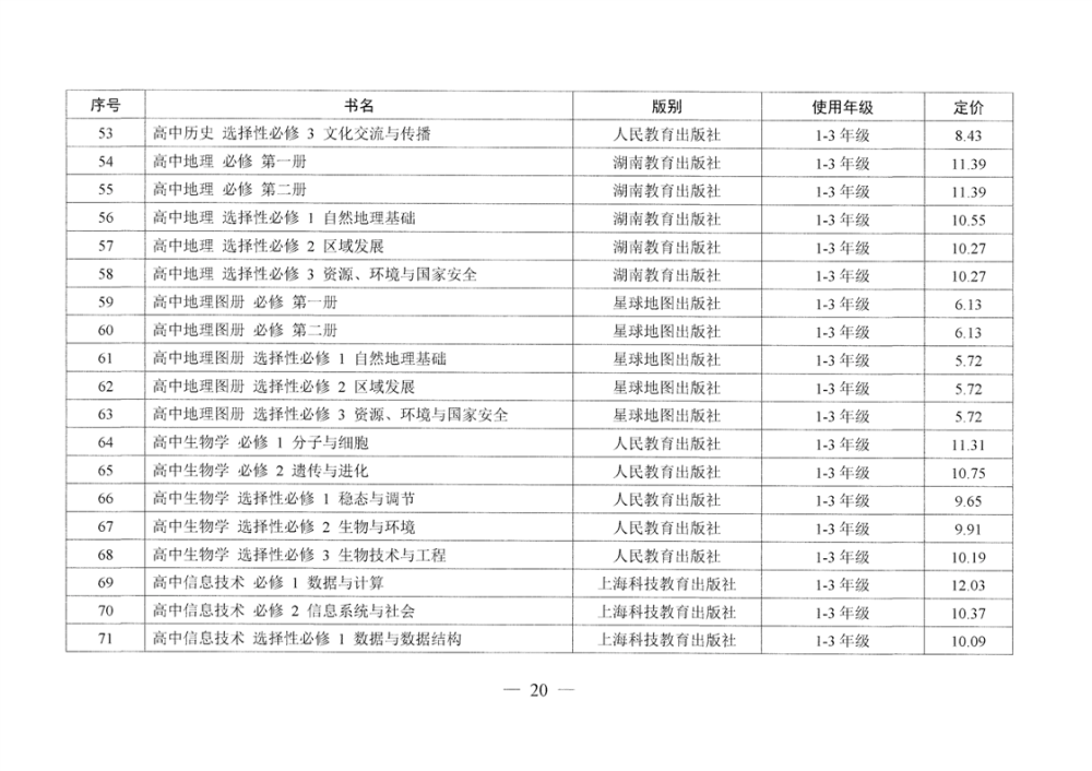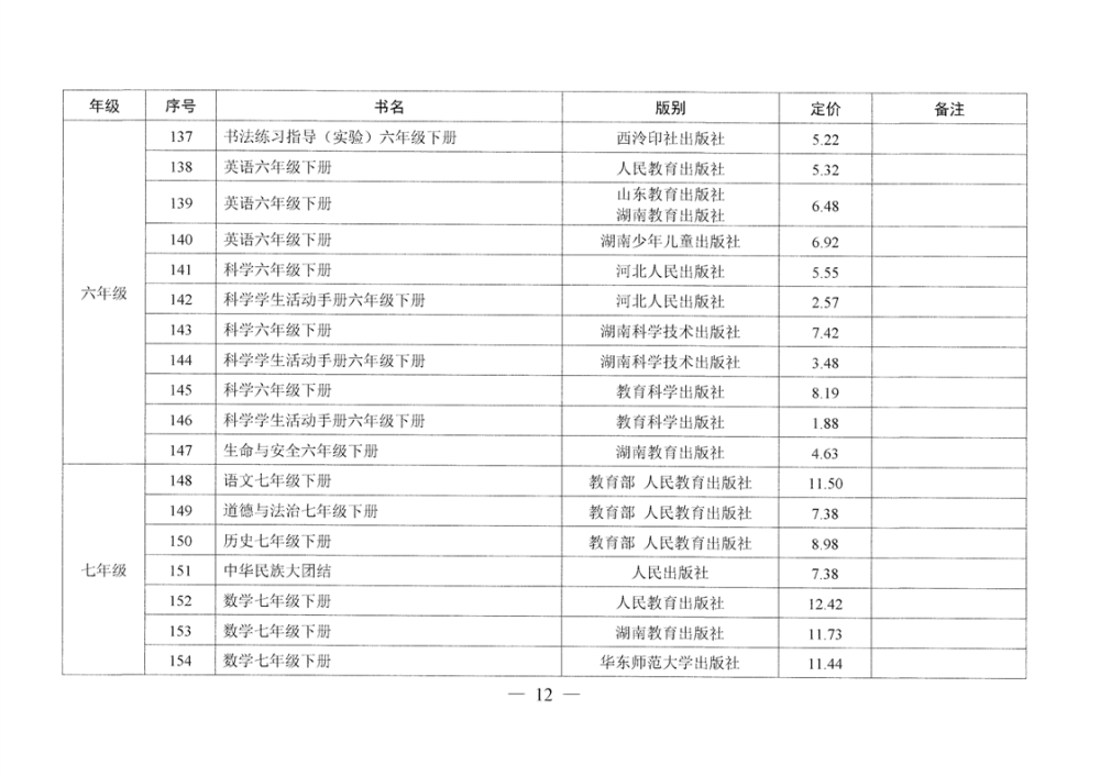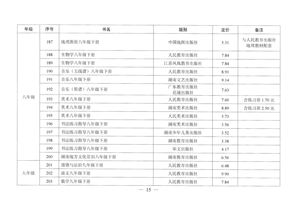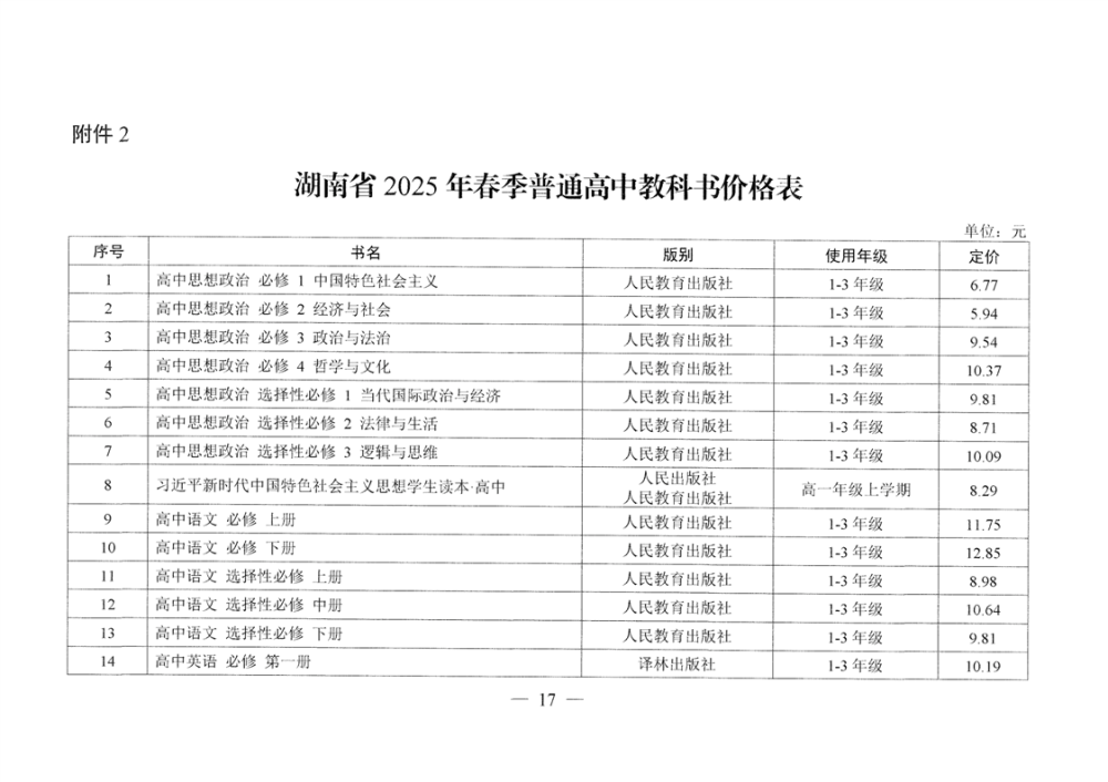 湖南省发展和改革委员会 湖南省新闻出版局 湘发改价费〔2025〕37号 关于核定湖南省2025年春季中小学教科书等价格的通知