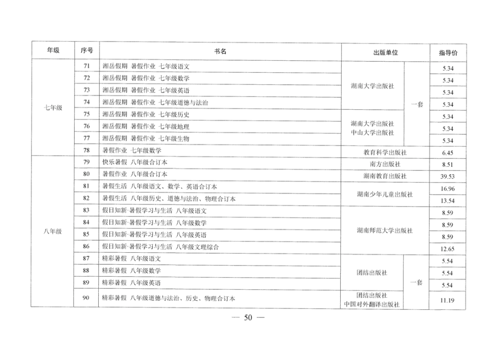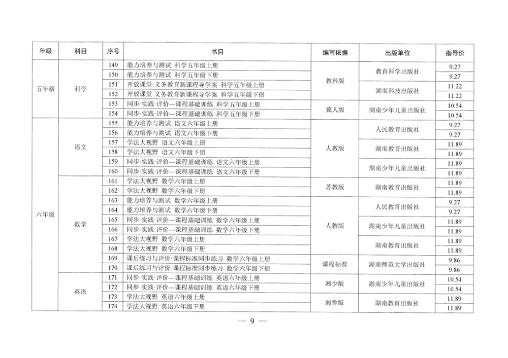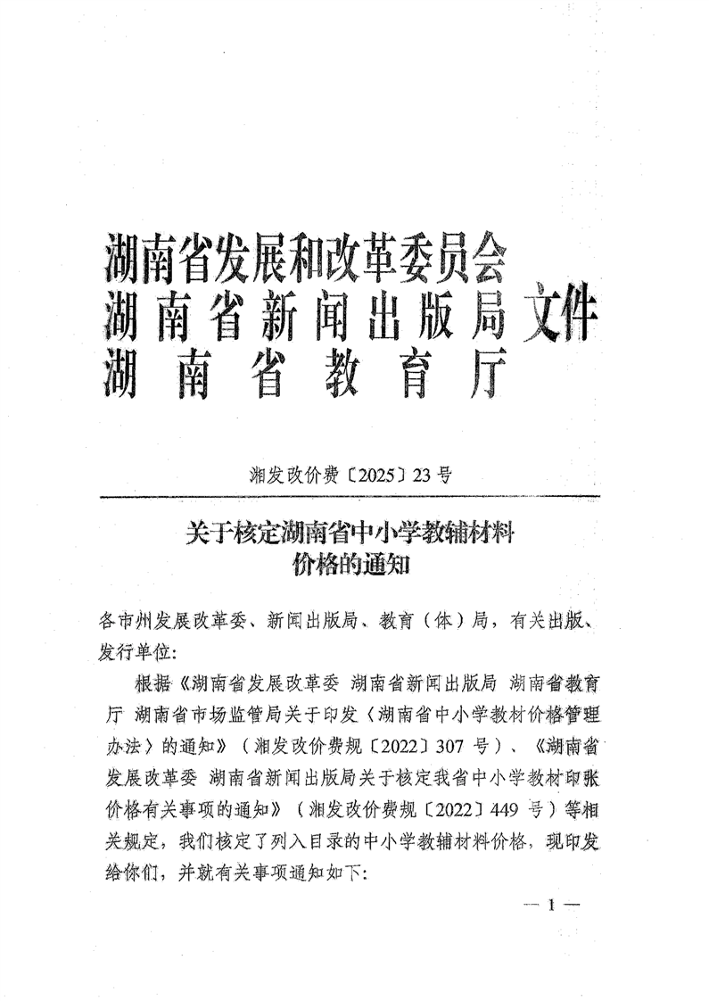 湖南省发展和改革委员会 湖南省新闻出版局 湖南省教育厅 湘发改价费〔2025〕23号 关于核定湖南省中小学教辅材料价格的通知