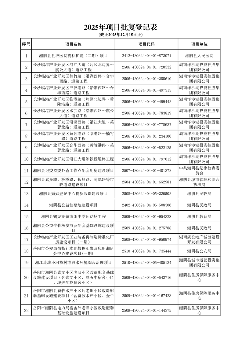 湘阴县发展和改革局项目审批表(2025.6-2025.12)