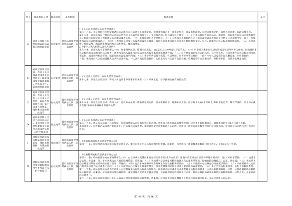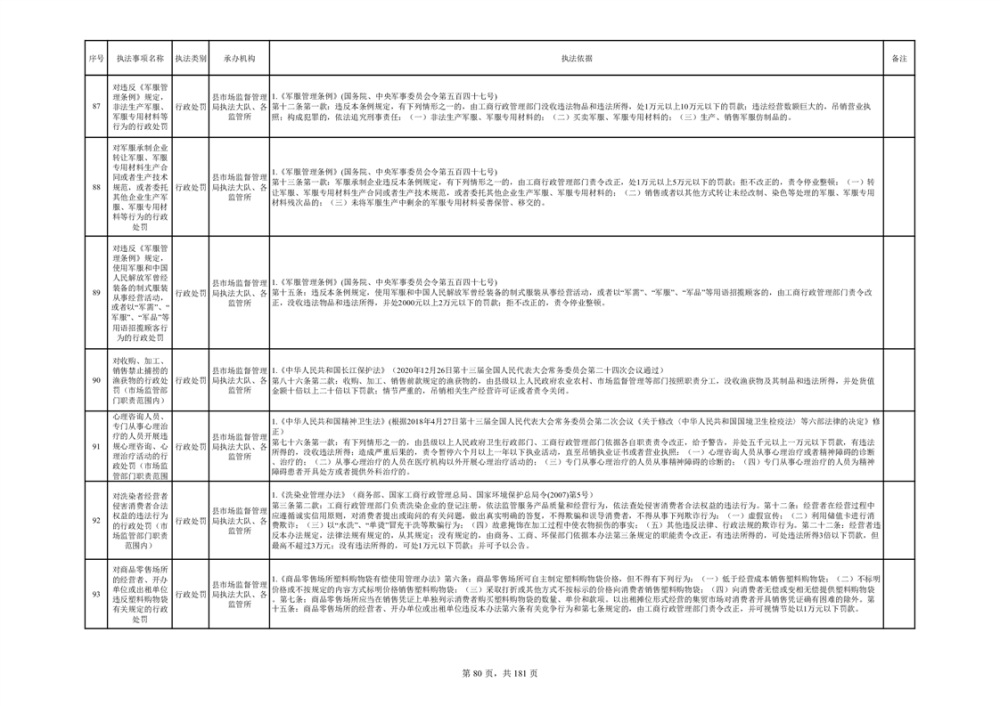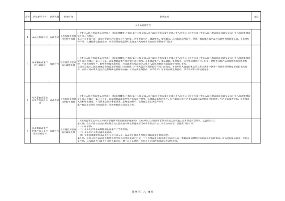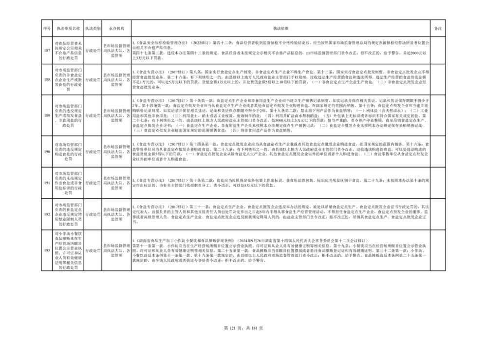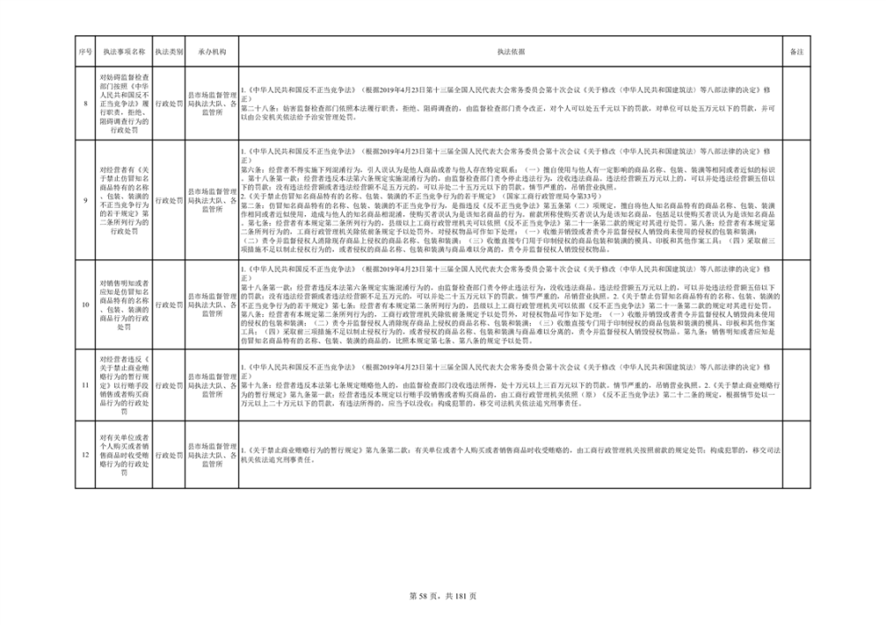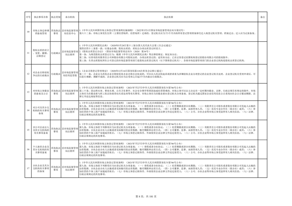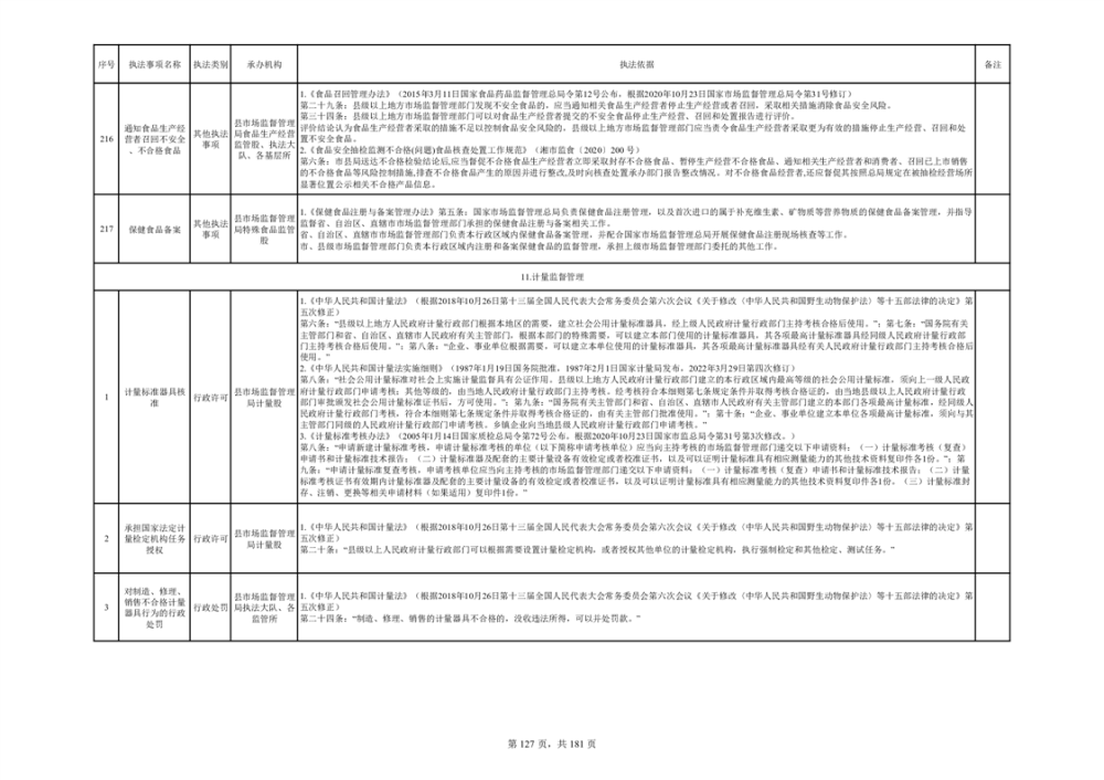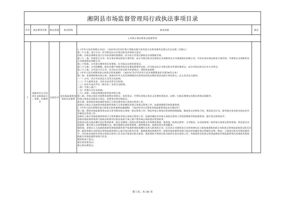 湘阴县市场监督管理局行政执法事项目录