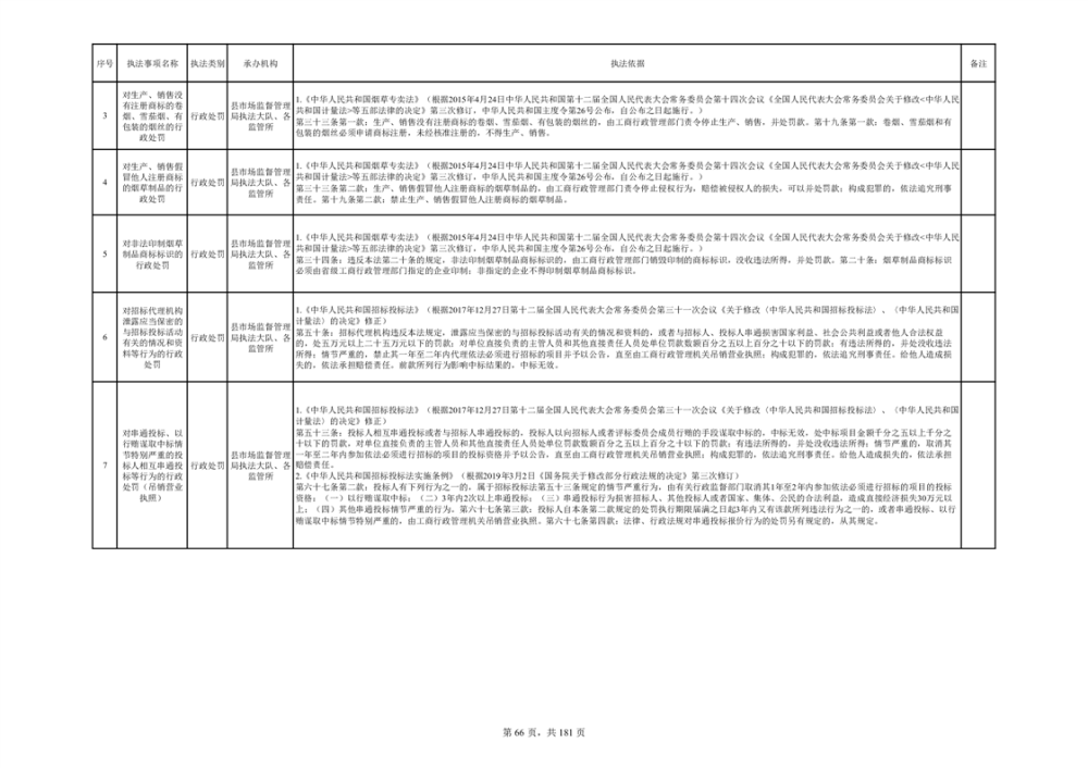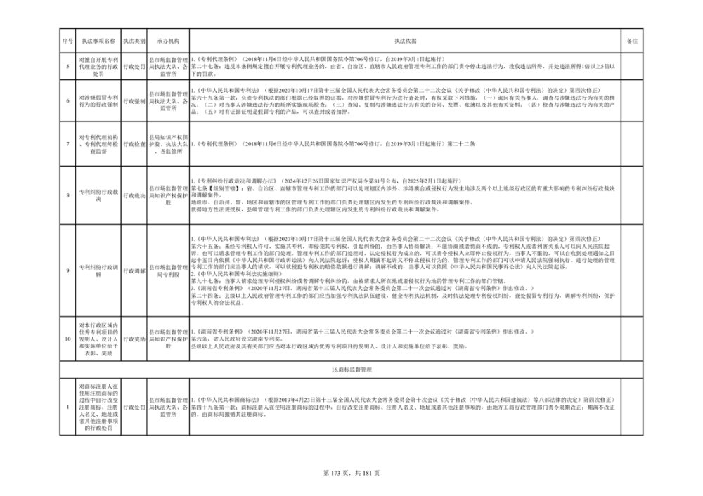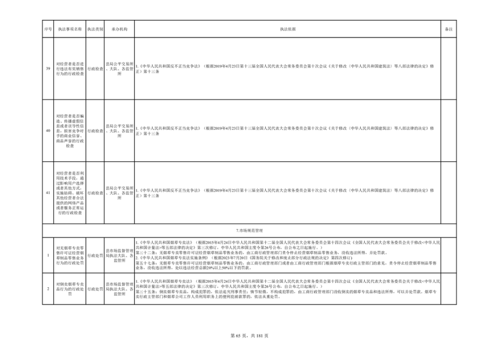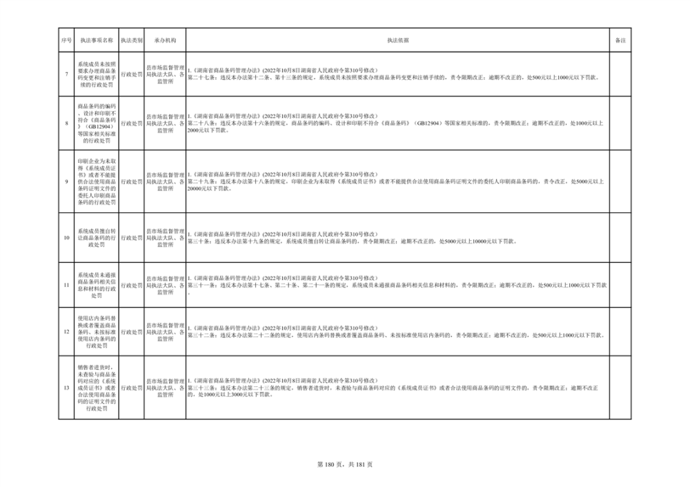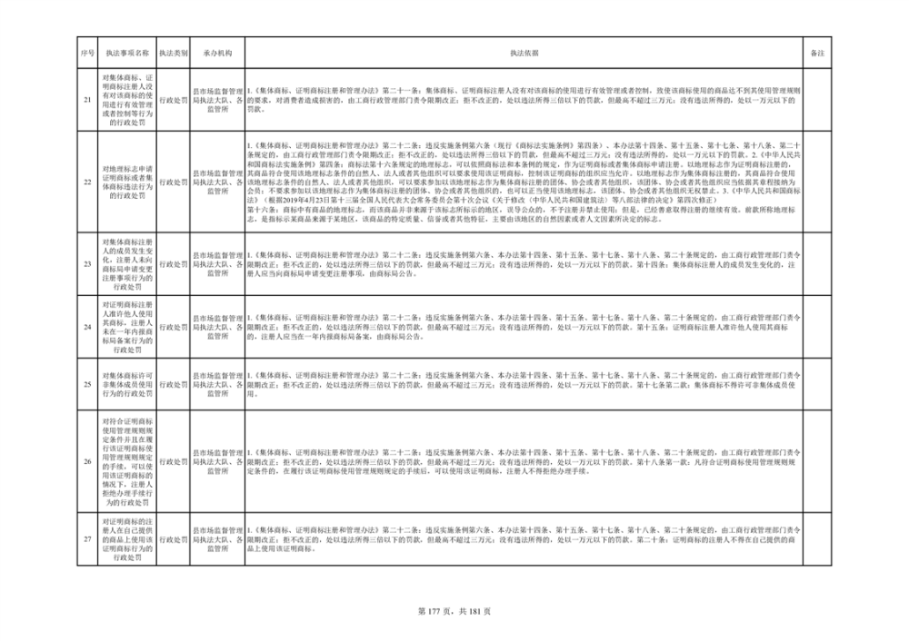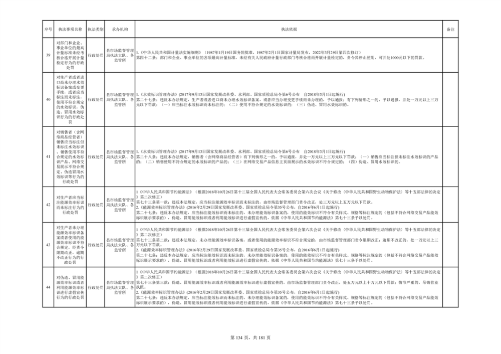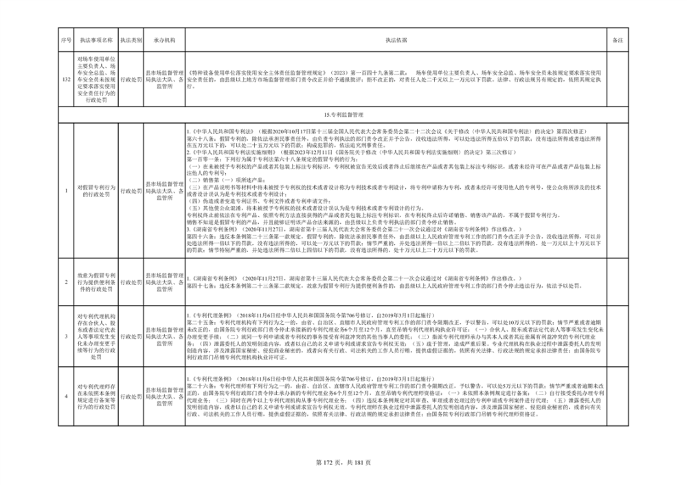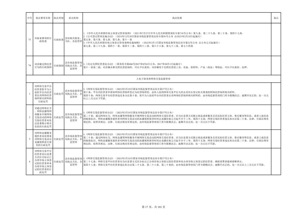 湘阴县市场监督管理局行政执法事项目录