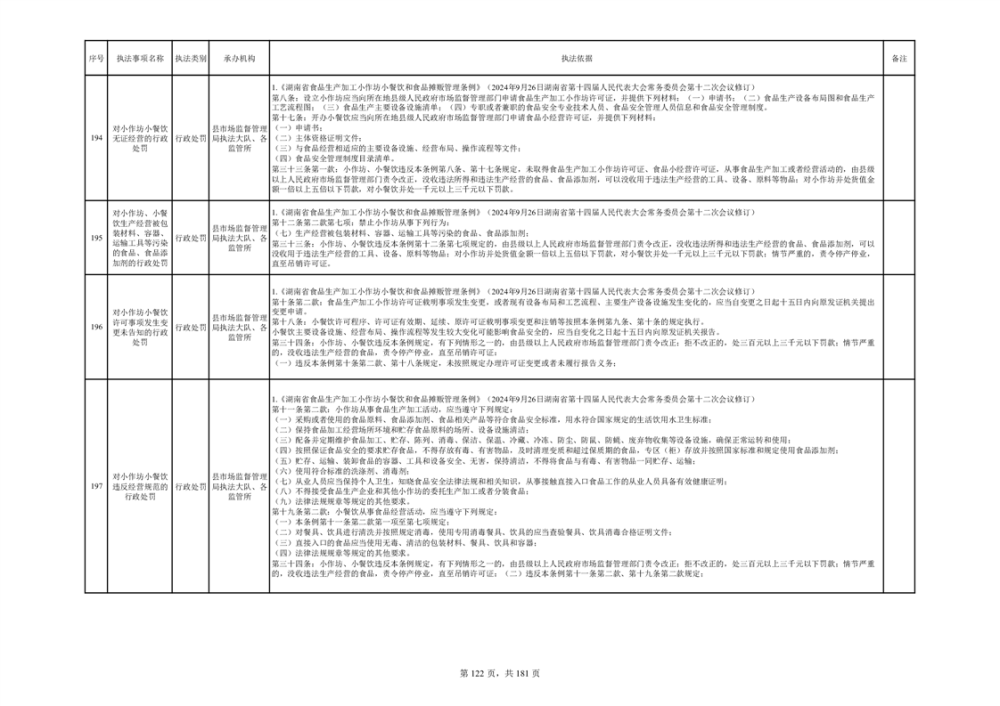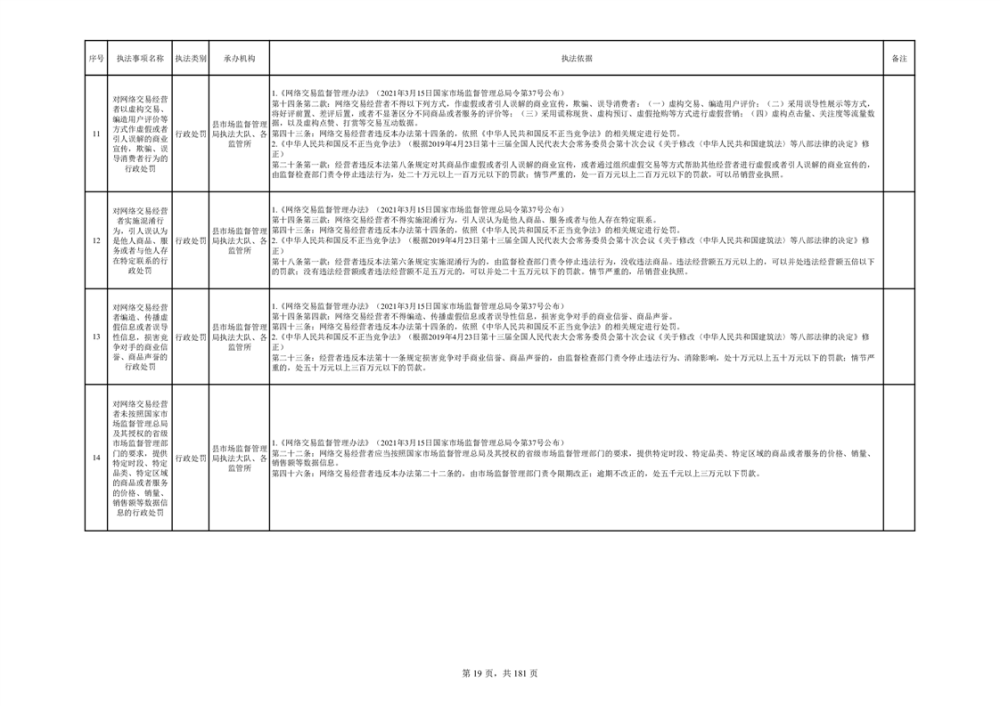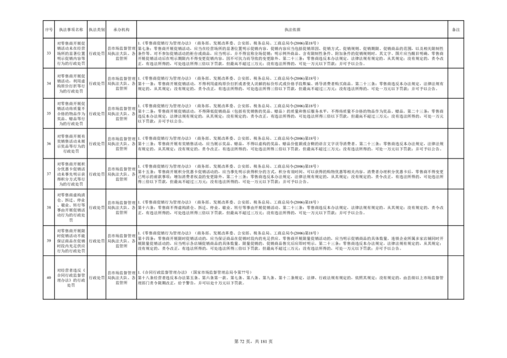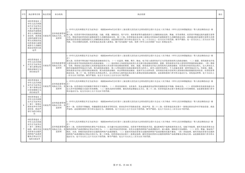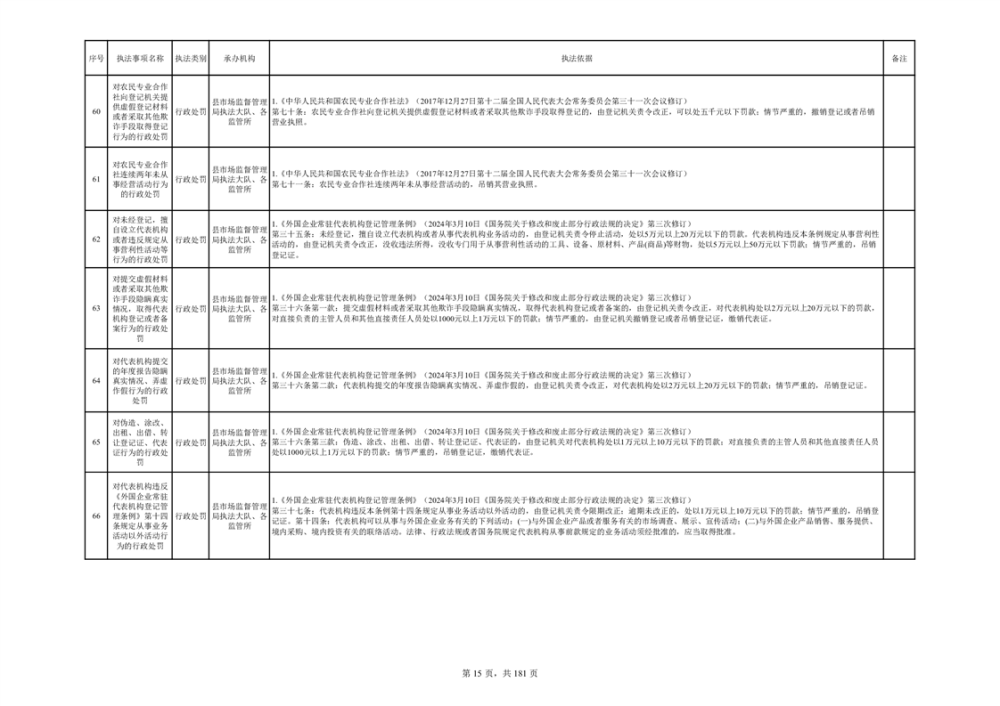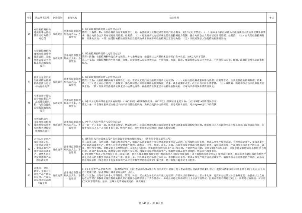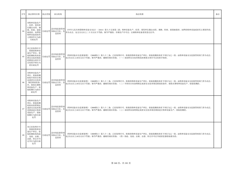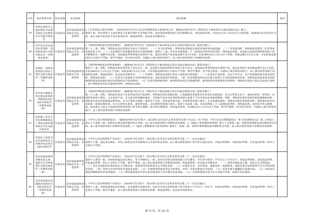 湘阴县市场监督管理局行政执法事项目录