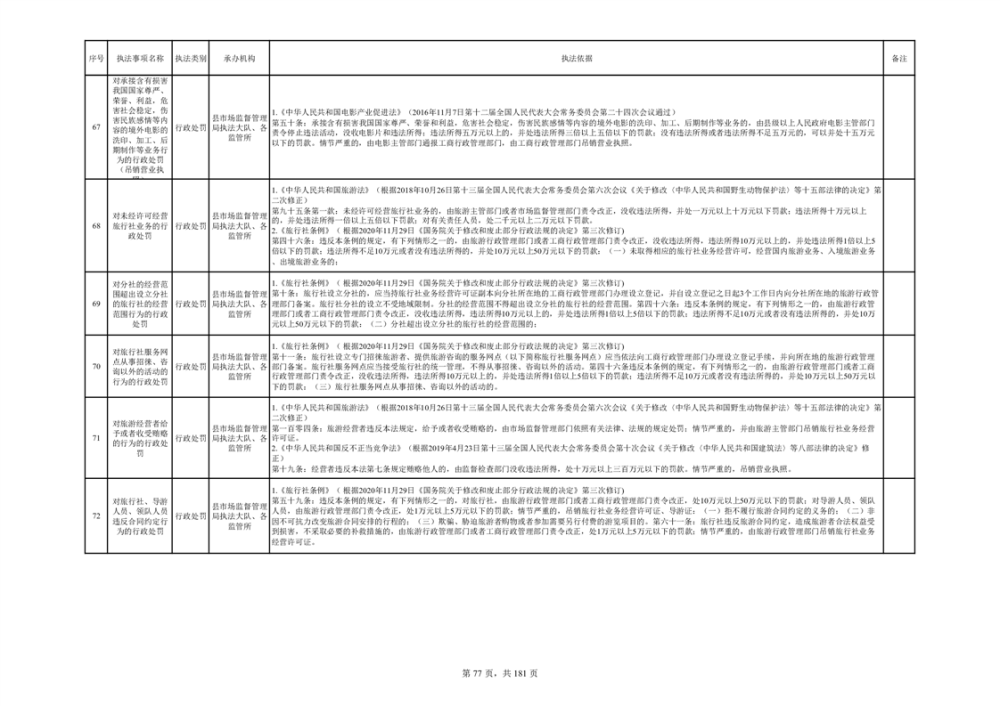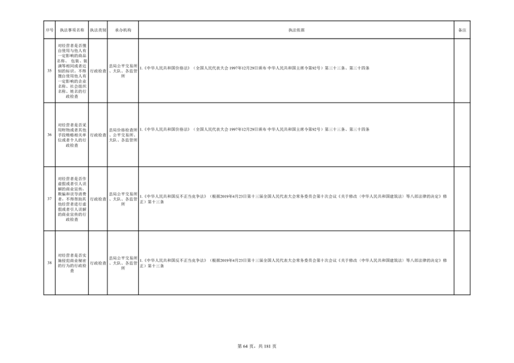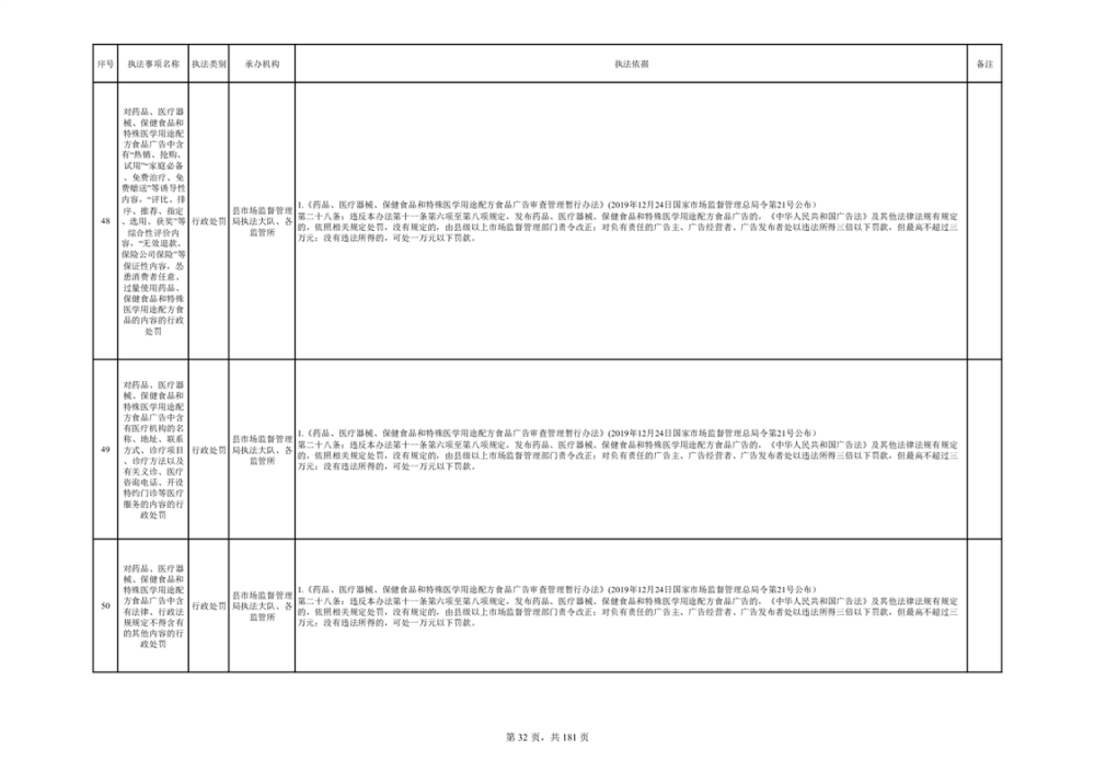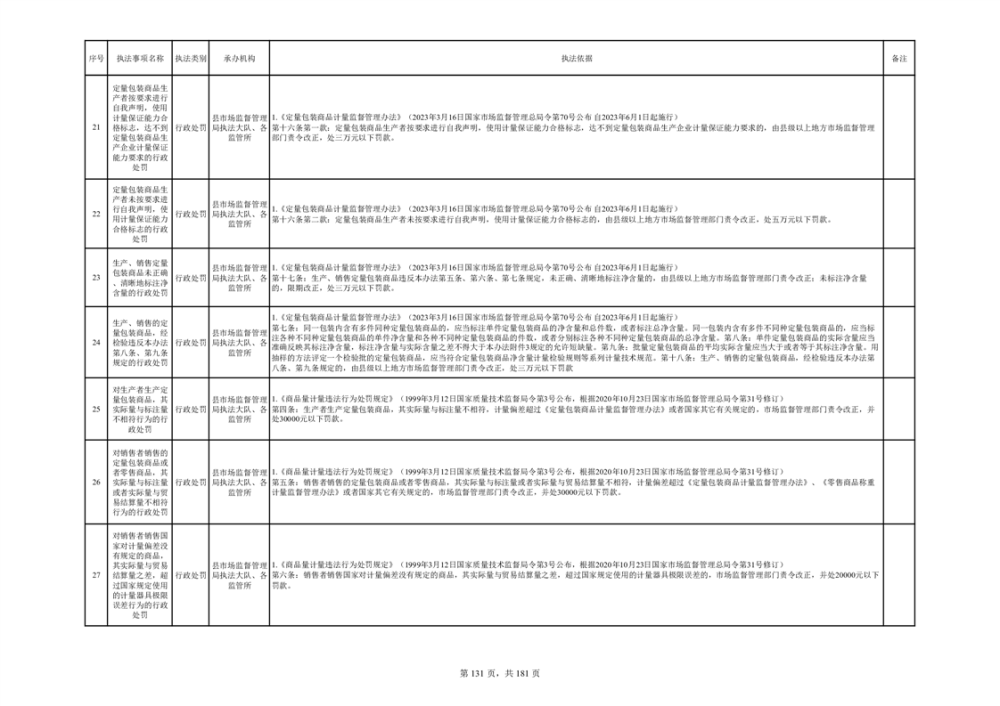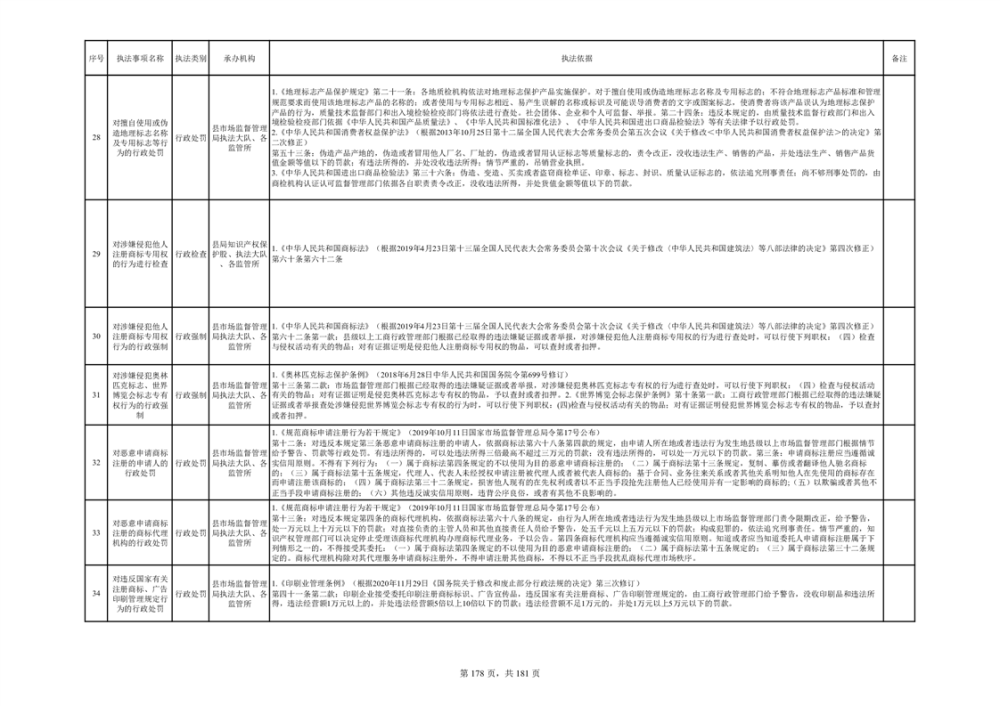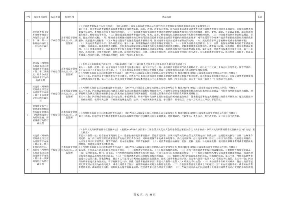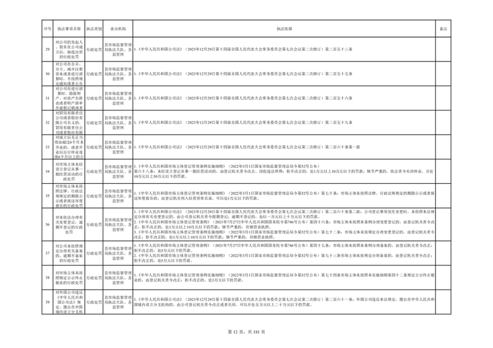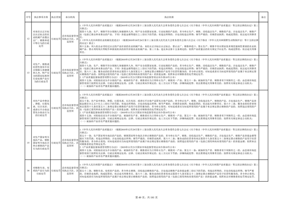 湘阴县市场监督管理局行政执法事项目录
