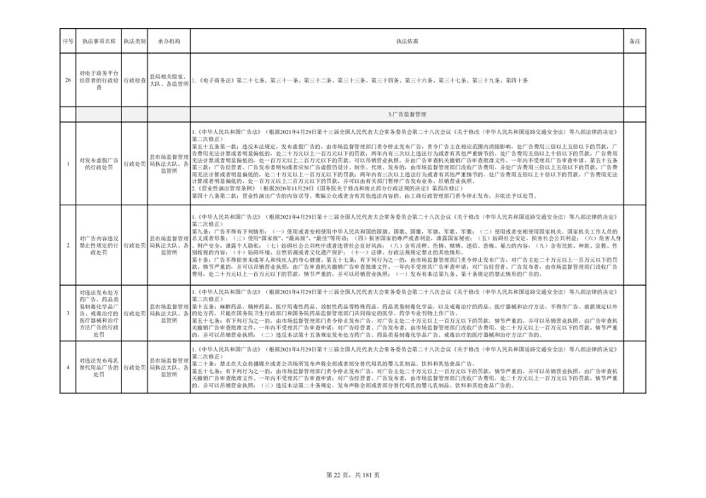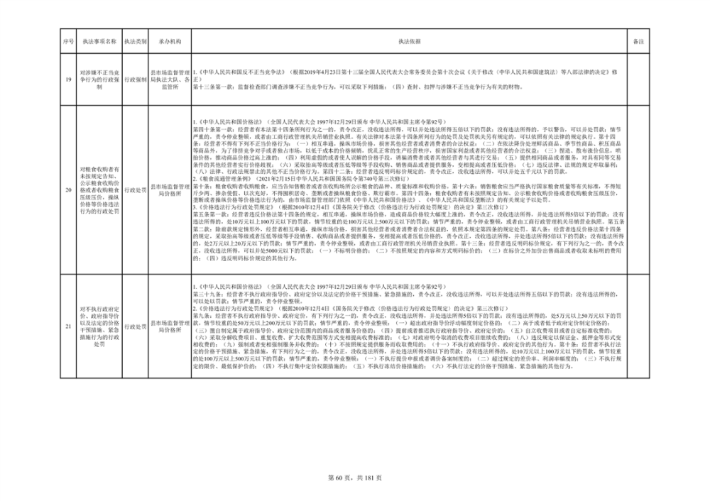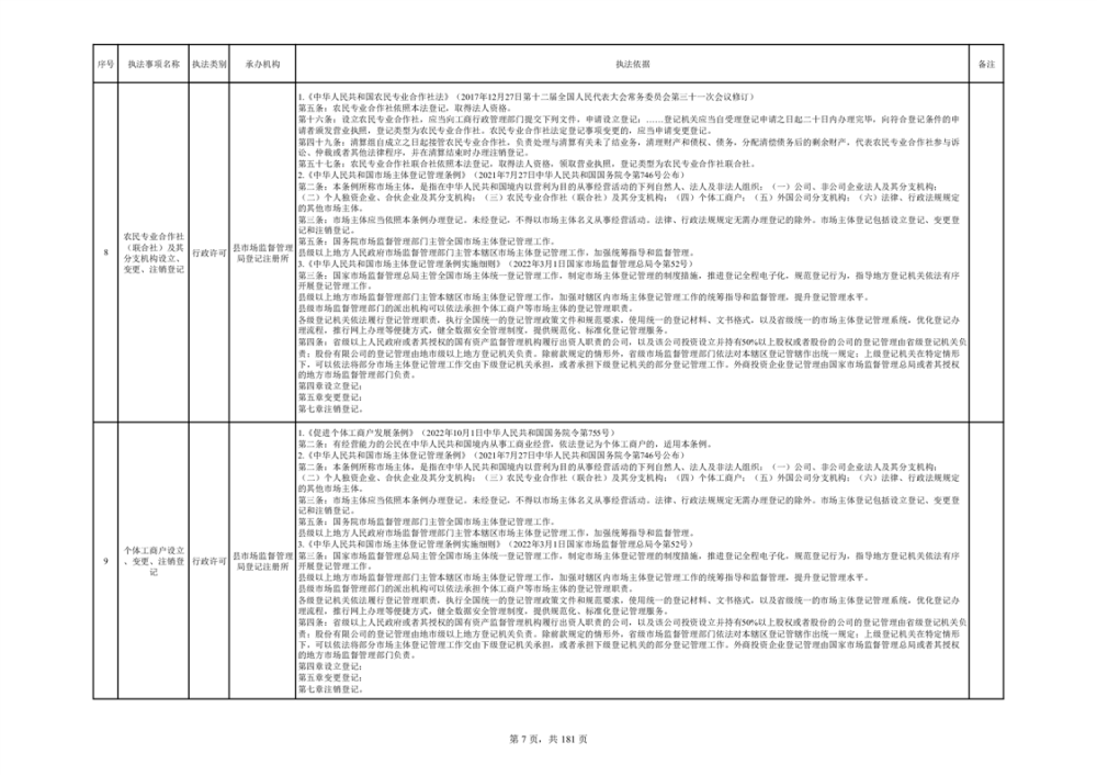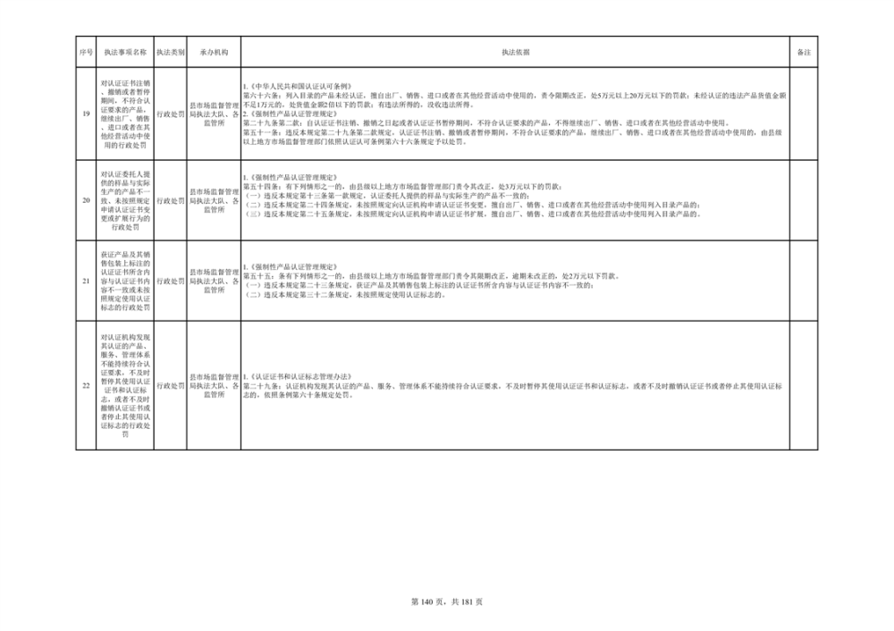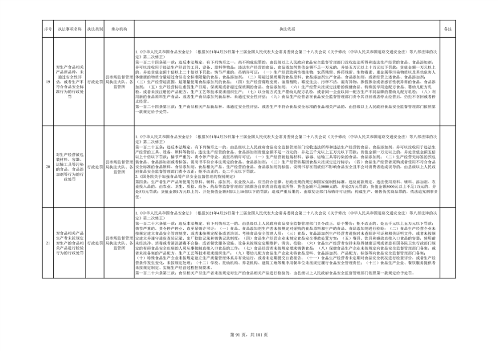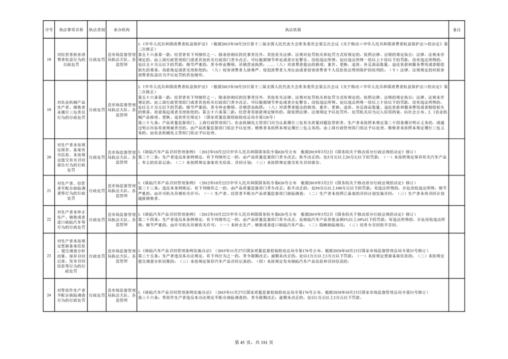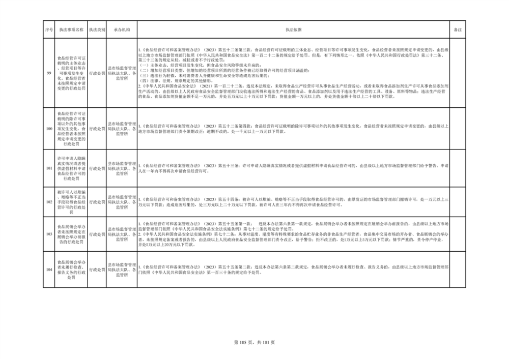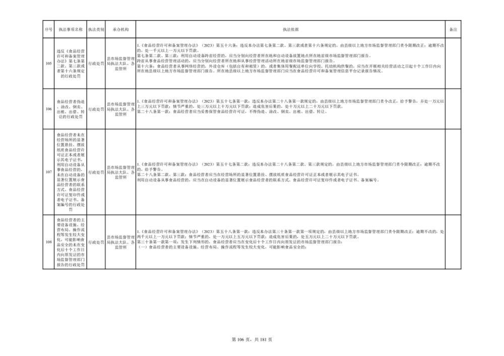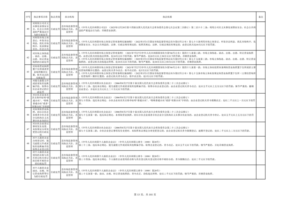 湘阴县市场监督管理局行政执法事项目录