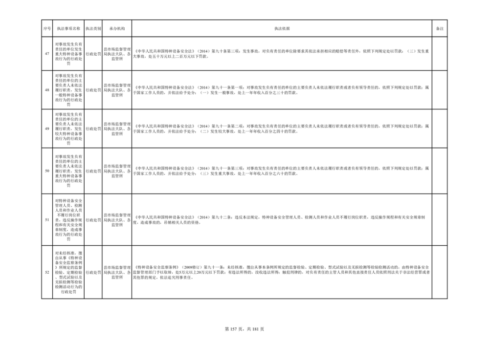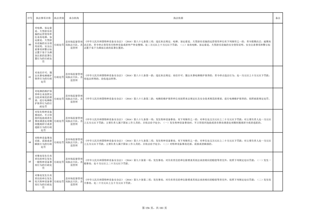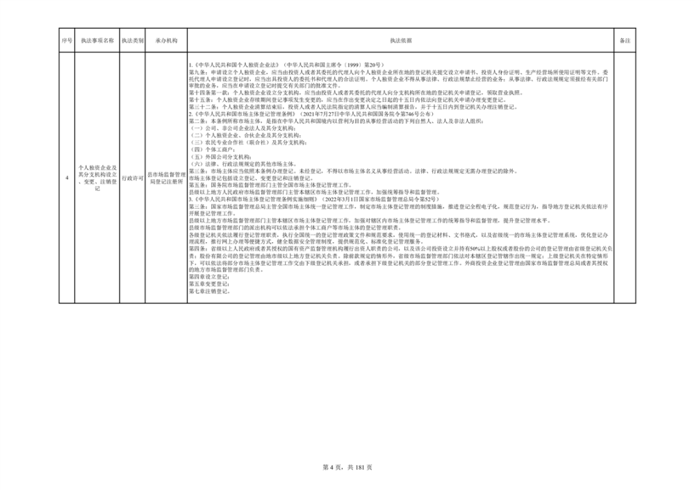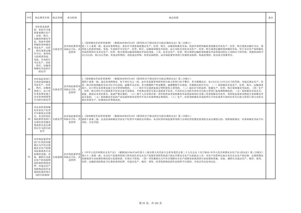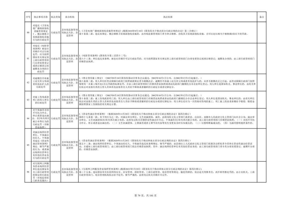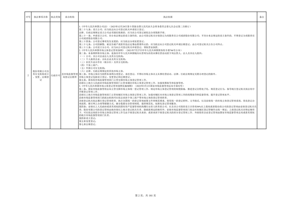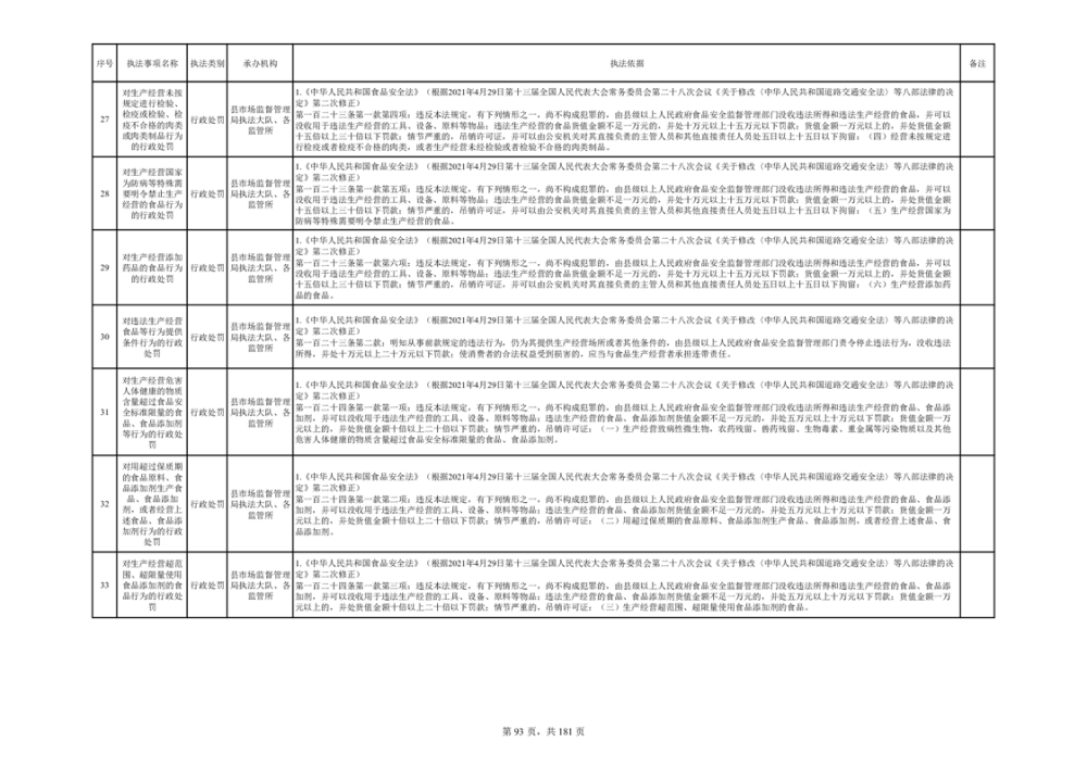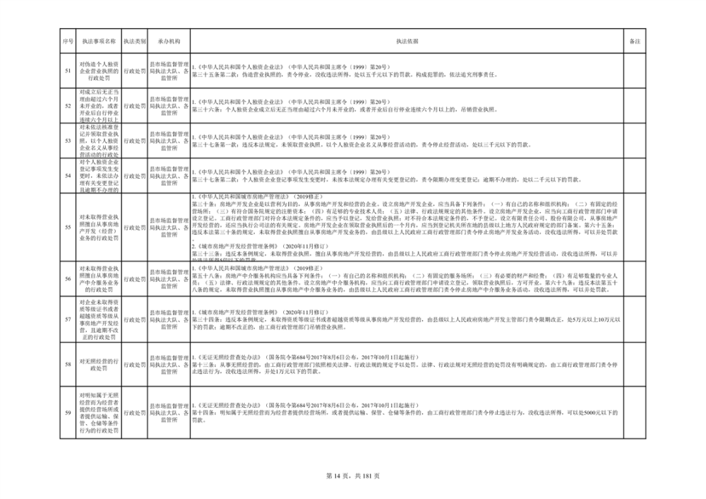 湘阴县市场监督管理局行政执法事项目录