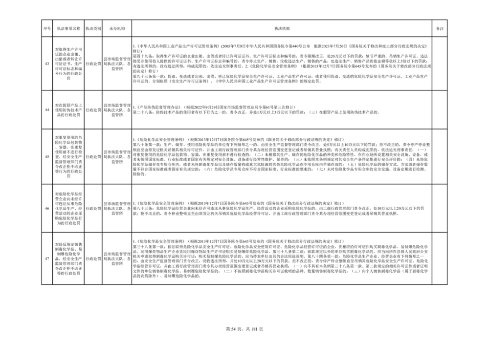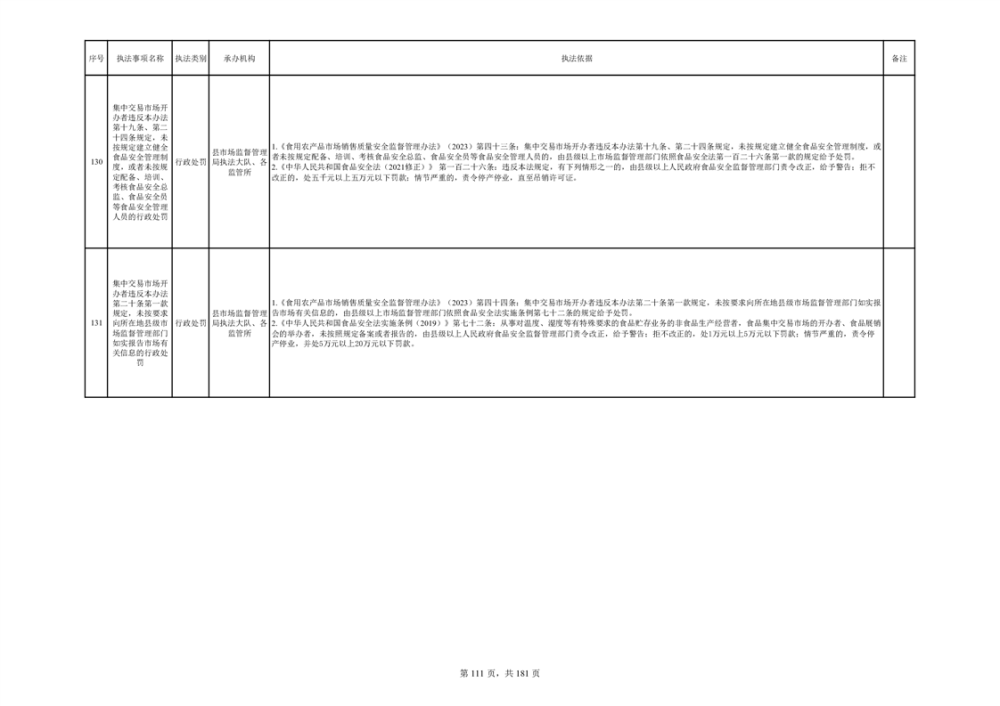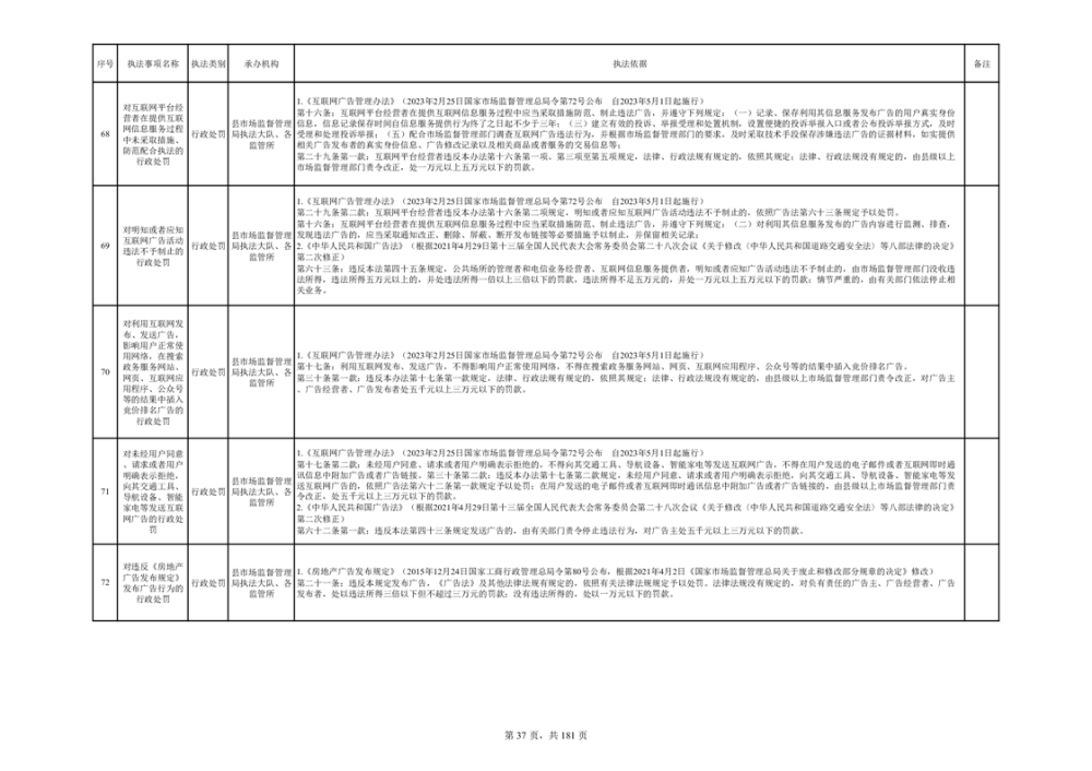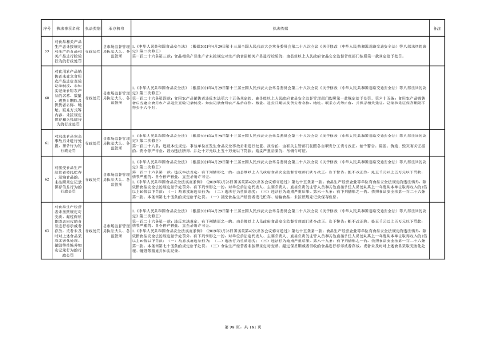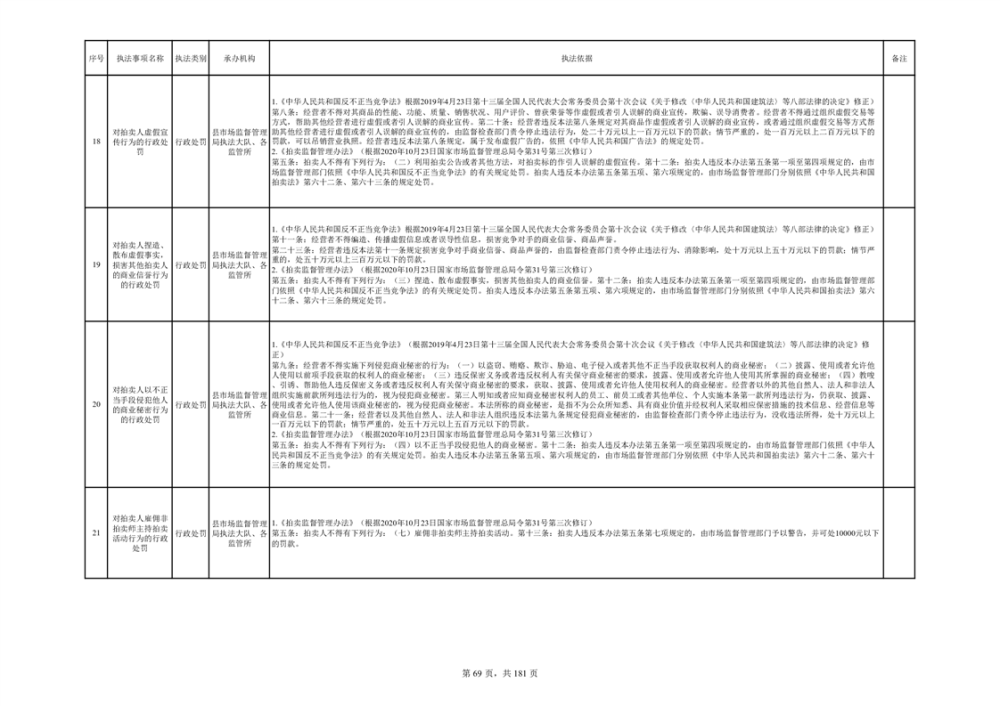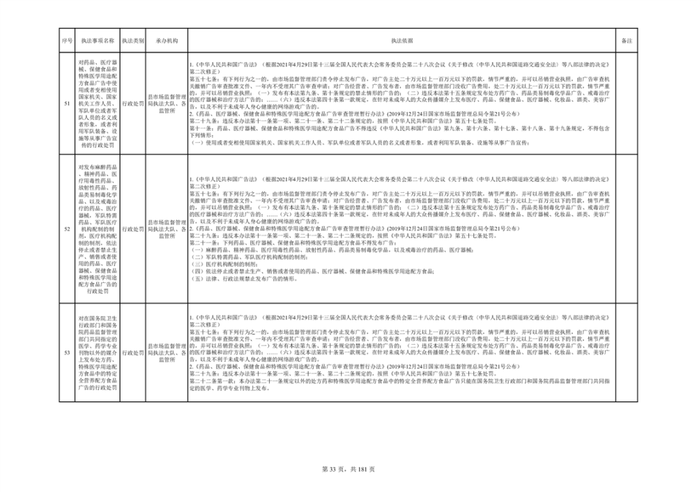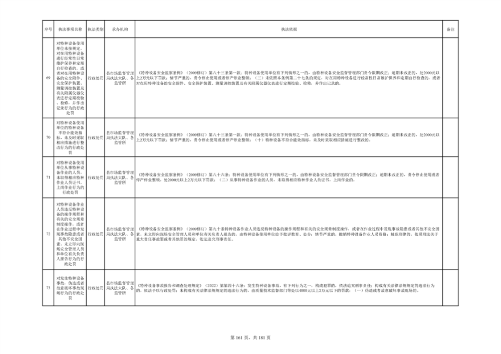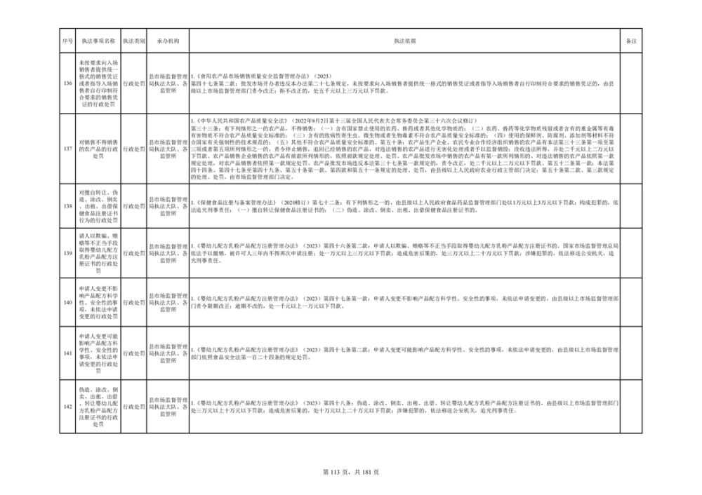 湘阴县市场监督管理局行政执法事项目录