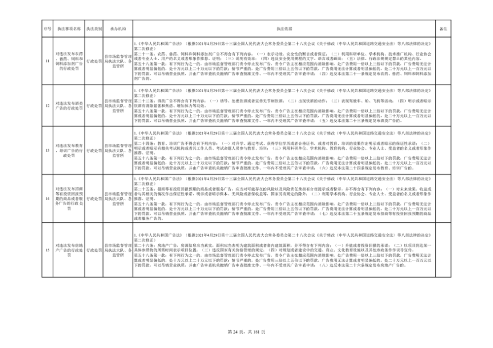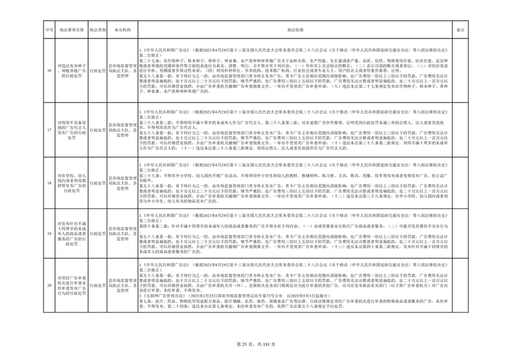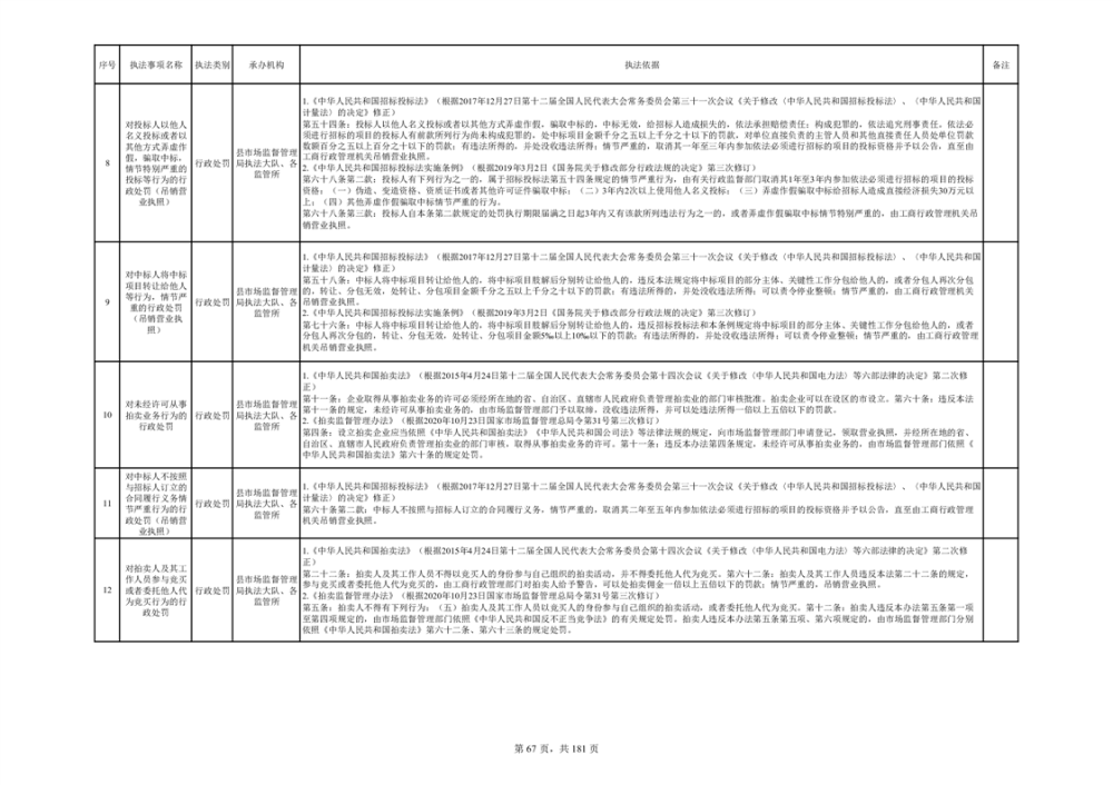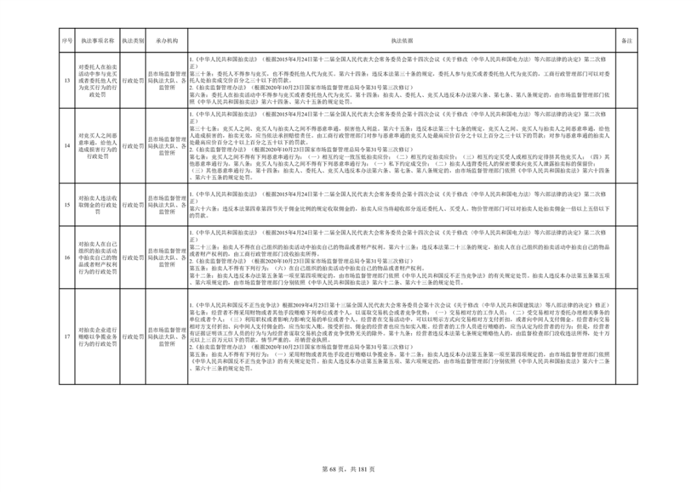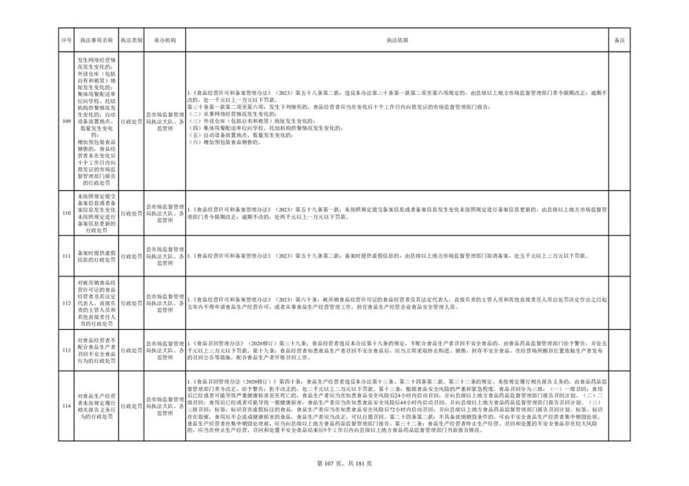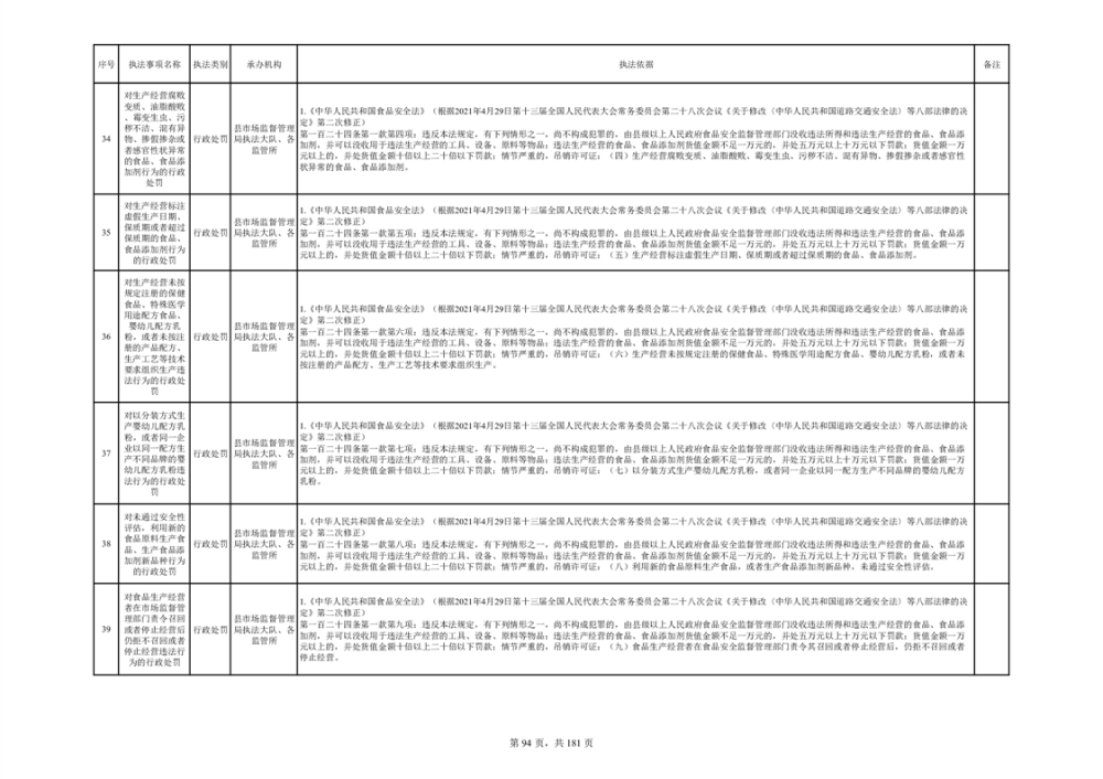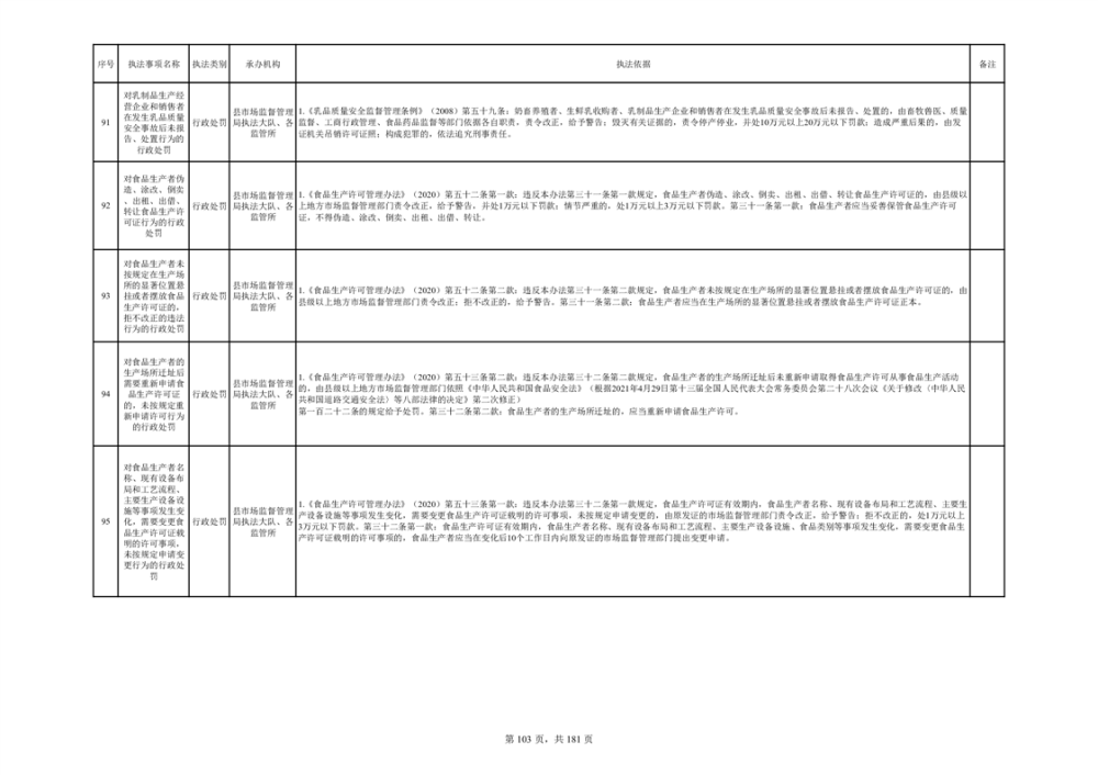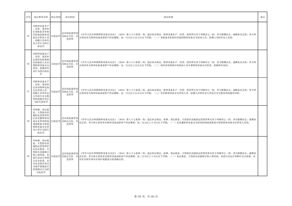 湘阴县市场监督管理局行政执法事项目录