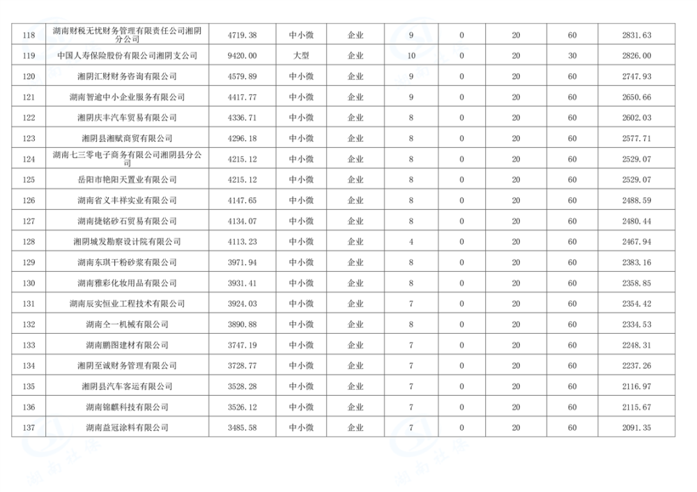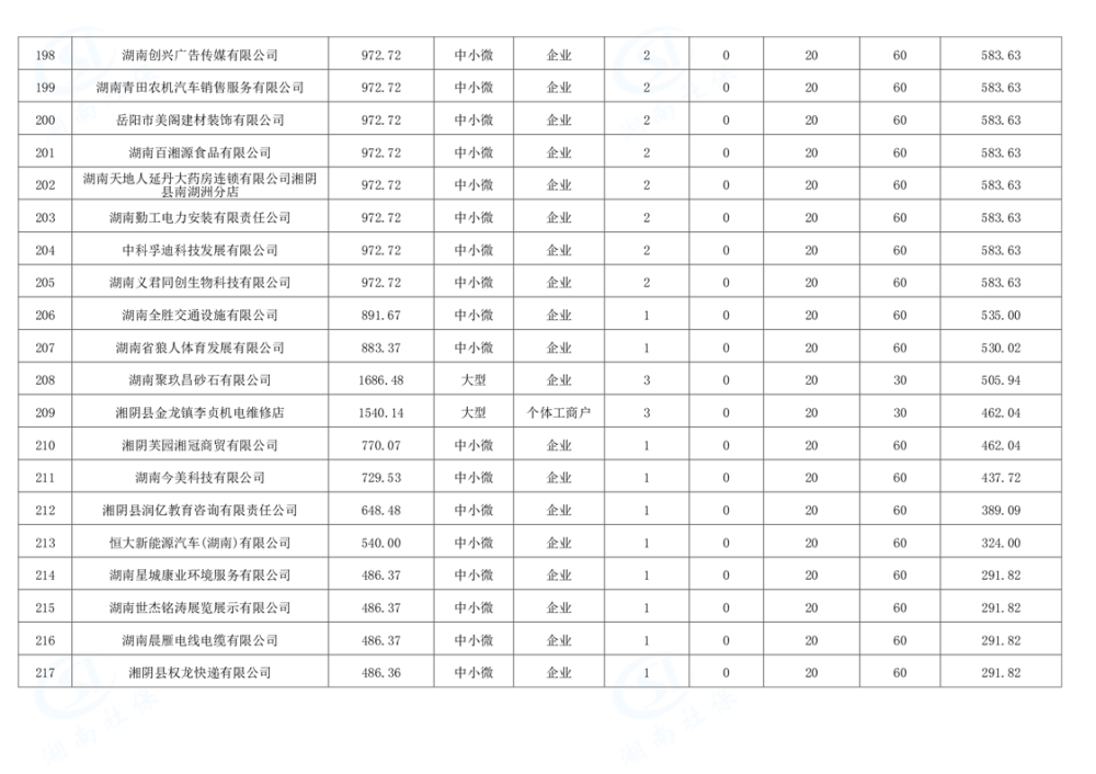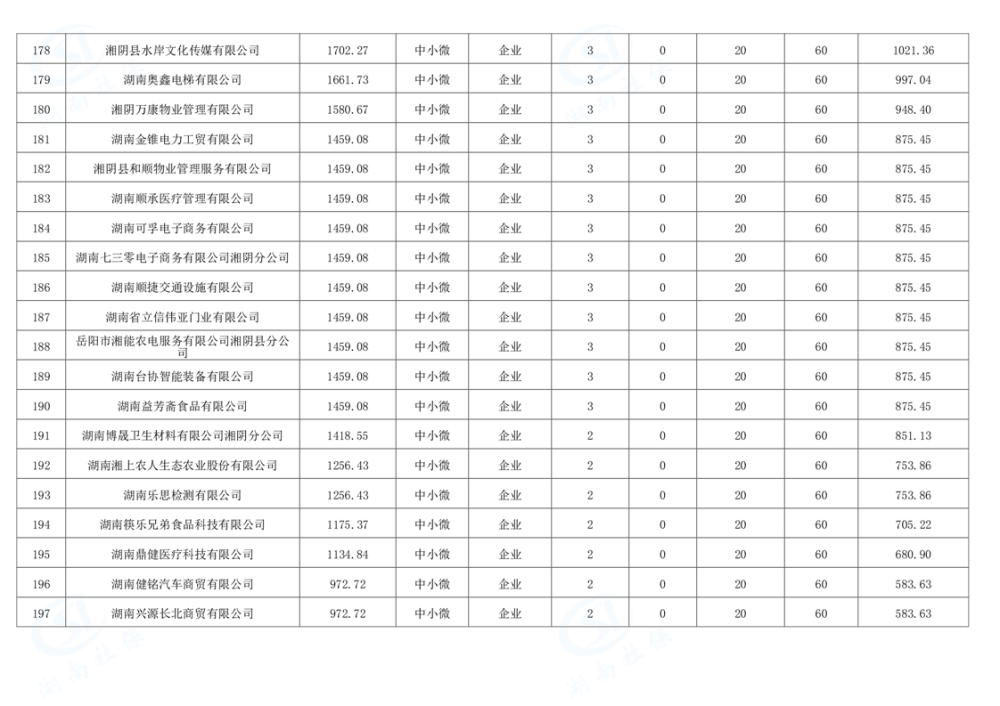 湘阴县2025年度9月稳岗返还补贴名单公示