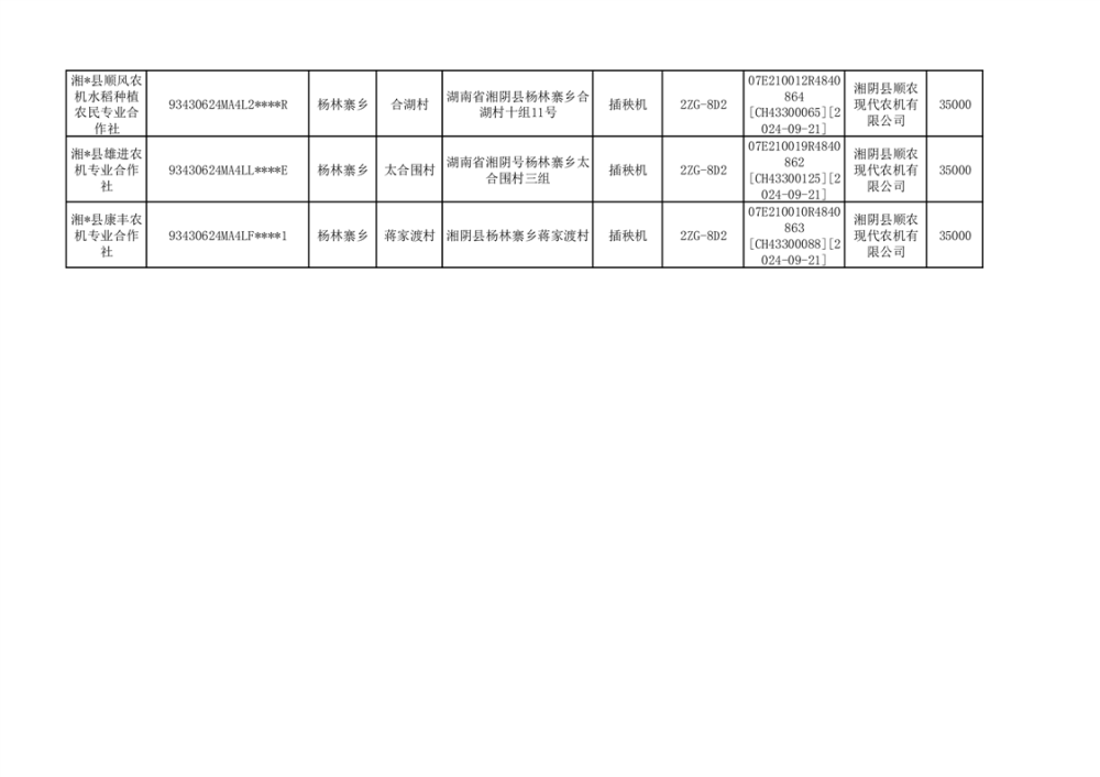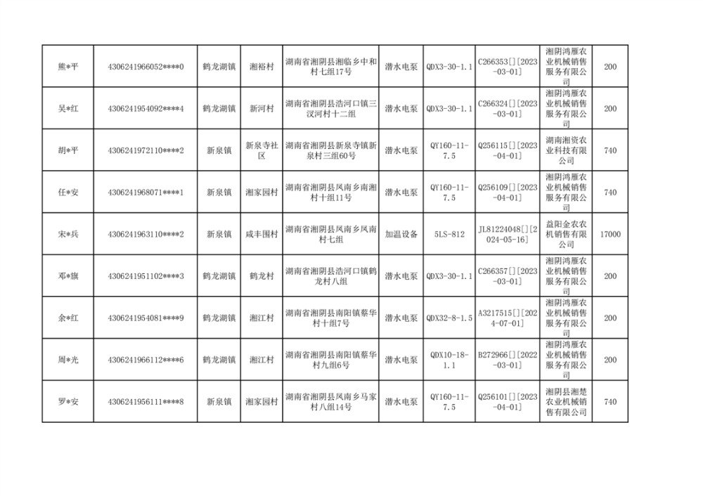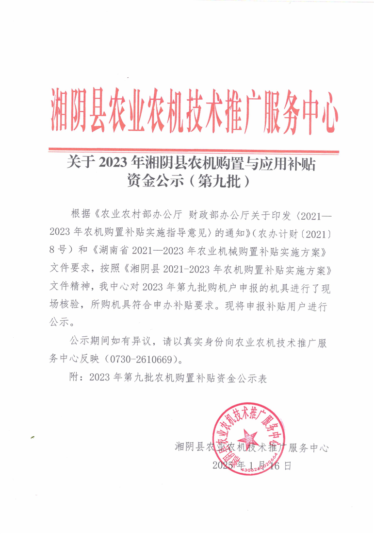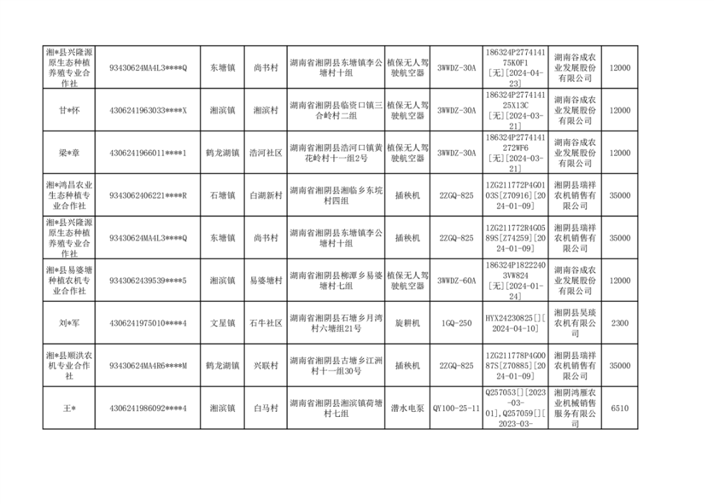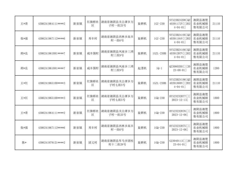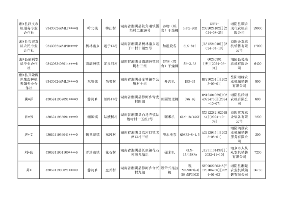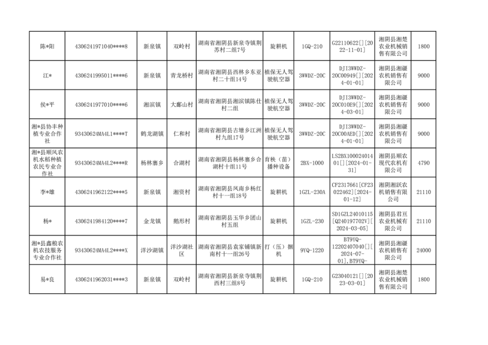 2023年湘阴县农机购置补贴资金公示(第九批)
