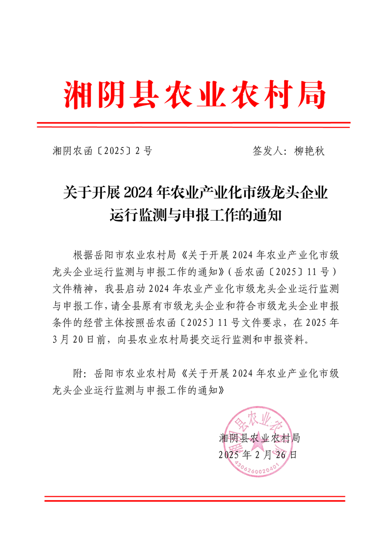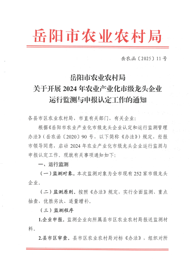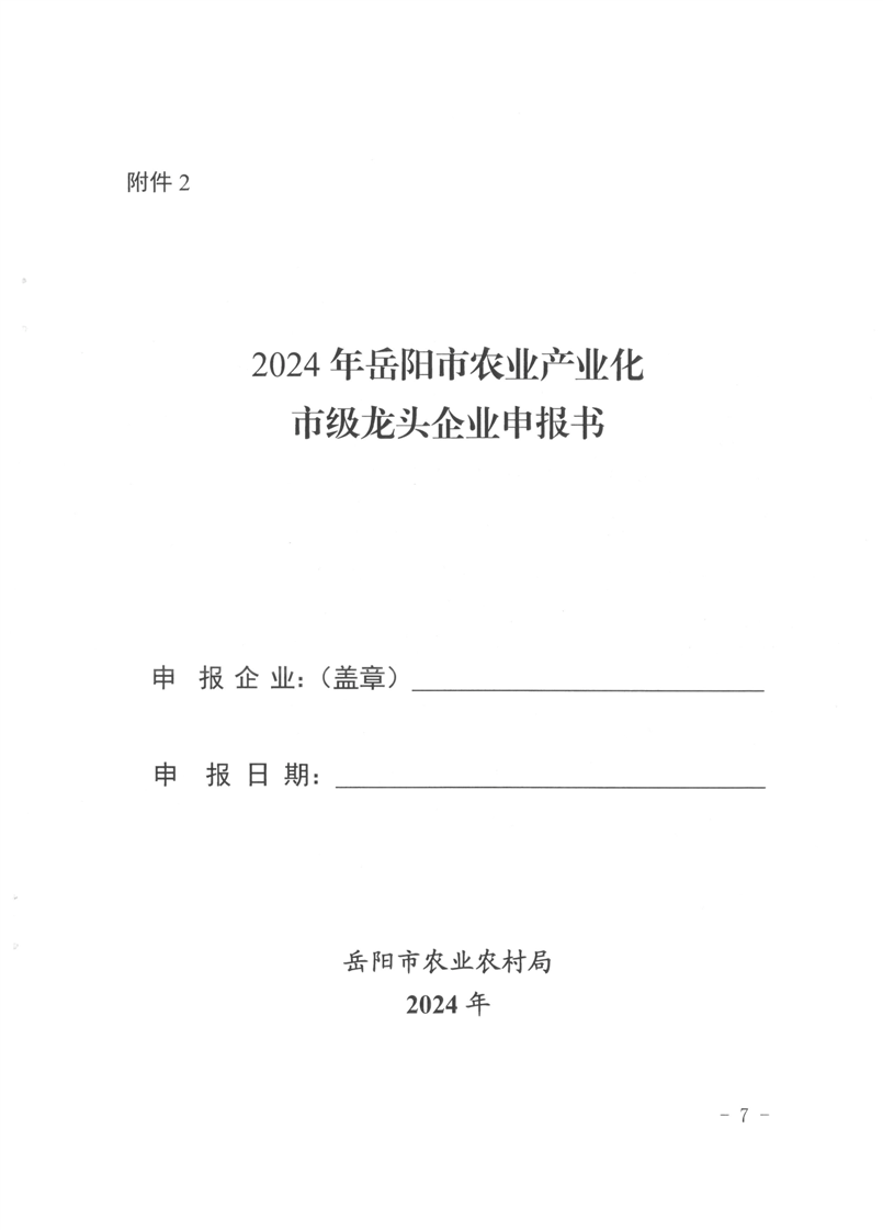 关于开展2024年农业产业化市级龙头企业运行监测与申报工作的通知