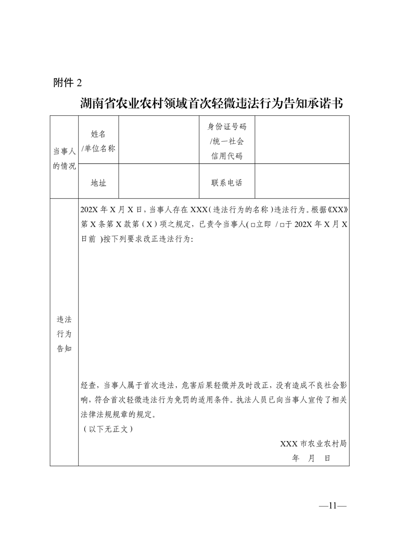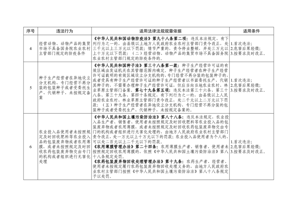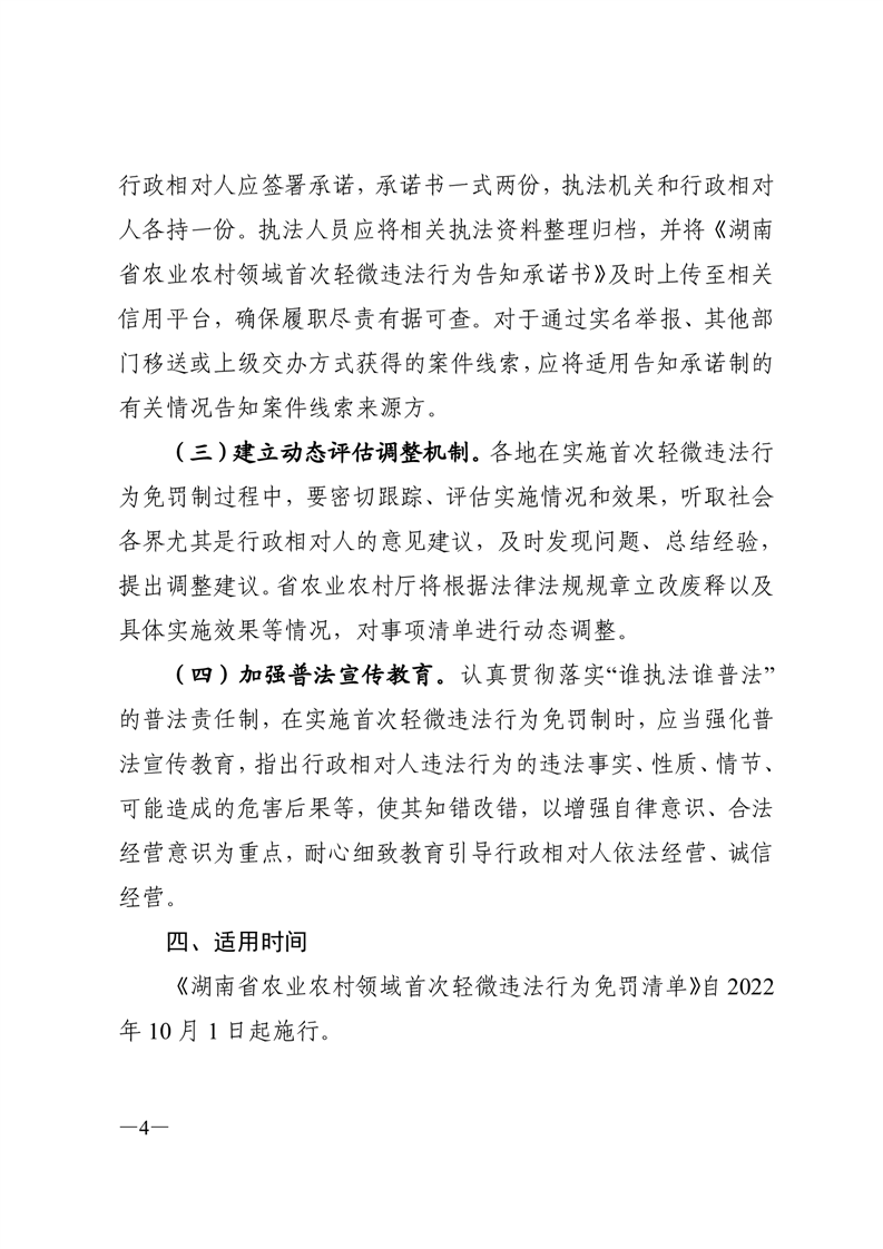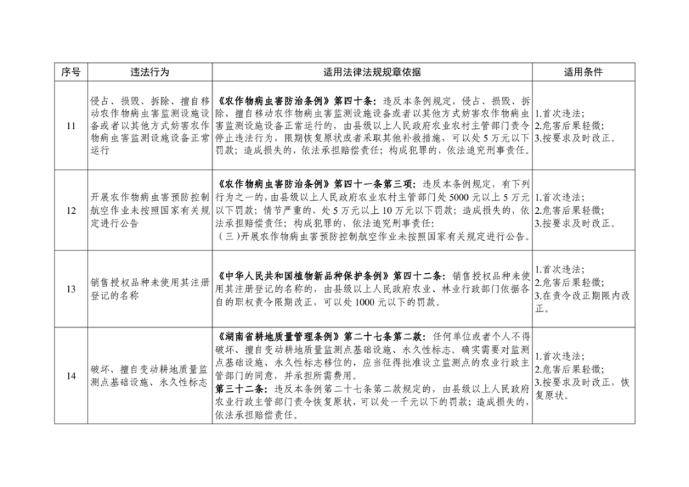 关于转发《湖南省农业农村领域首次轻微违法行为免罚清单的通知》《湖南省农业行政处罚自由裁量权适用规定》和《湖南省农业行政处罚自由裁量基准》的通知