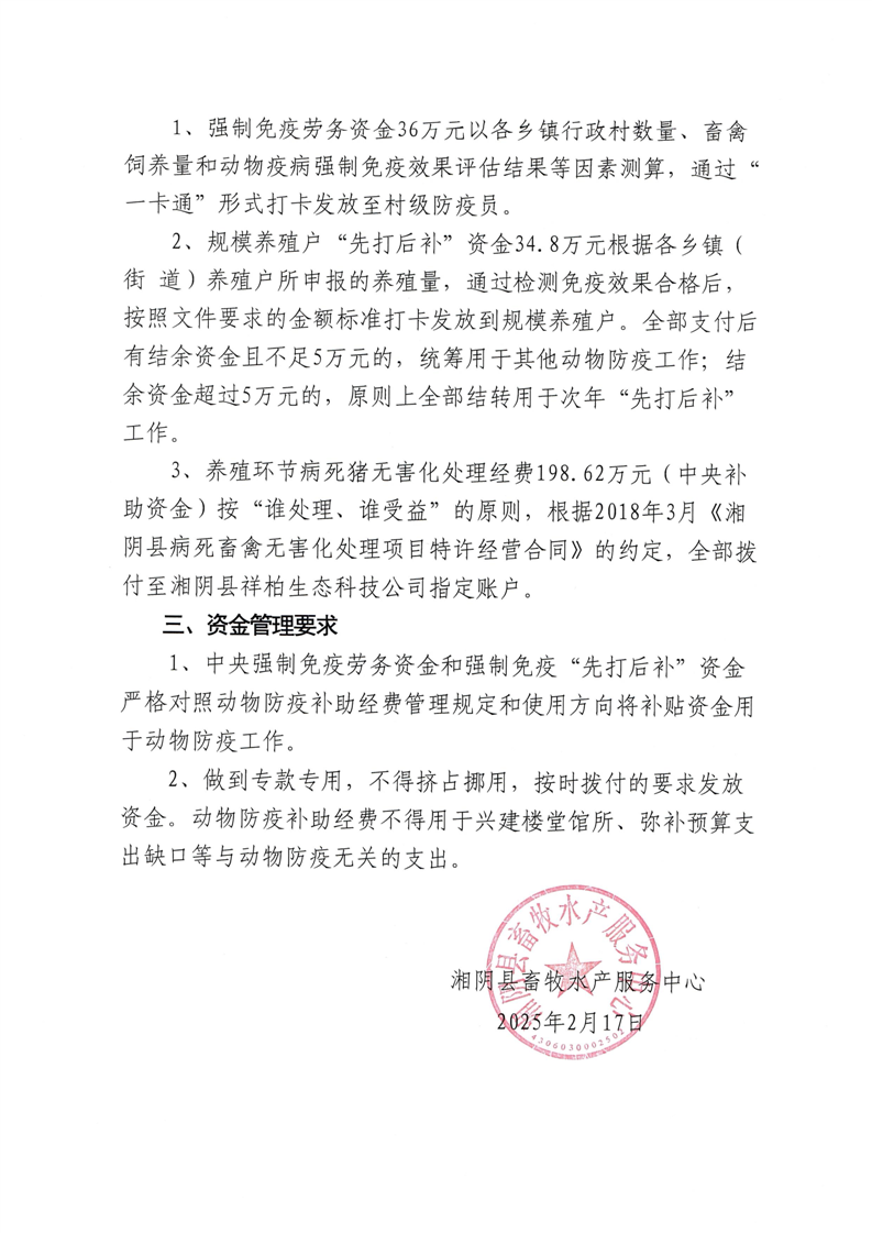 2025年中央农业防灾减灾和水利救灾(动物防疫补助)经费使用方案