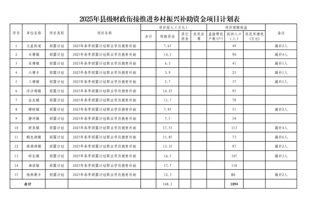 湘阴县雨露计划职业学历教育补助学生发放表公示 (2025年春季) |