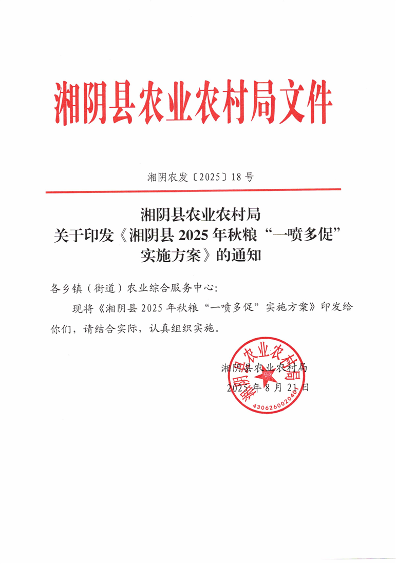 附件:湘阴县2025年秋粮“一喷多促”实施方案