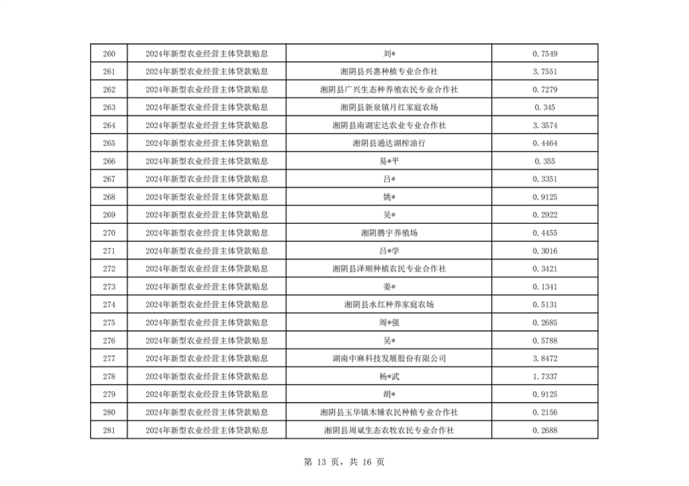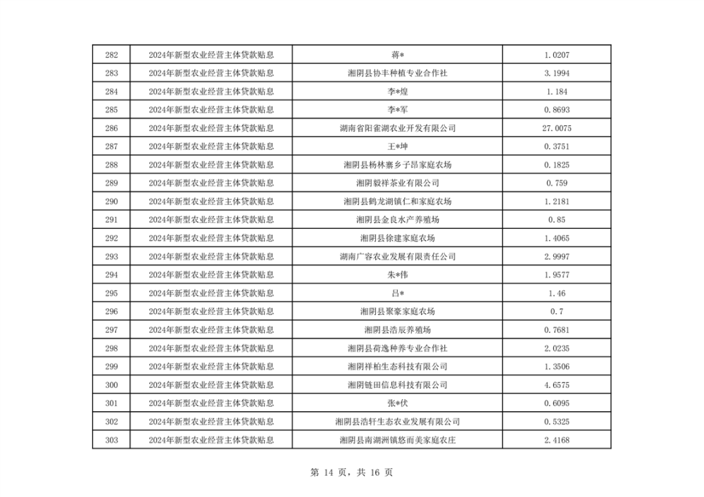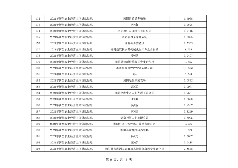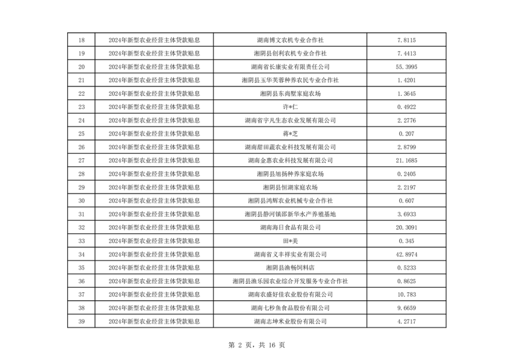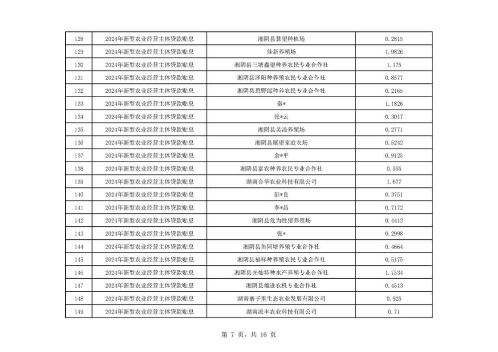 关于湘阴县2024年度新型农业经营主体贷款贴息资金安排的公示