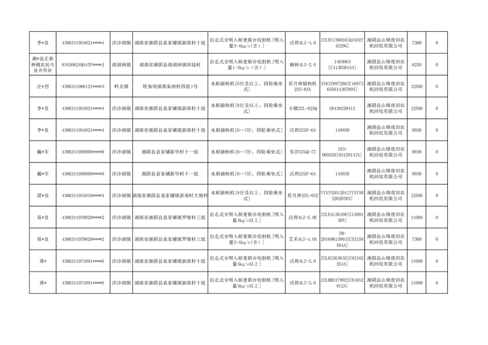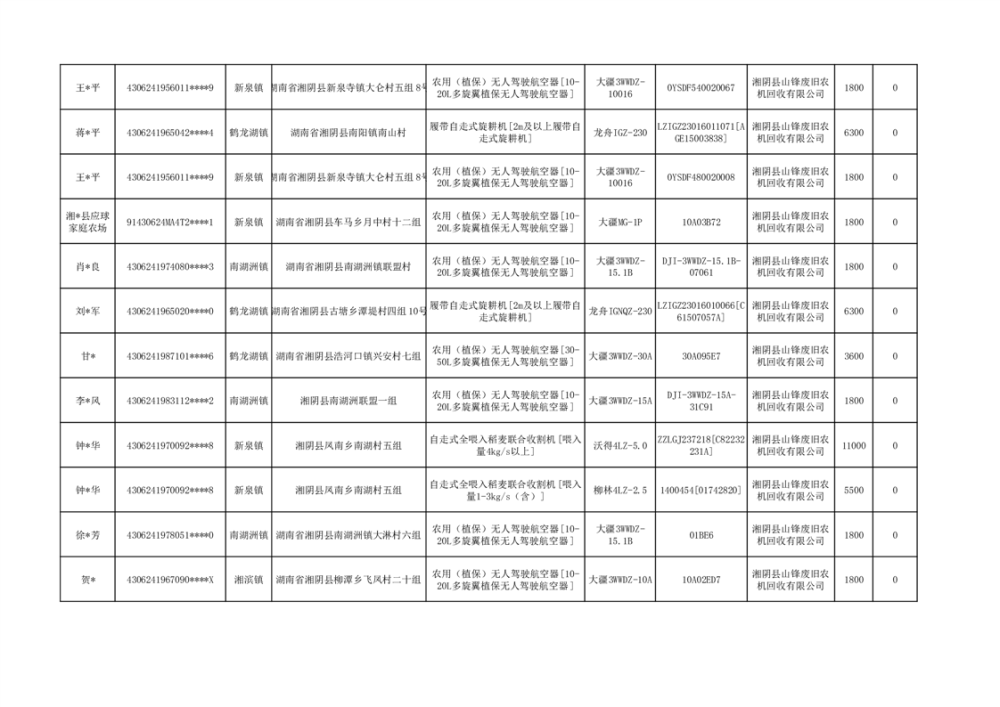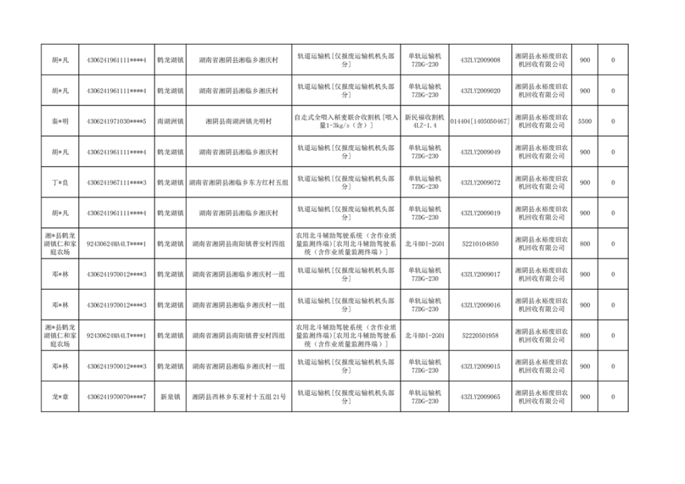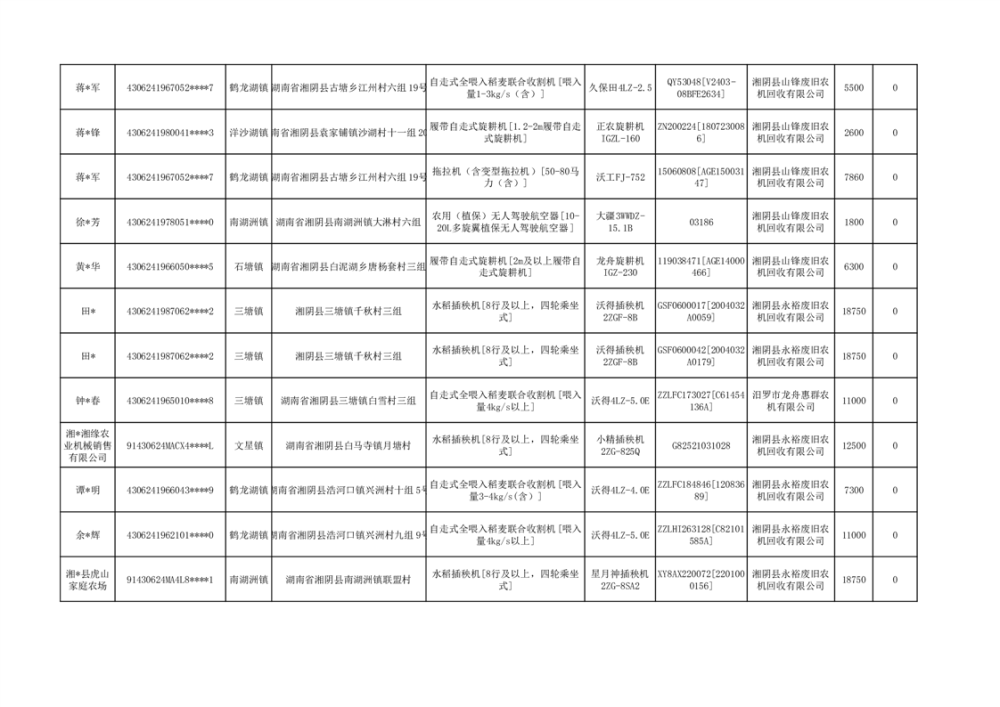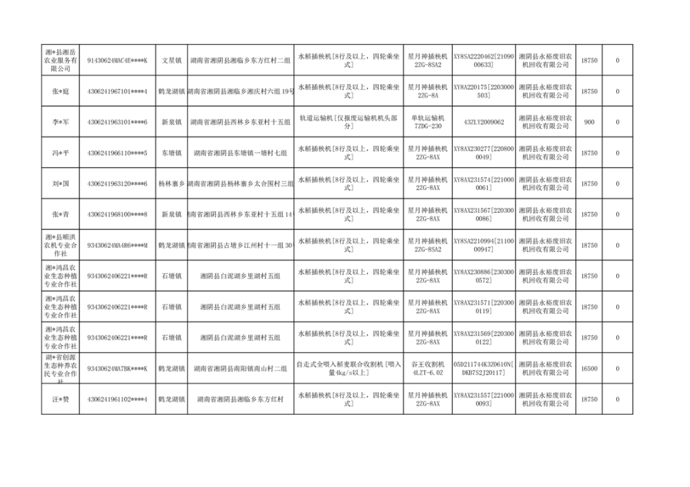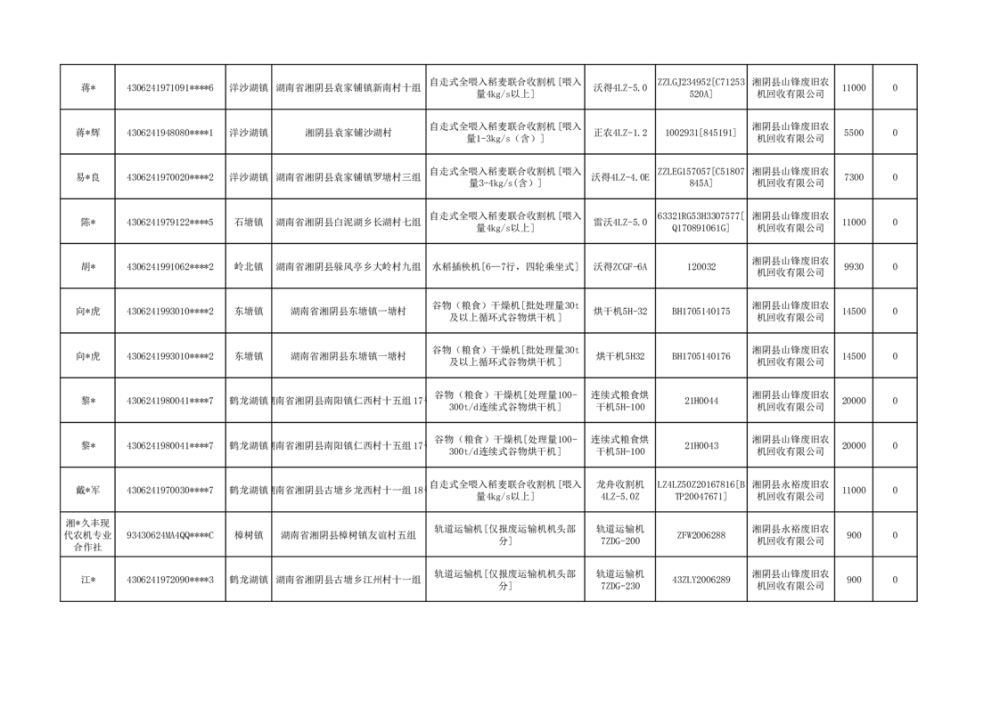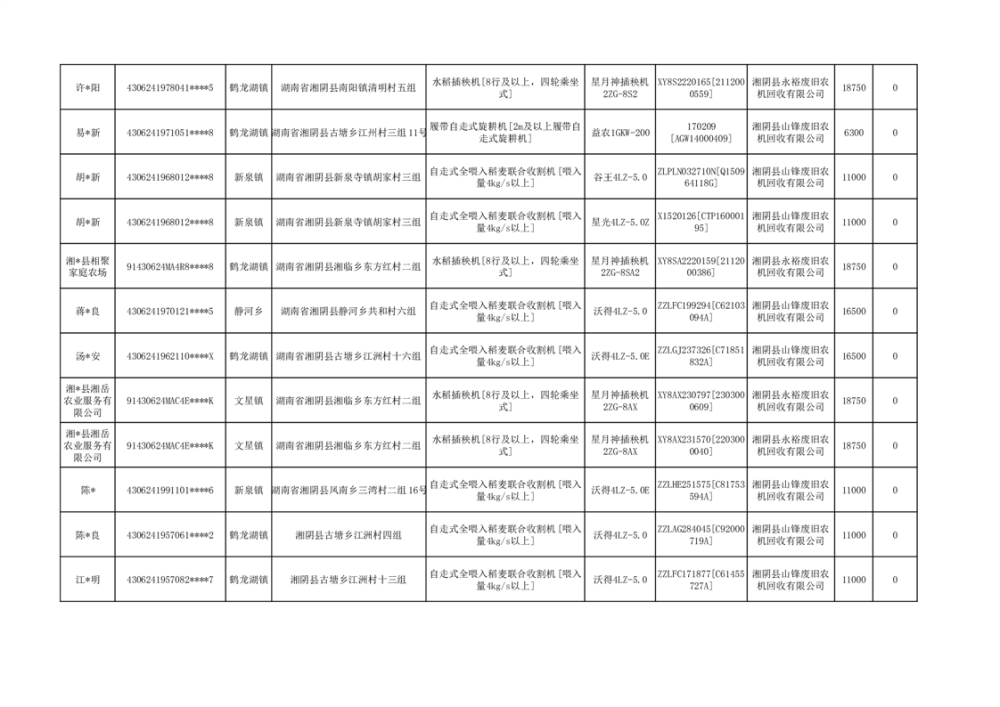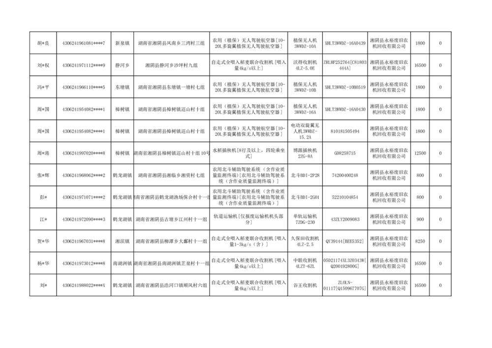 2024年湘阴县农机报废补贴资金公示(第四批)