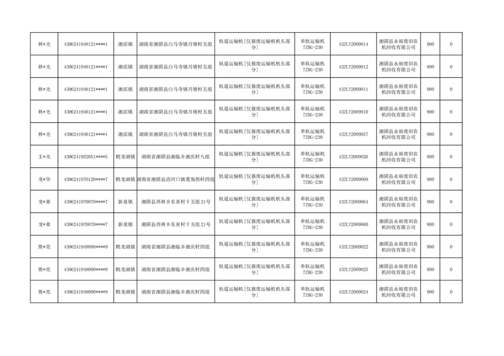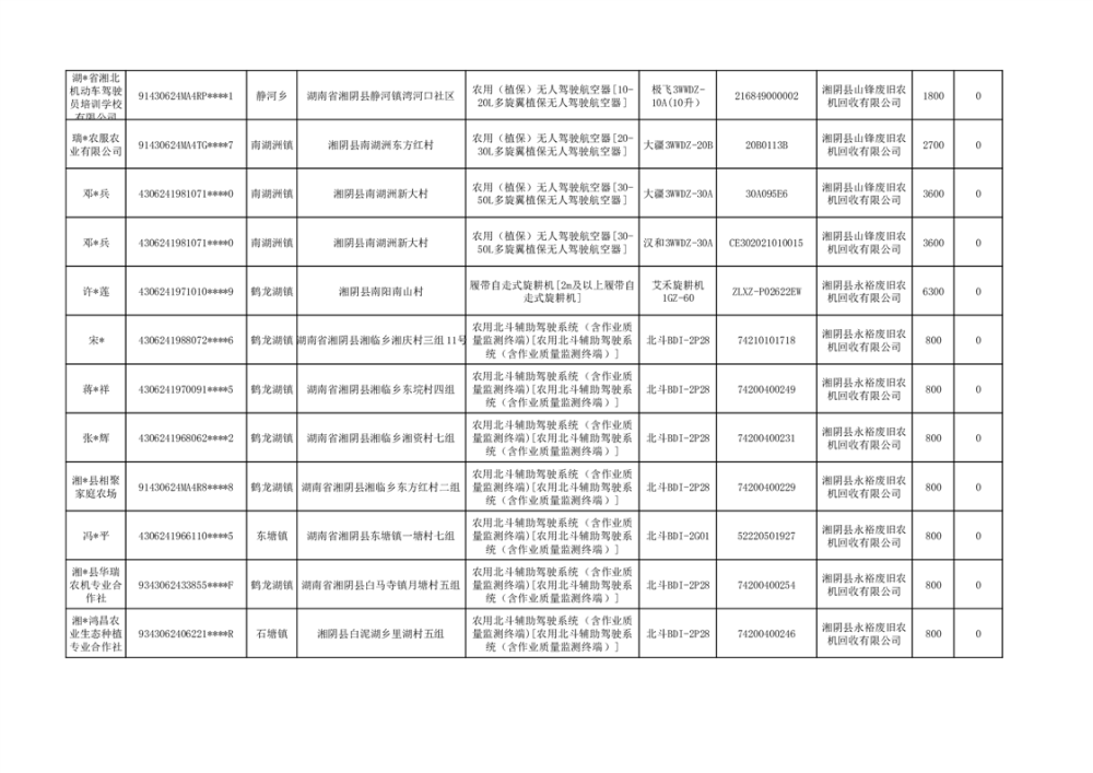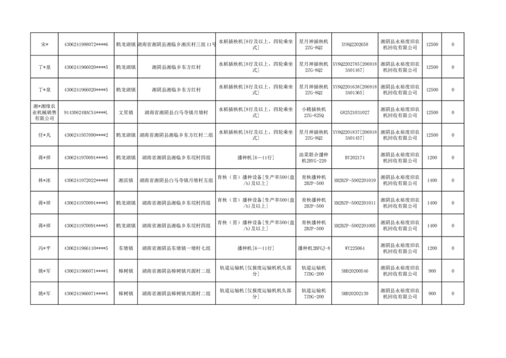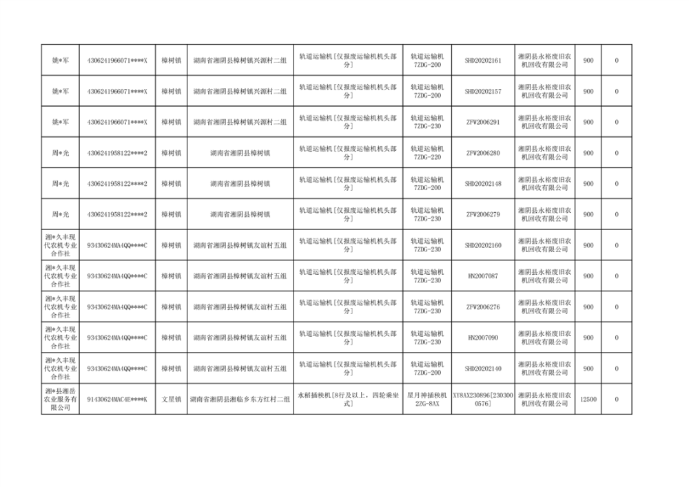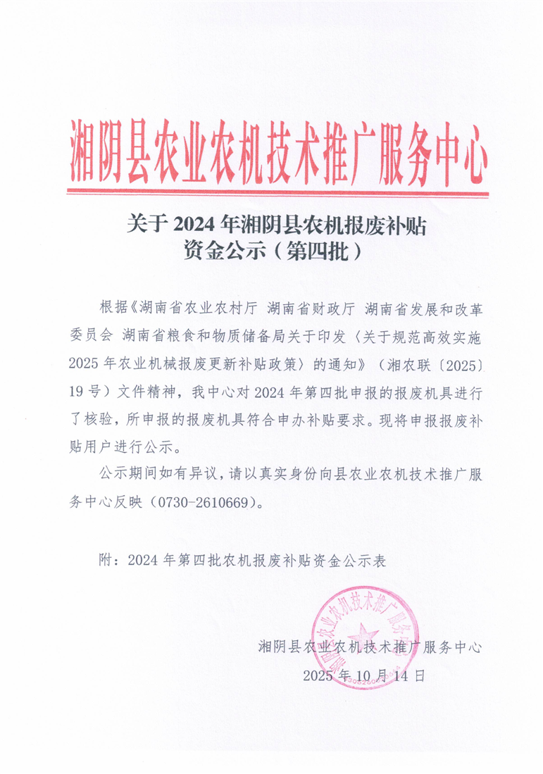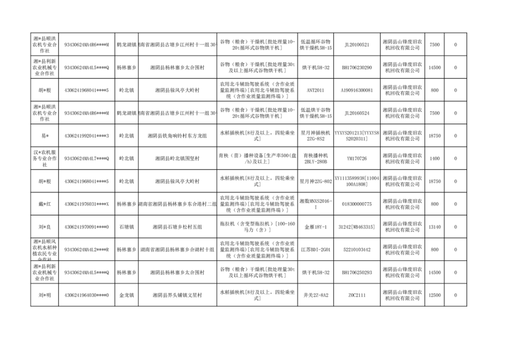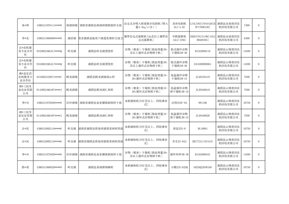 2024年湘阴县农机报废补贴资金公示(第四批)