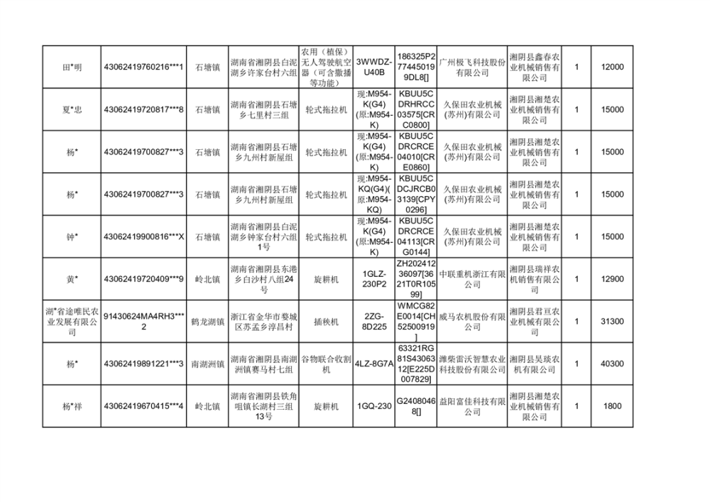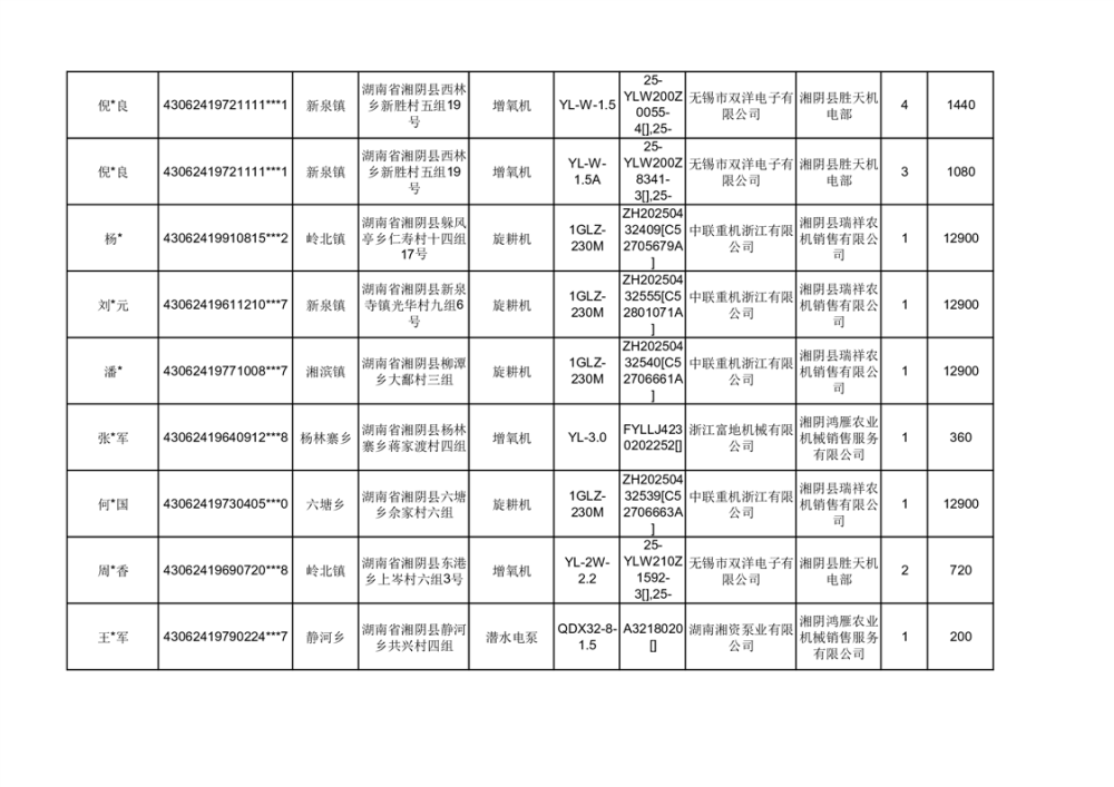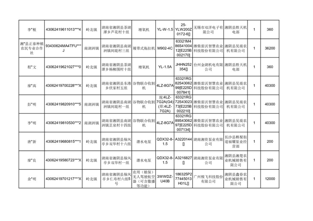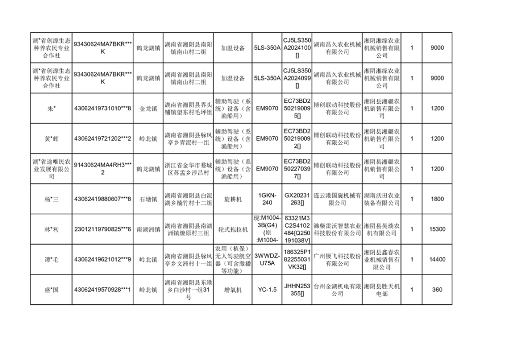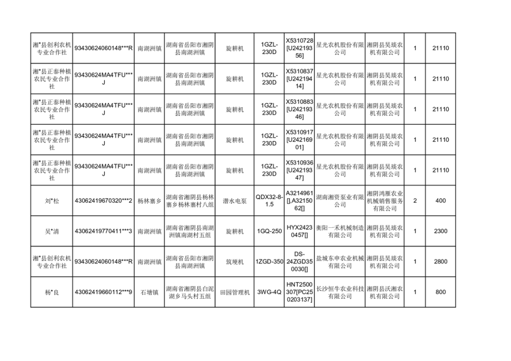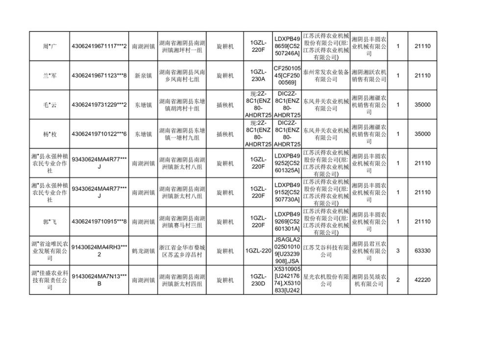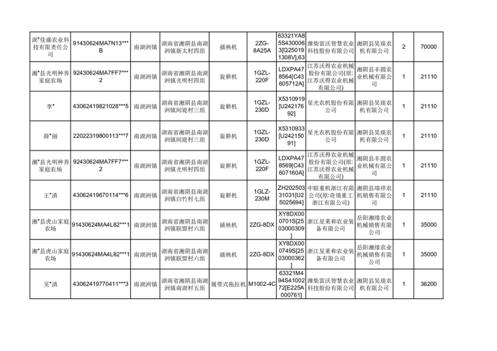 2025年湘阴县农机购置补贴资金公示(第二批)