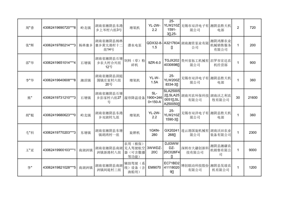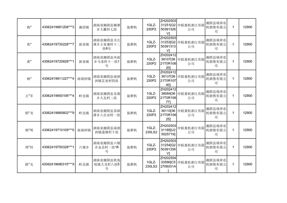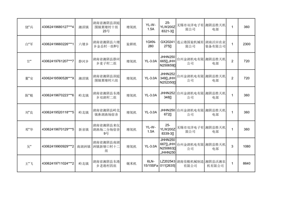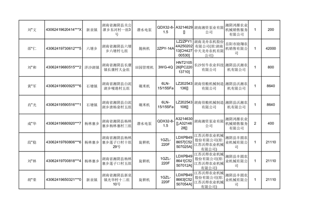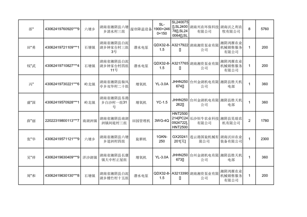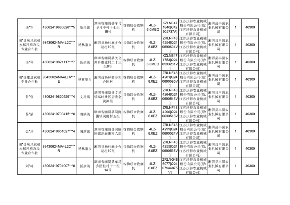 2025年湘阴县农机购置补贴资金公示(第二批)