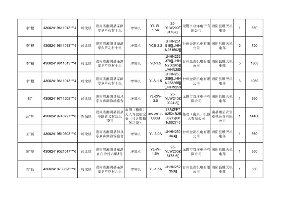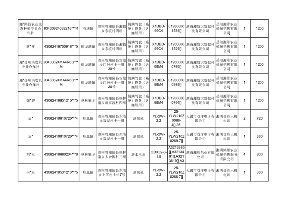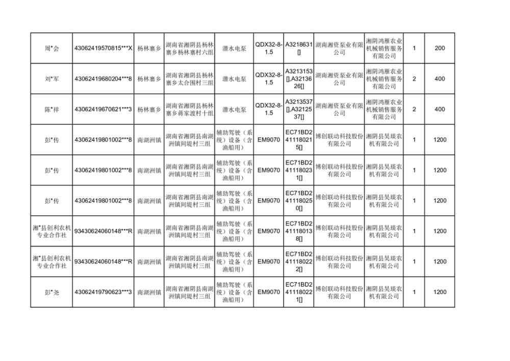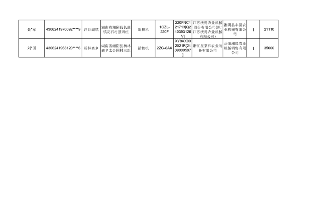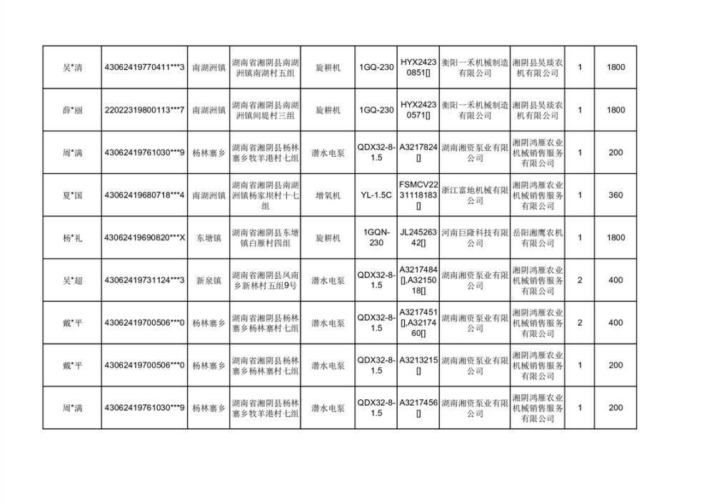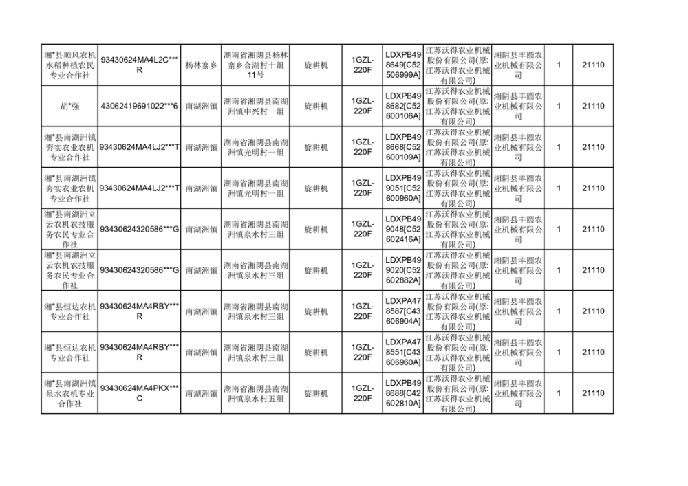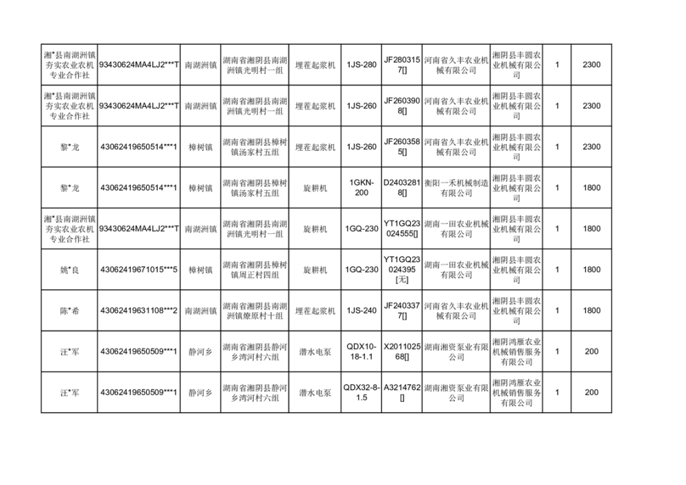 2025年湘阴县农机购置补贴资金公示(第二批)