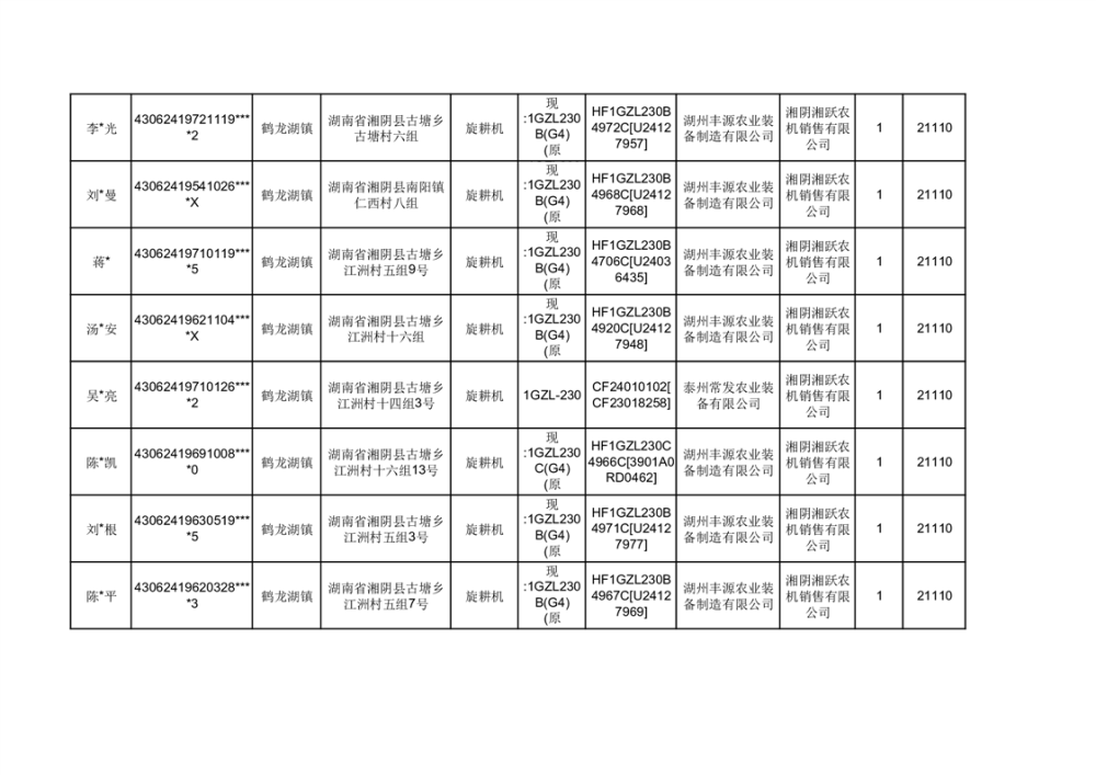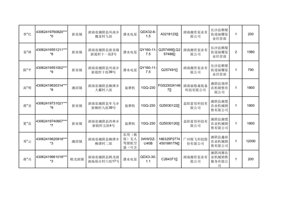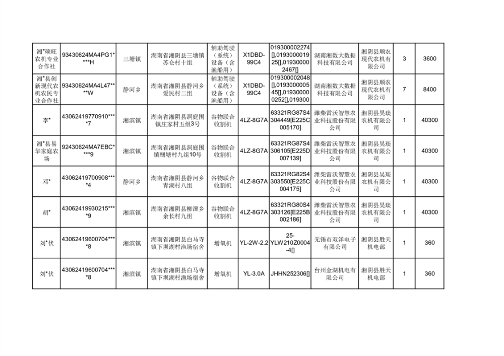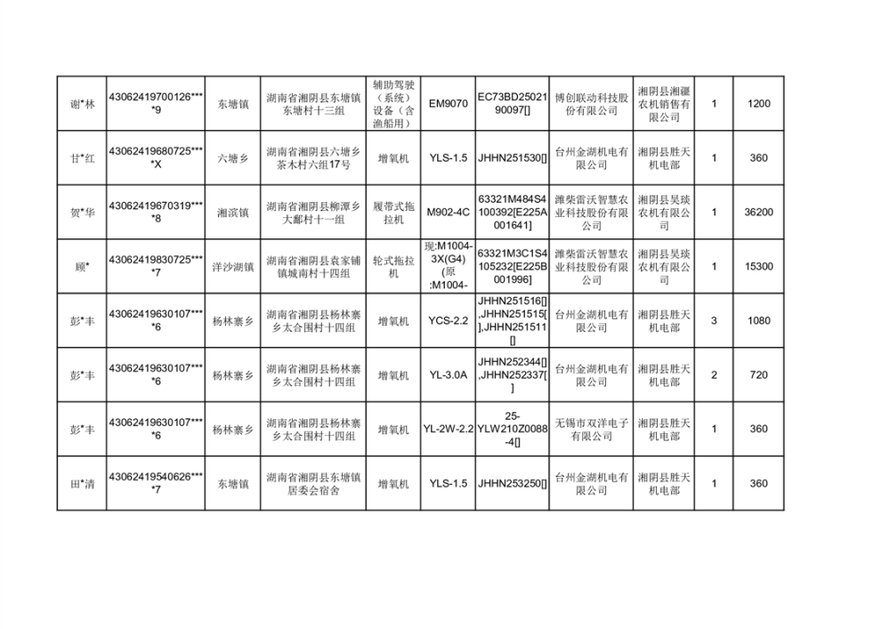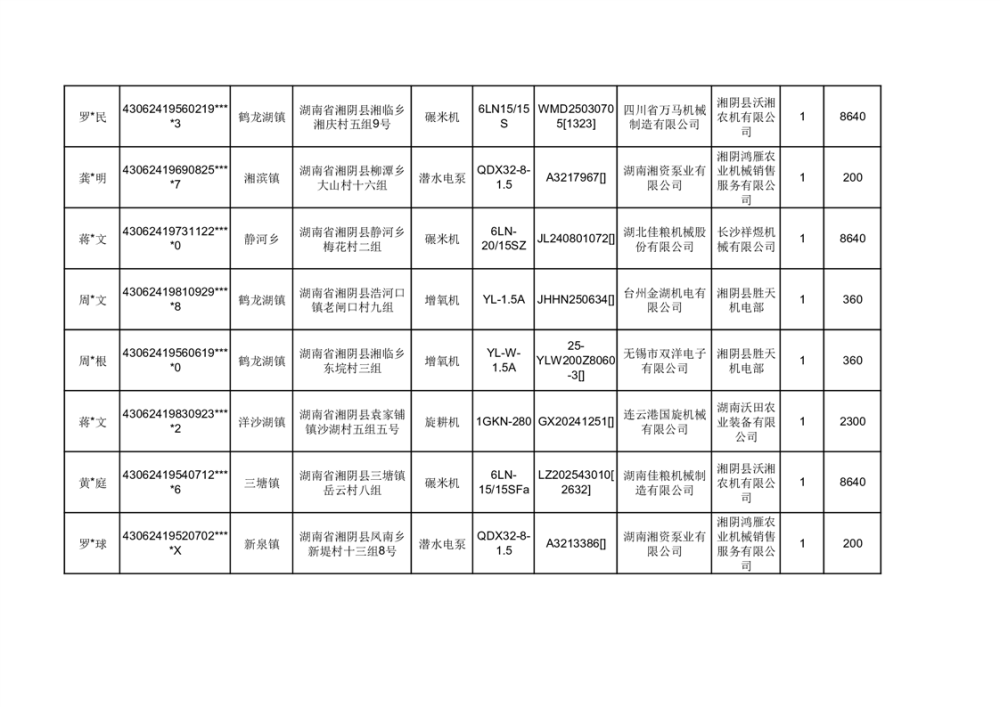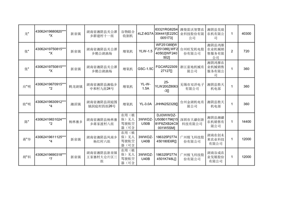 关于2025年湘阴县农机购置补贴资金公示(第三批)
