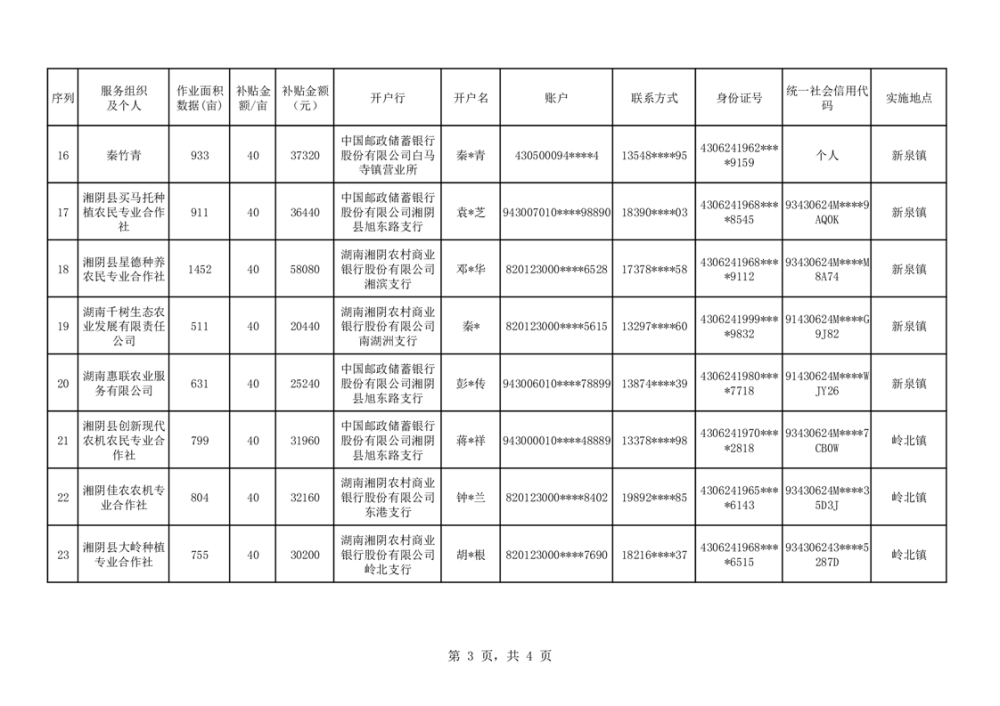 湘阴县2024—2025年受污染耕地安全利用石灰撒施机具作业补贴资金公示