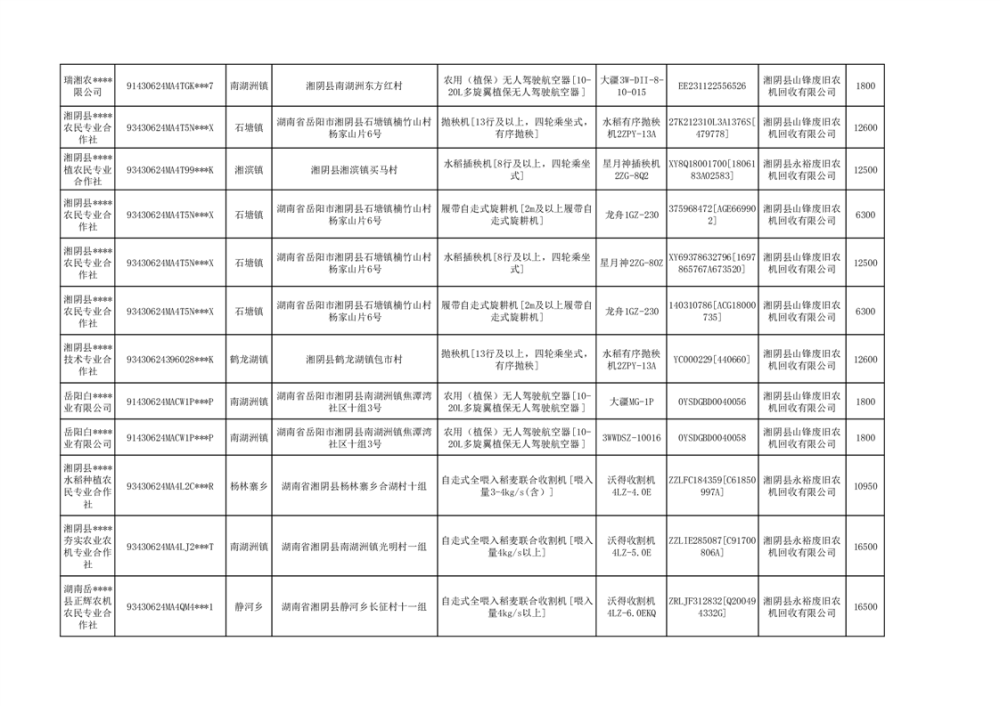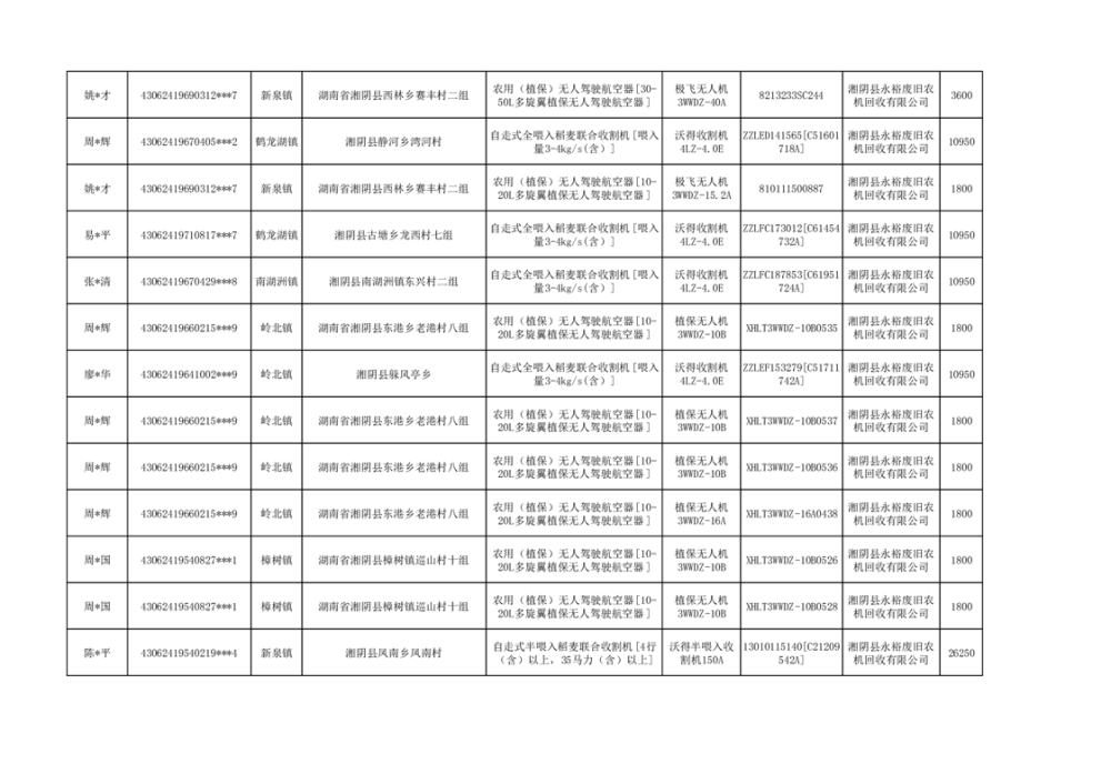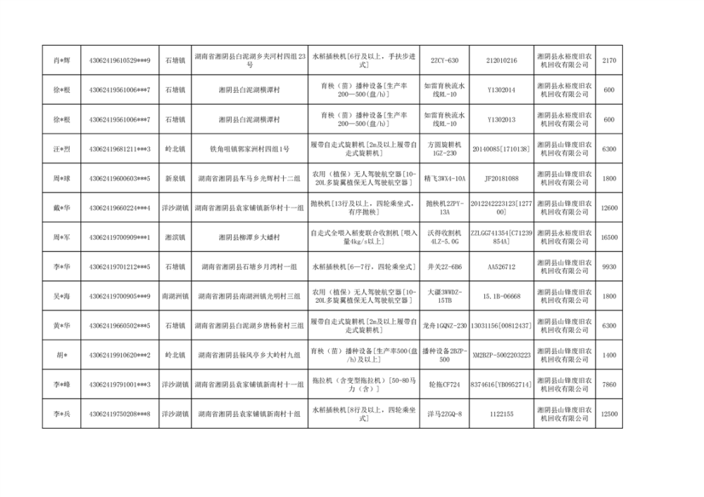 关于2024年湘阴县农机报废补贴资金公示(第五批)