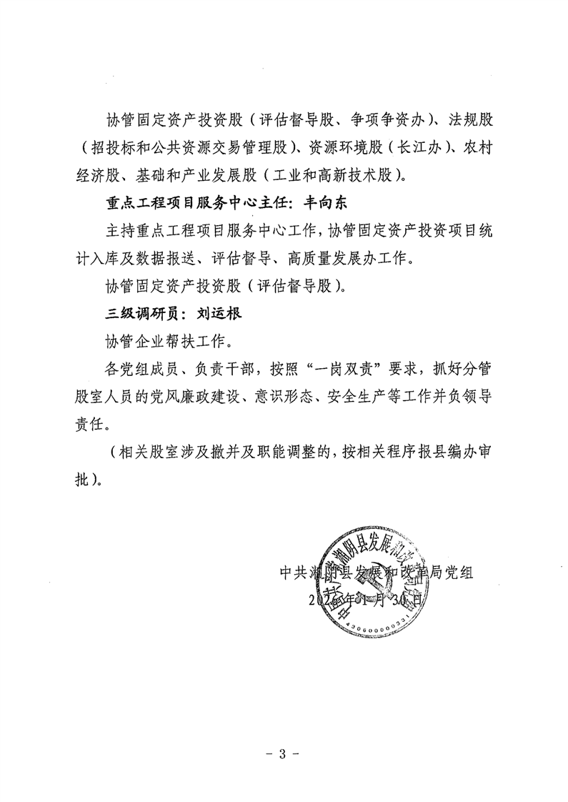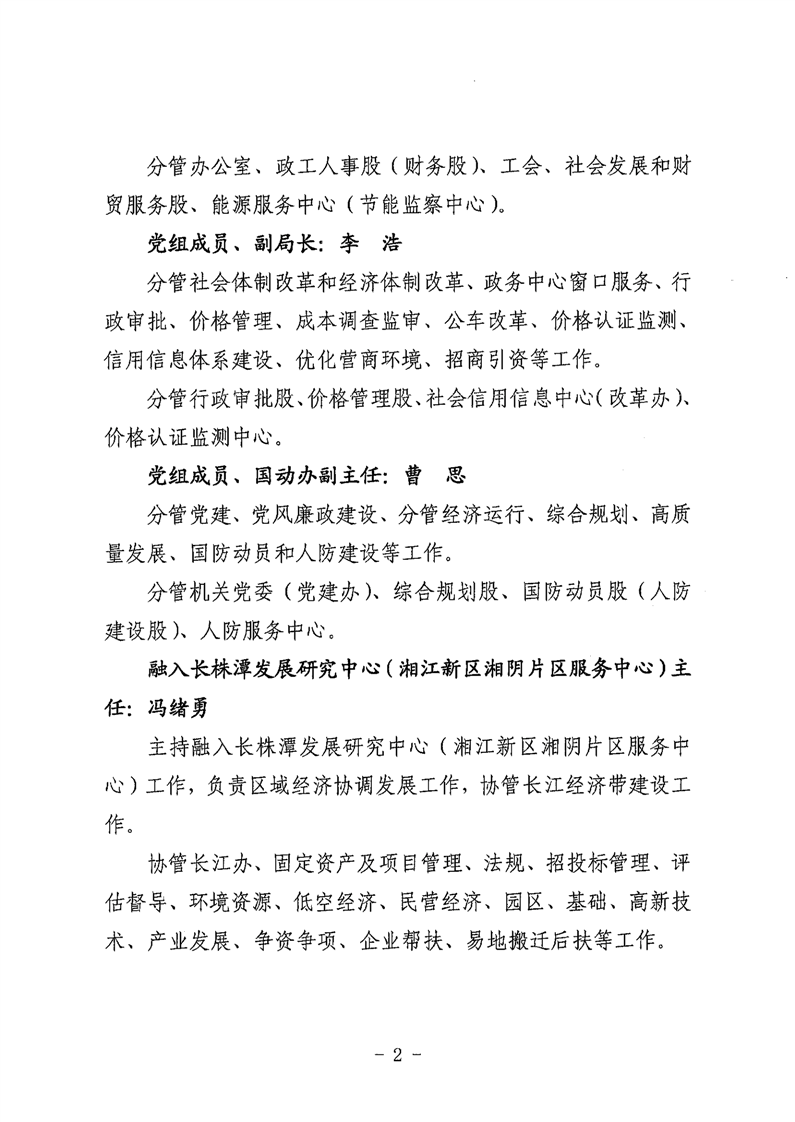 湘阴发改党组〔2026〕1号 关于调整局党组班子成员及负责干部分工的通知