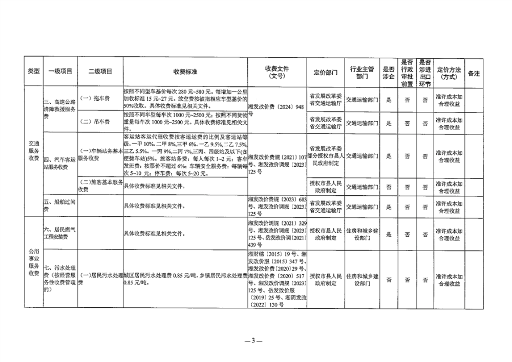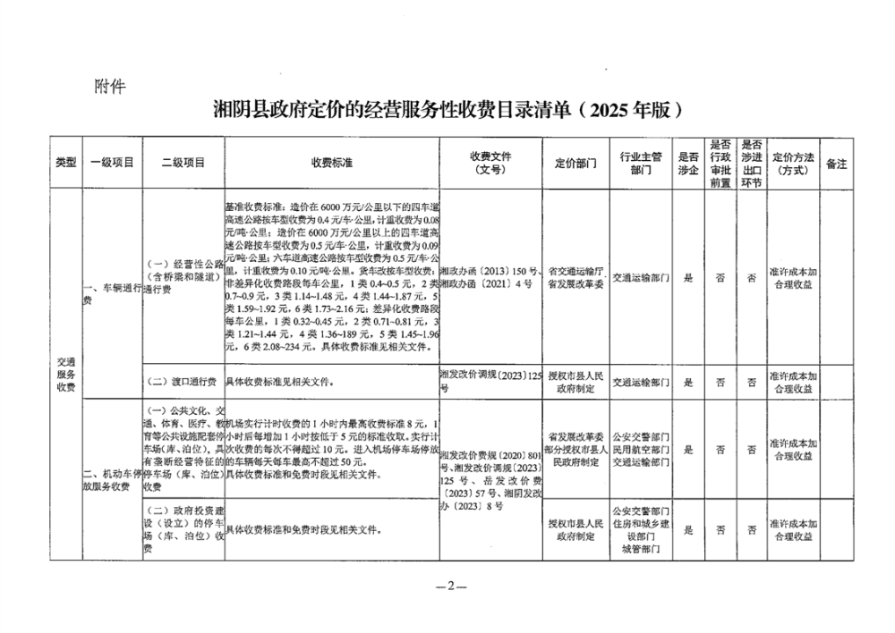 关于公布2025版湘阴县政府定价的经营服务性收费目录清单的公告