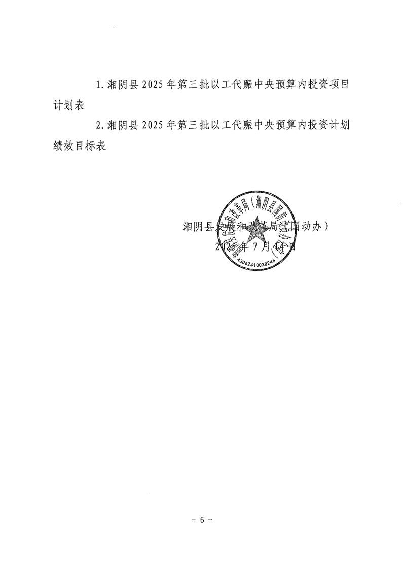 关于下达湘阴县2025年第三批以工代赈中央预算内投资计划的通知(湘阴发改办〔2025〕22号 )