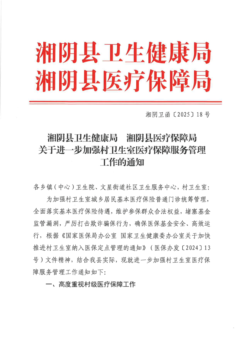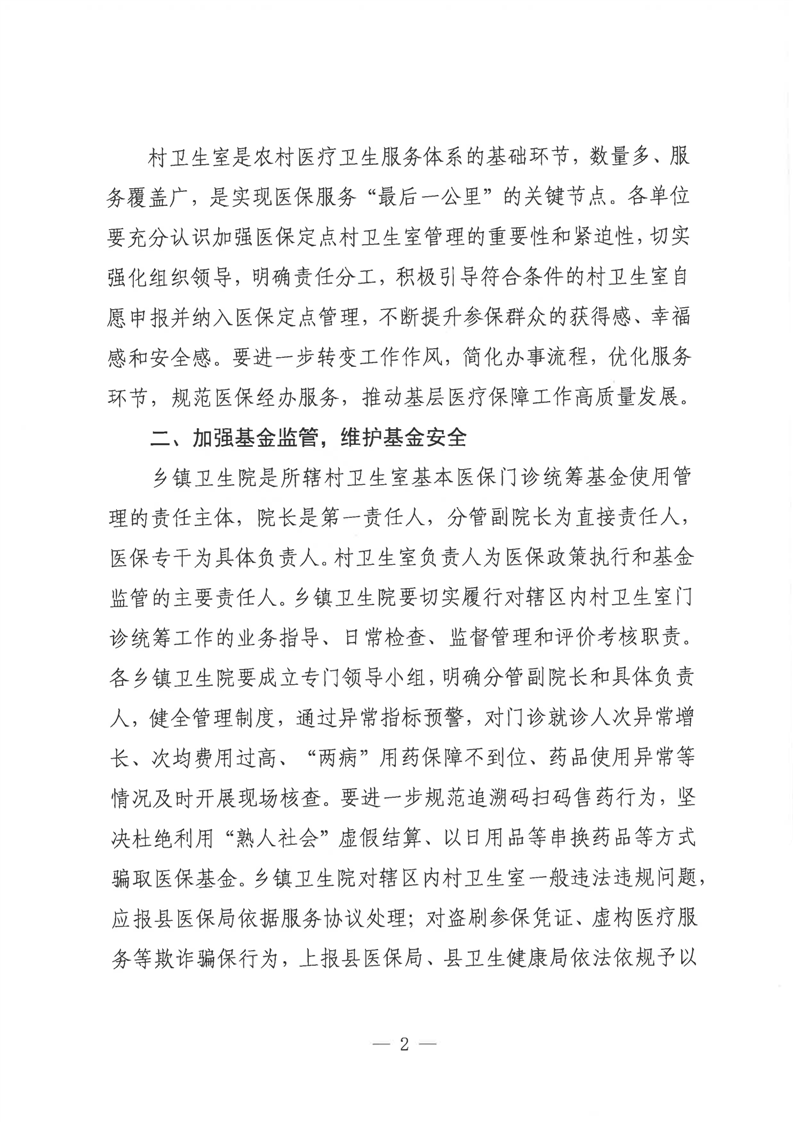 关于进一步加强村卫生室医疗保障服务管理工作的通知