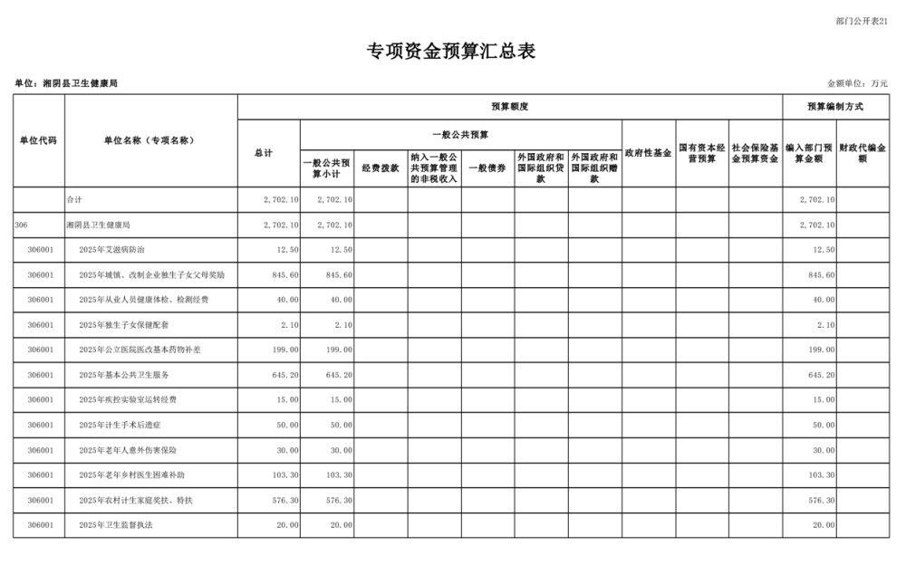 2025年-湘阴县卫生健康局-部门预算