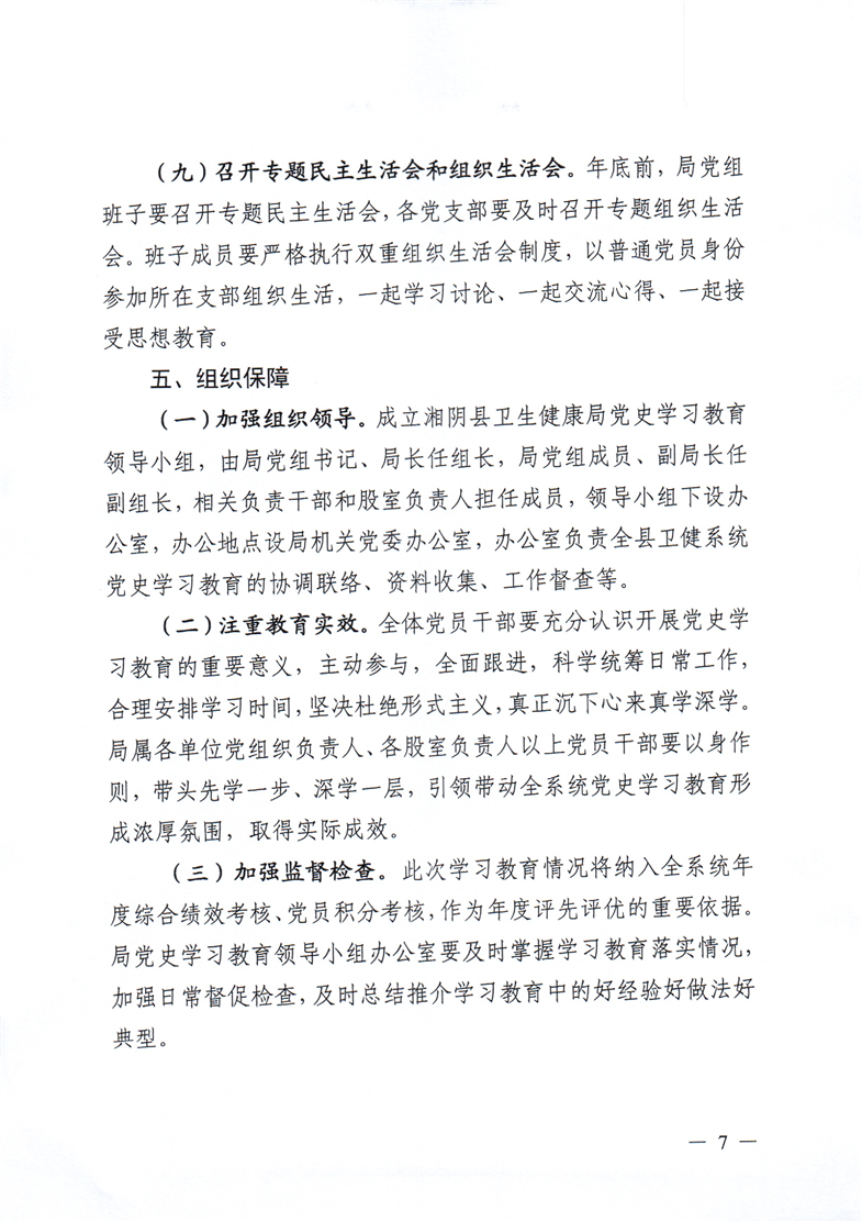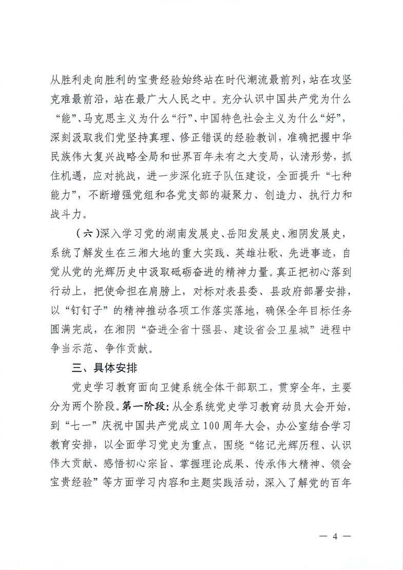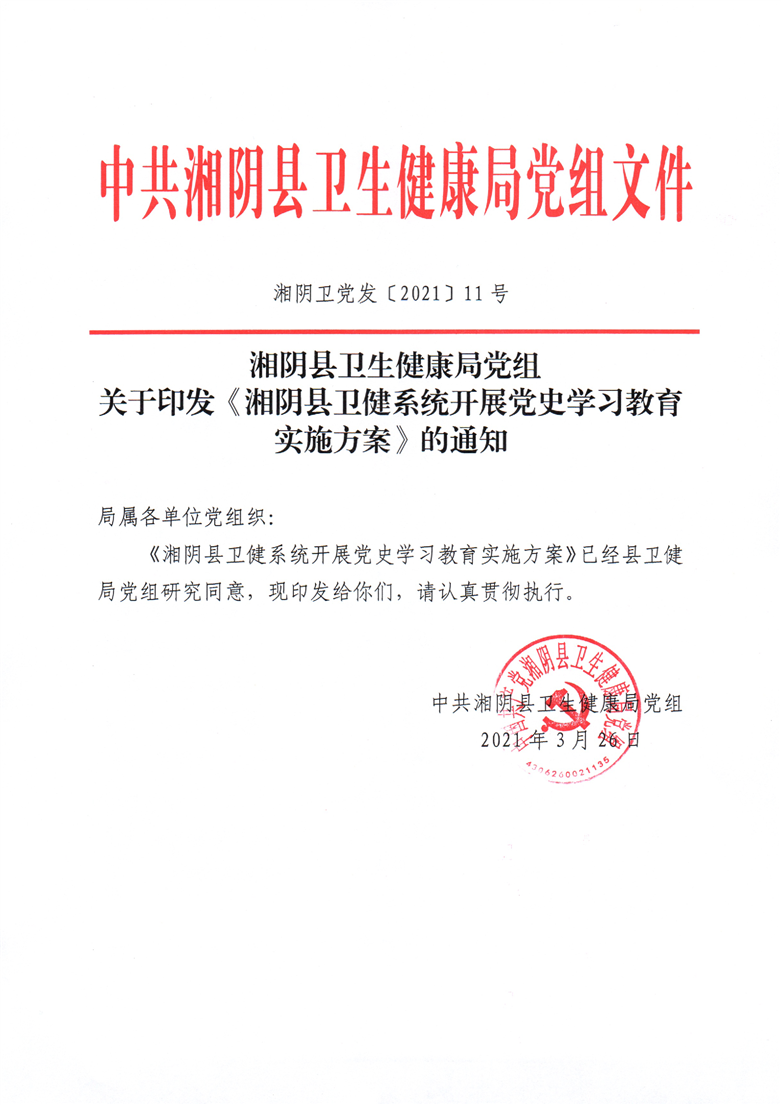 湘阴县卫健系统开展党史学习教育实施方案的通知