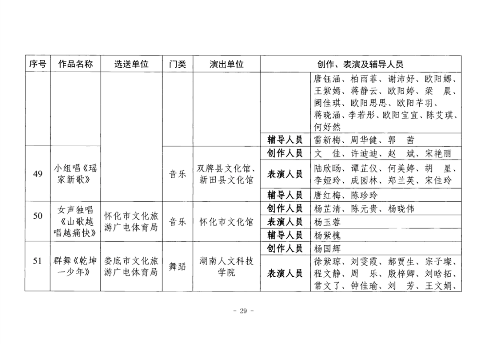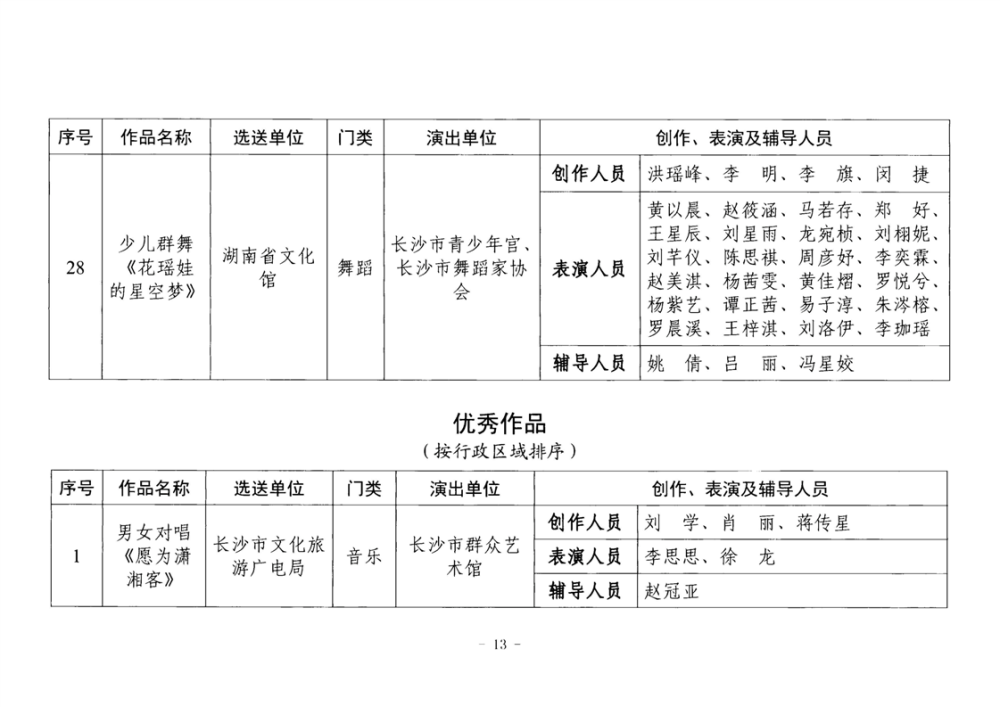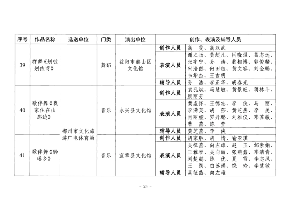 湖南省文化和旅游厅关于公布2025年全省“欢乐潇湘”新创群众文艺作品获奖情况的通知