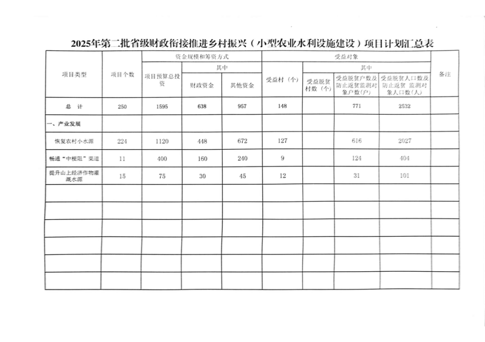 关于下达2025年第二批省级财政衔接推进乡村振兴补助资金(小型农业水利设施建设)项目计划的通知