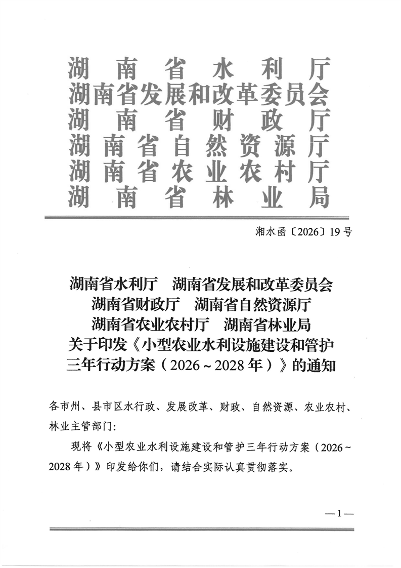 关于印发《小型农业水利设施建设和管护三年行动方案(2026-2028年)》的通知