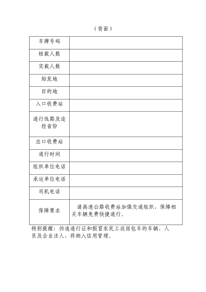 关于全力做好农民工返岗运输服务保障工作的函