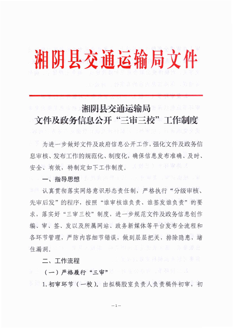 湘阴县交通运输局文件及政务信息公开“三审三校”工作制度