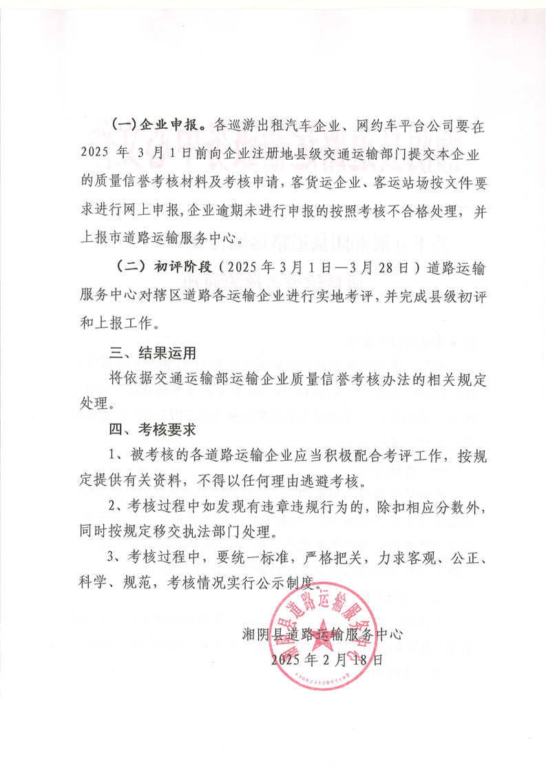 关于开展湘阴县道路运输行业2024年度质量信誉考核的通知