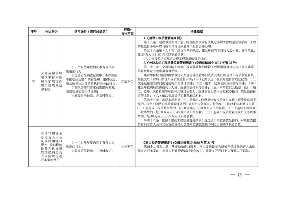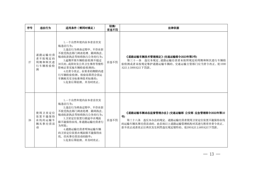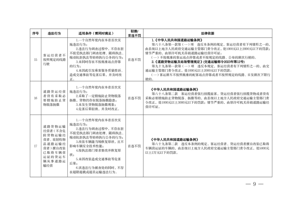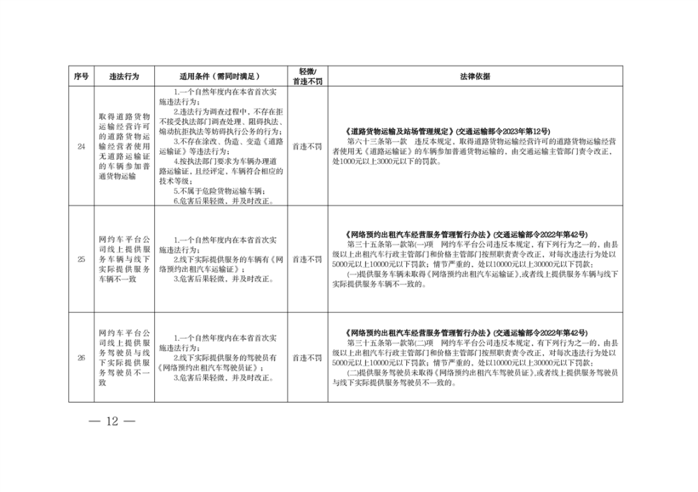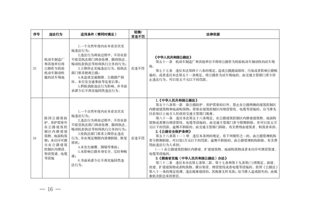 关于印发《湖南省交通运输领域“轻微不罚”“首违不罚”清单(2025年版)》的通知