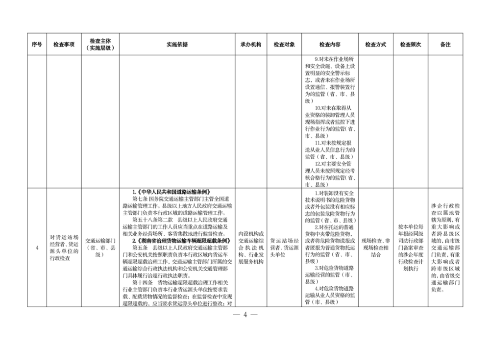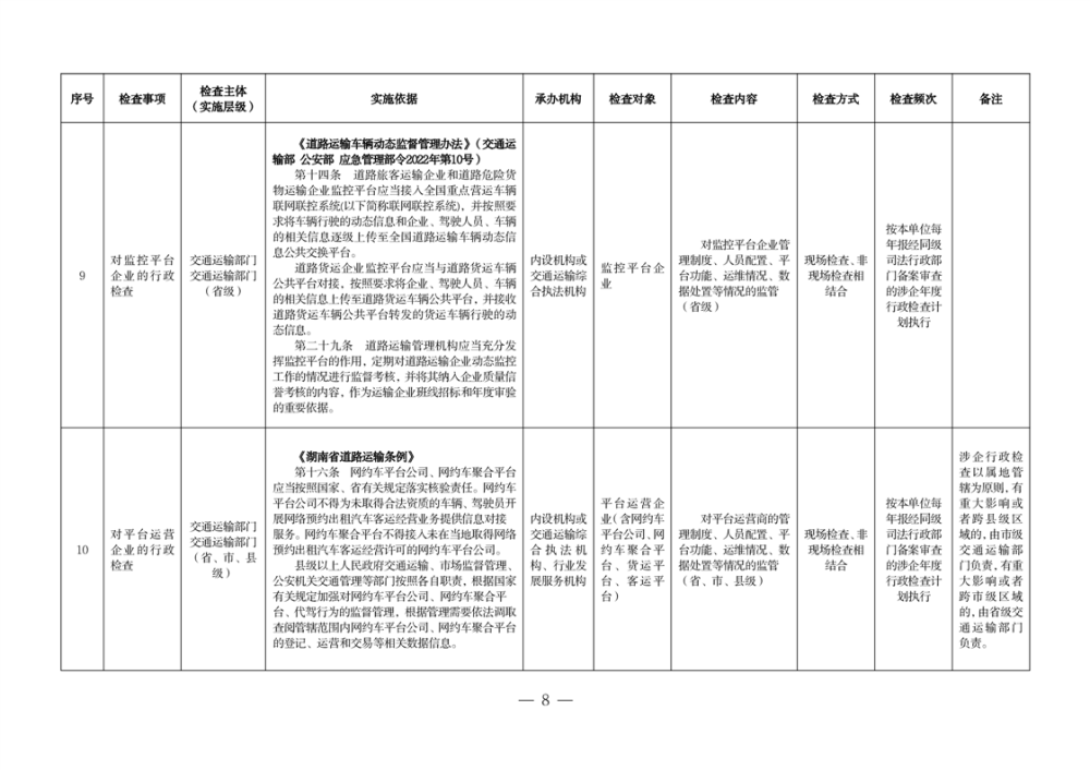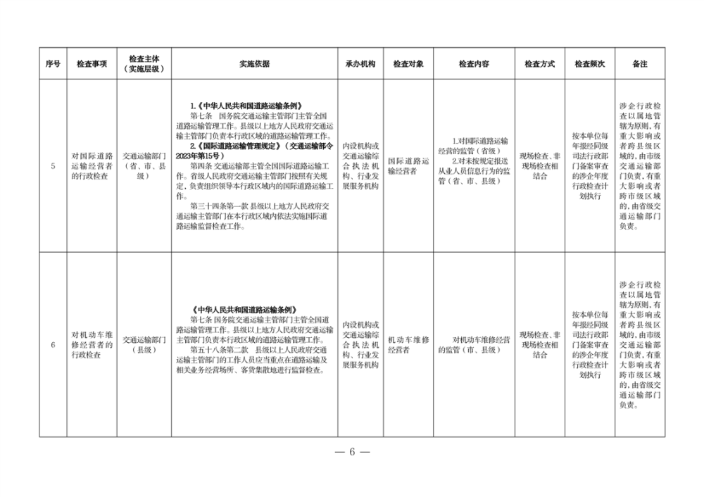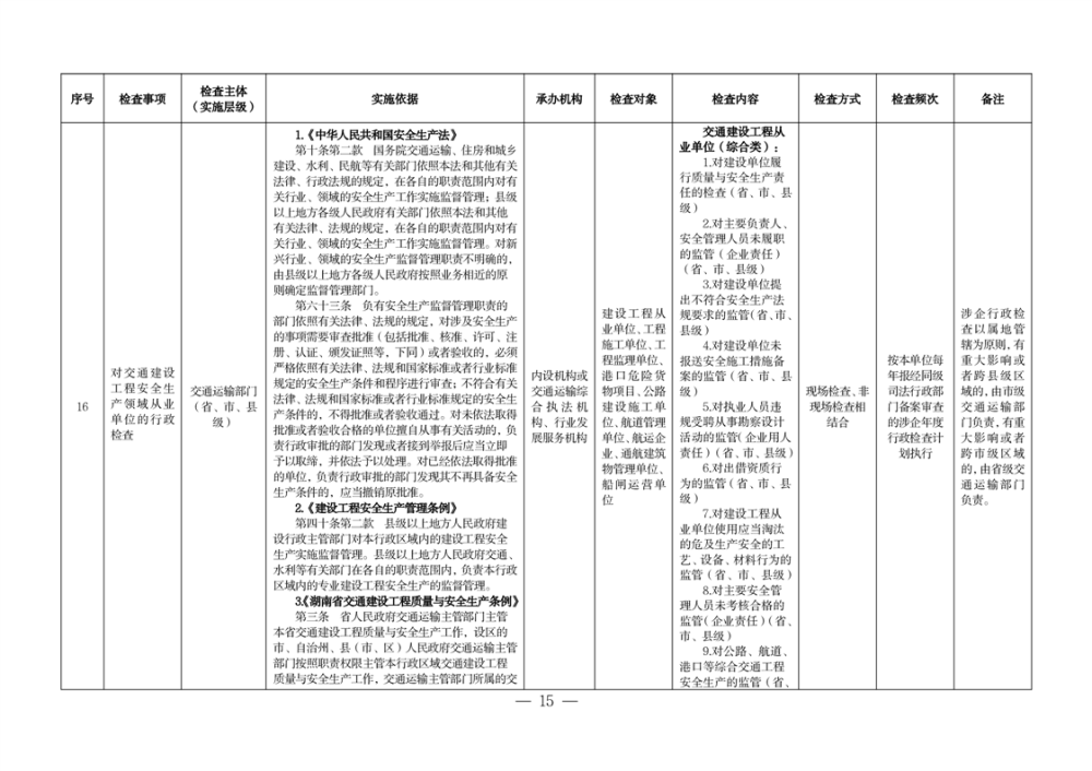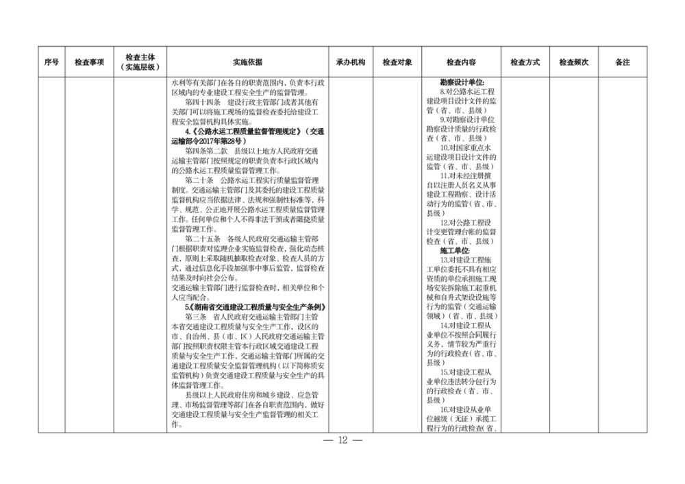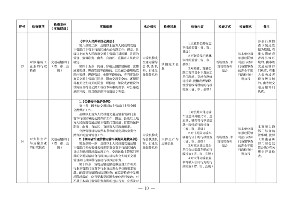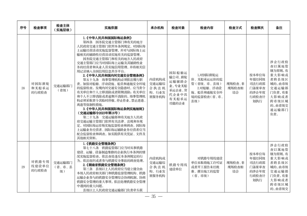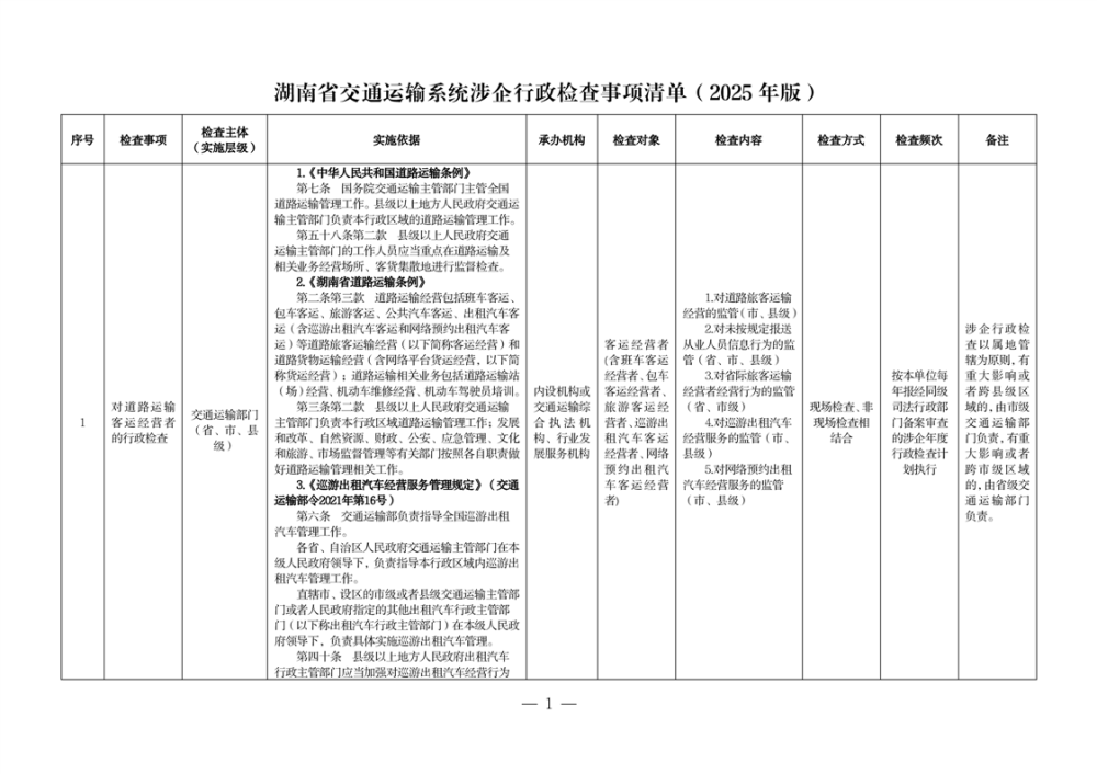 湖南省交通运输系统涉企行政检查事项清单(2025年版)