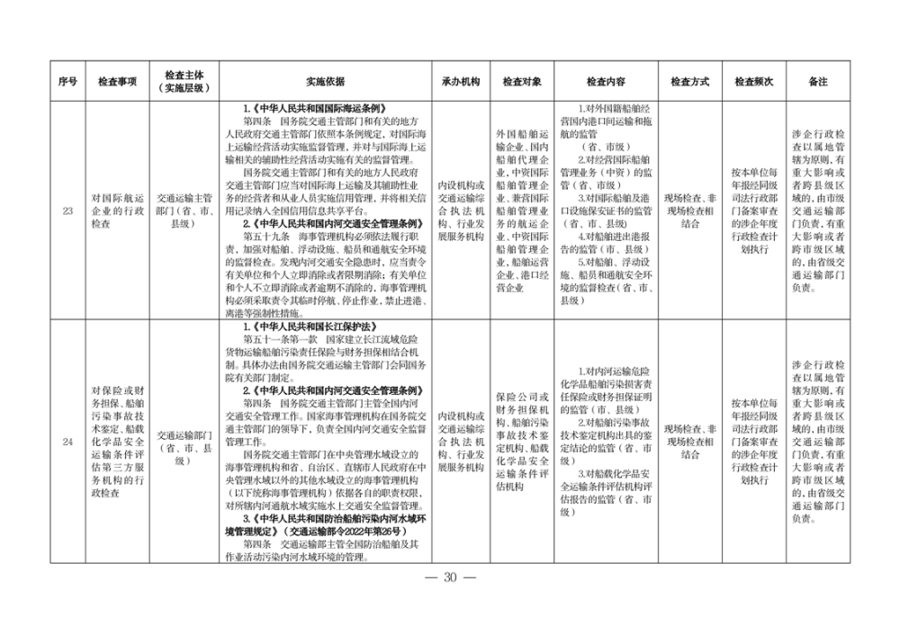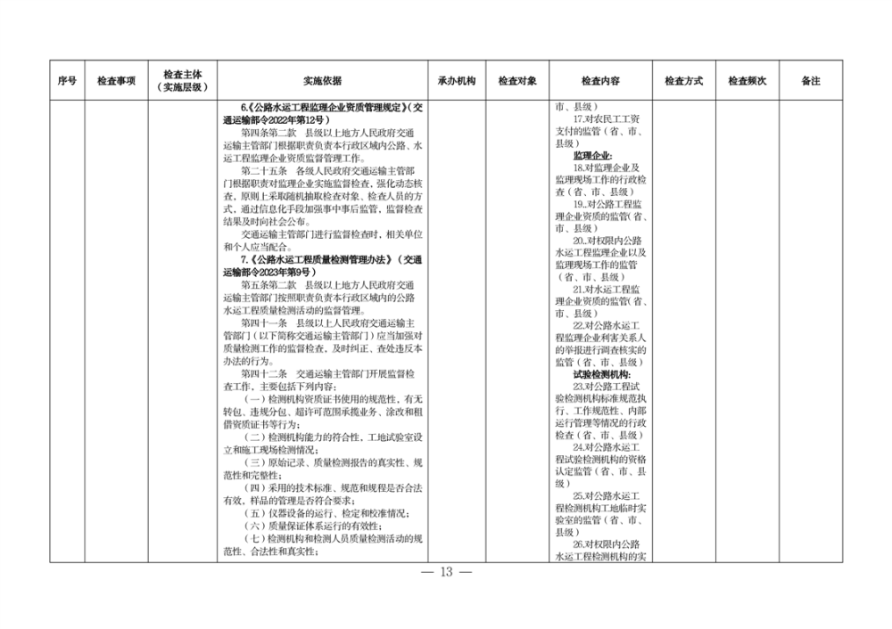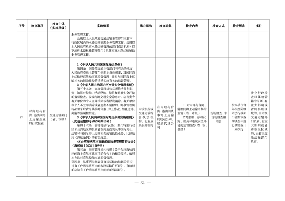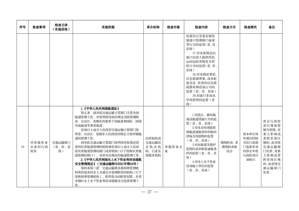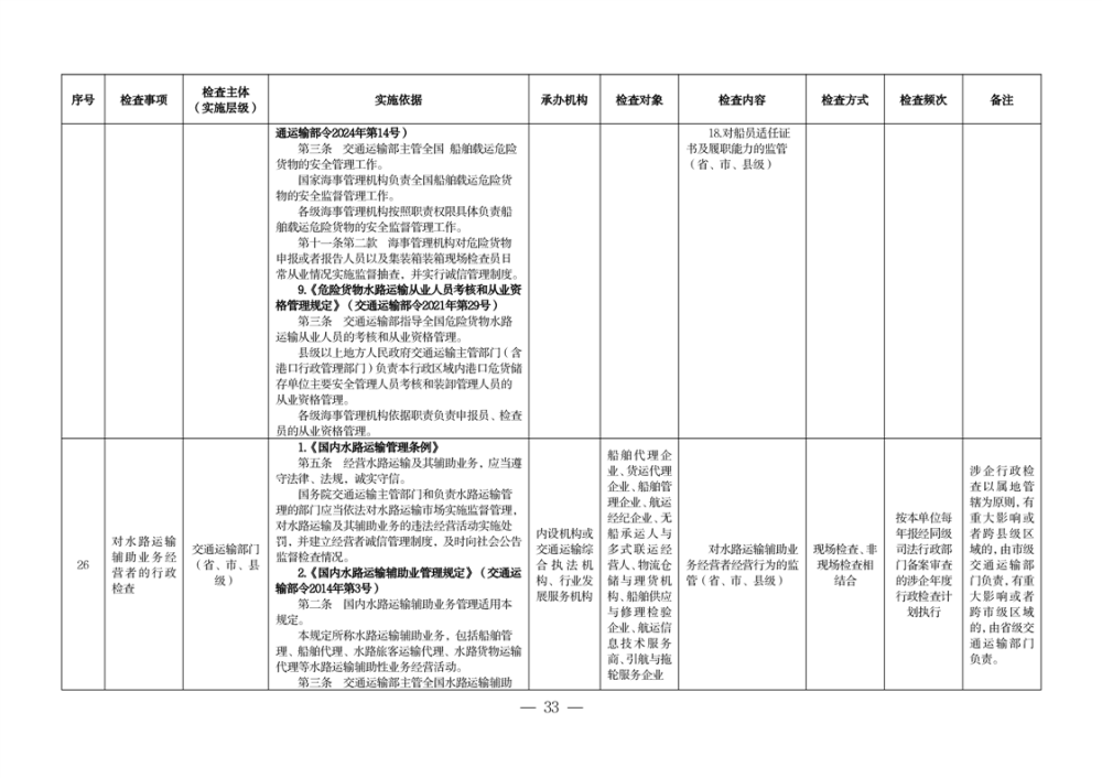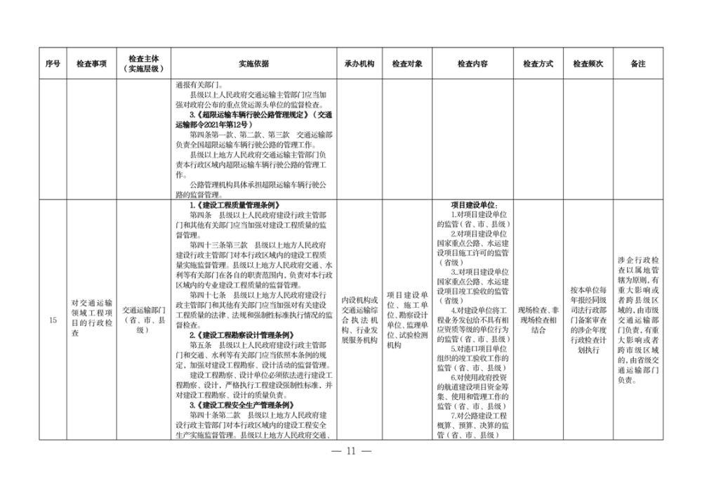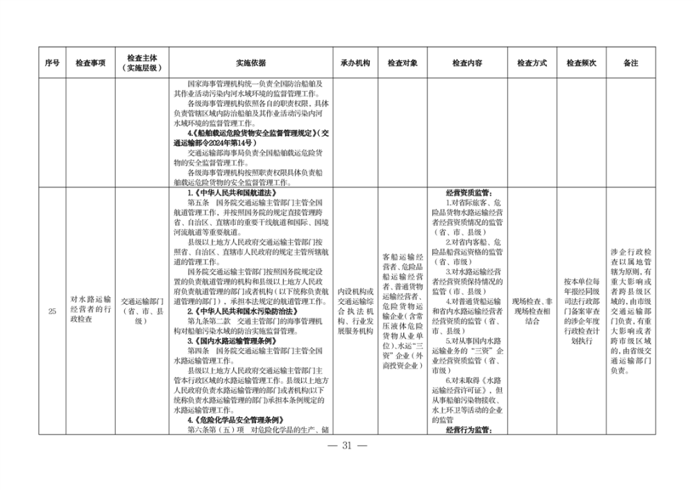 湖南省交通运输系统涉企行政检查事项清单(2025年版)